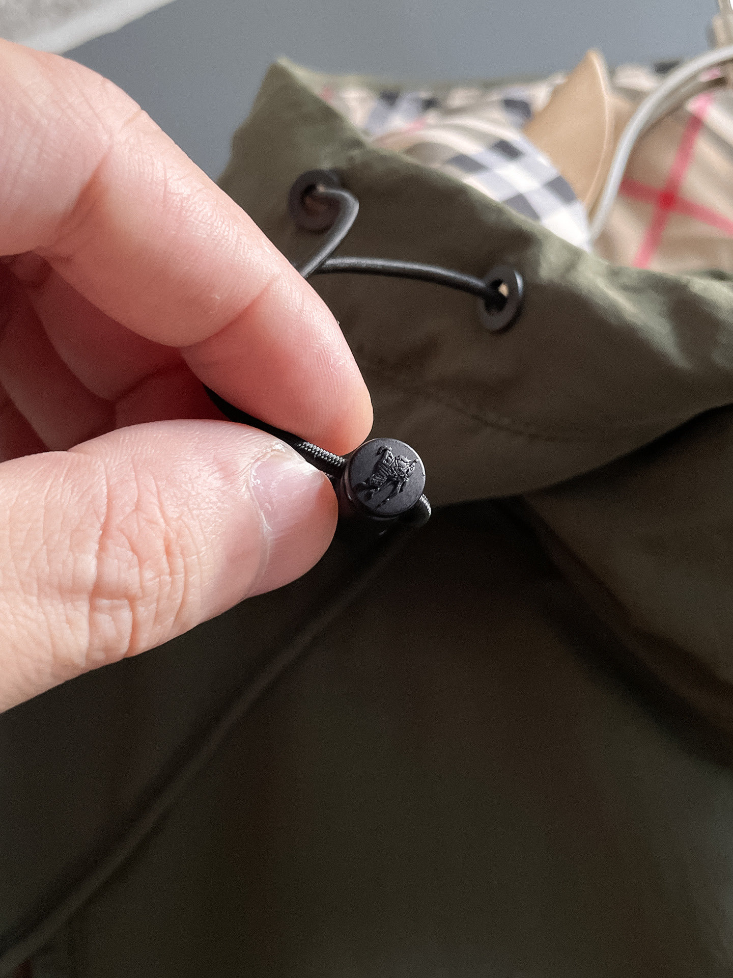 这款衣服是AAAAA 1:1 质量 (非常棒). 使用了和原版一模一样的材料. 商标部分也保持了和巴宝莉/Burberry一样. 图片拍摄是实物衣服拍摄, 您所收到的实物保证和我们图片一模一样.