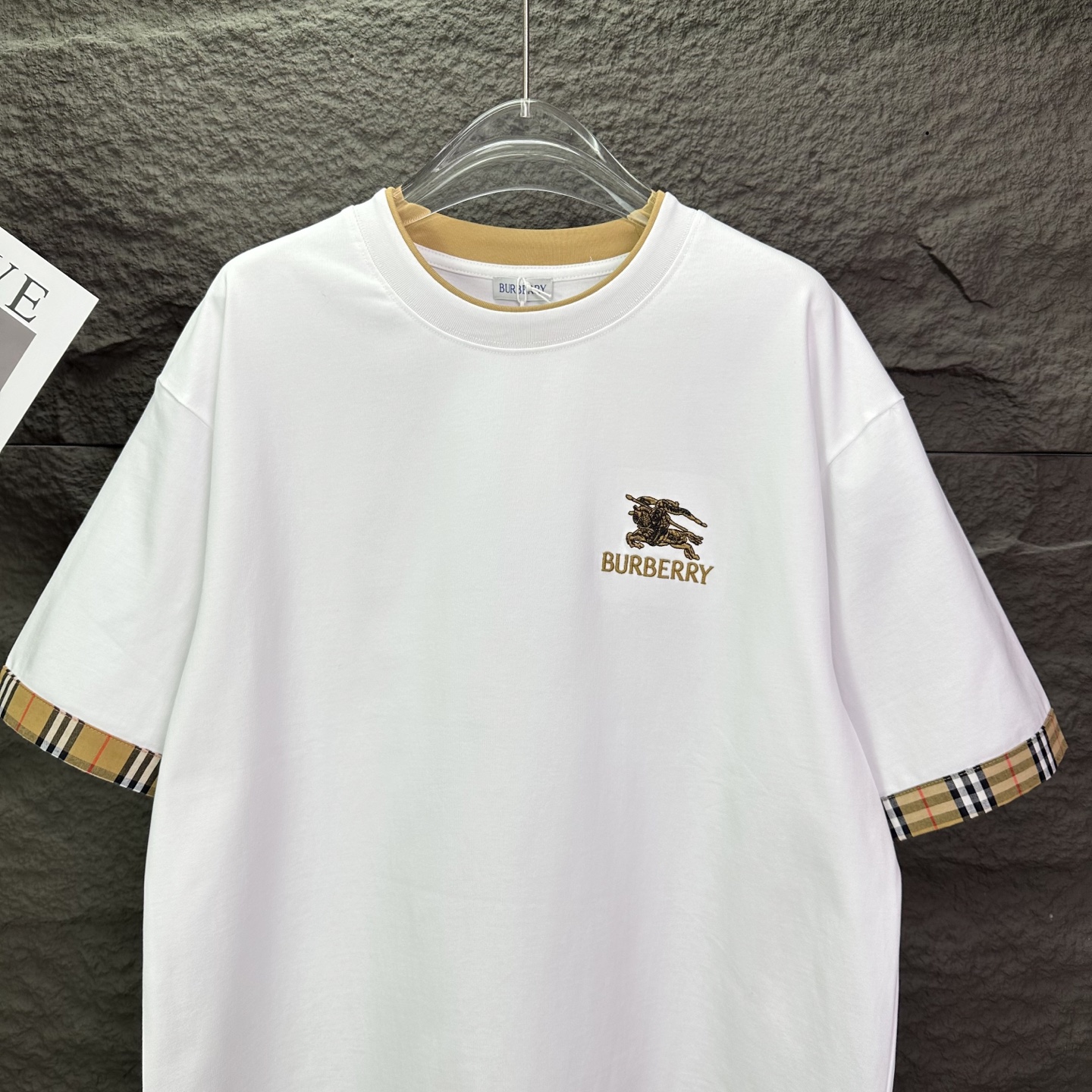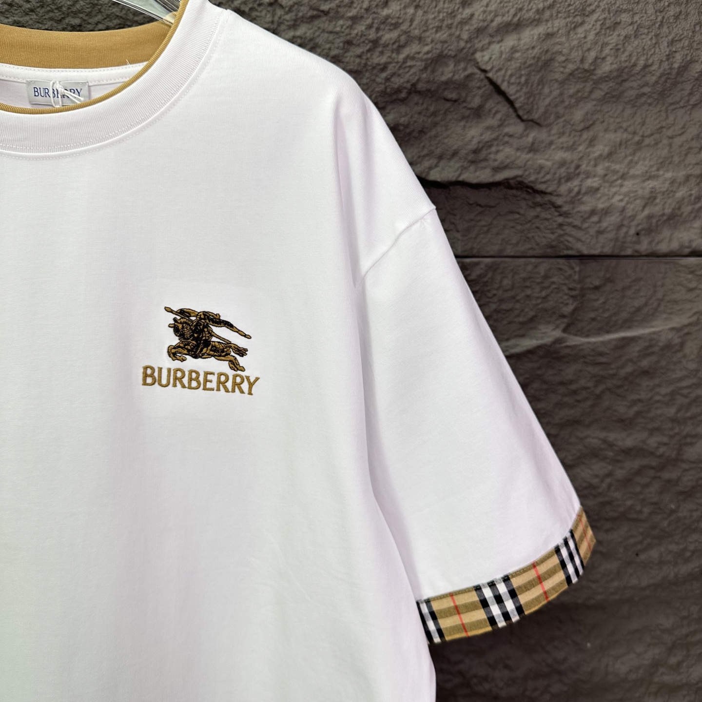这款衣服是AAAAA 1:1 质量 (非常棒). 使用了和原版一模一样的材料. 商标部分也保持了和巴宝莉/Burberry一样. 图片拍摄是实物衣服拍摄, 您所收到的实物保证和我们图片一模一样.
