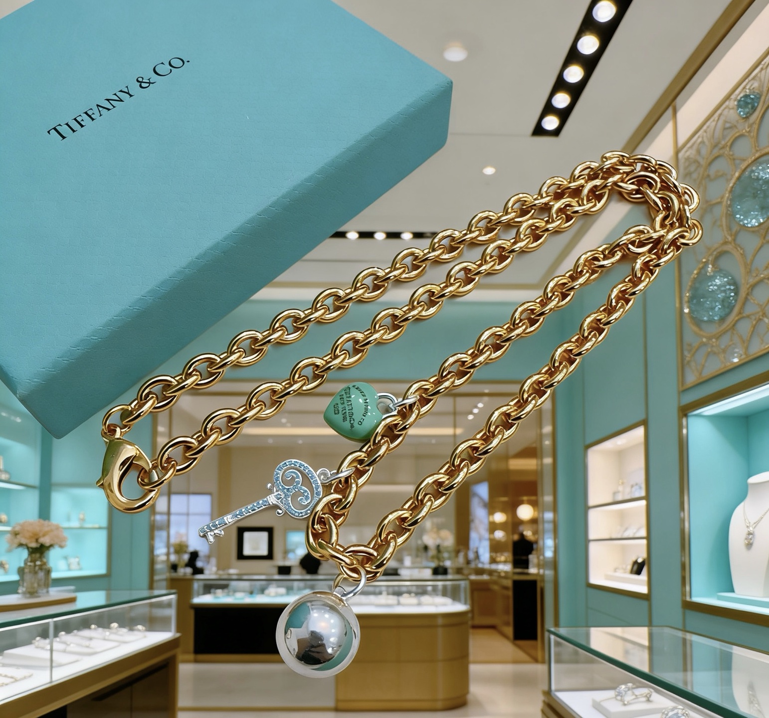 这款首饰是AAAAA 1:1 质量 (非常棒). 使用了和原版一模一样的材料. 商标部分也保持了和蒂芙尼/Tiffany一样. 图片拍摄是实物首饰拍摄, 您所收到的实物保证和我们图片一模一样.