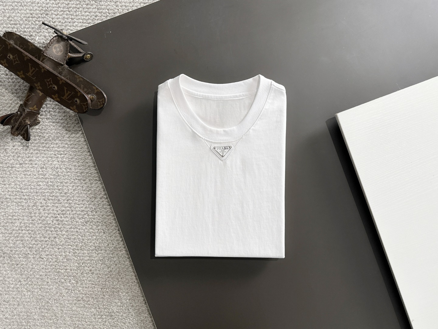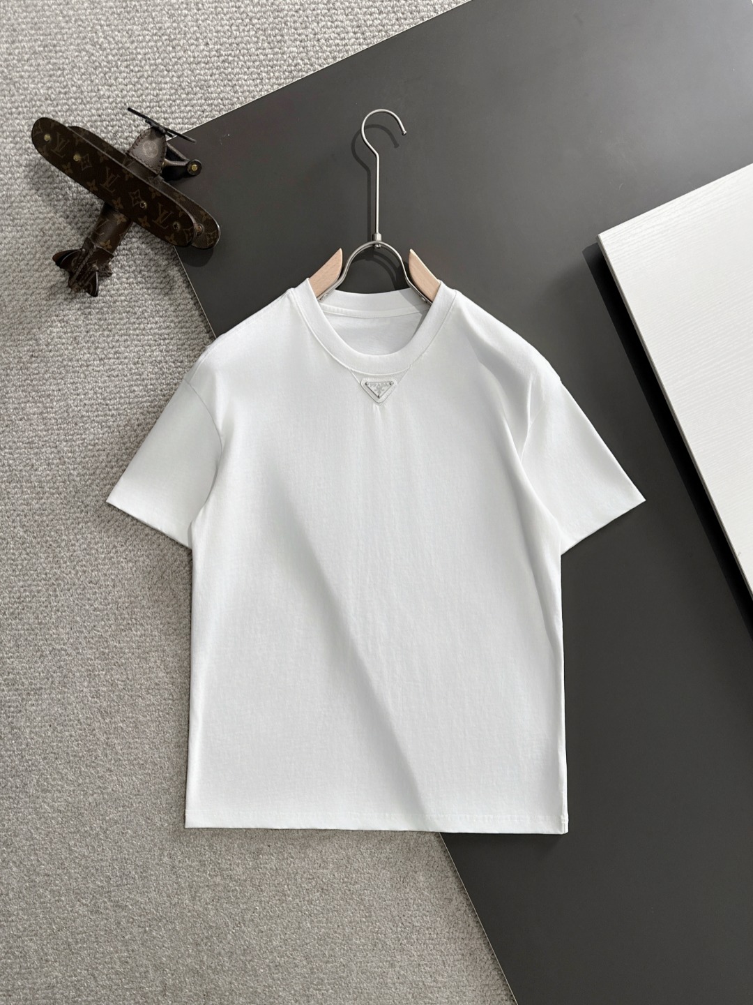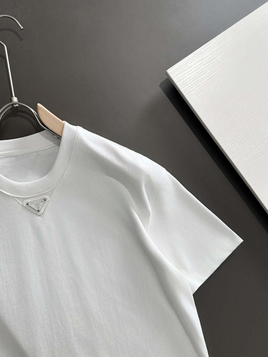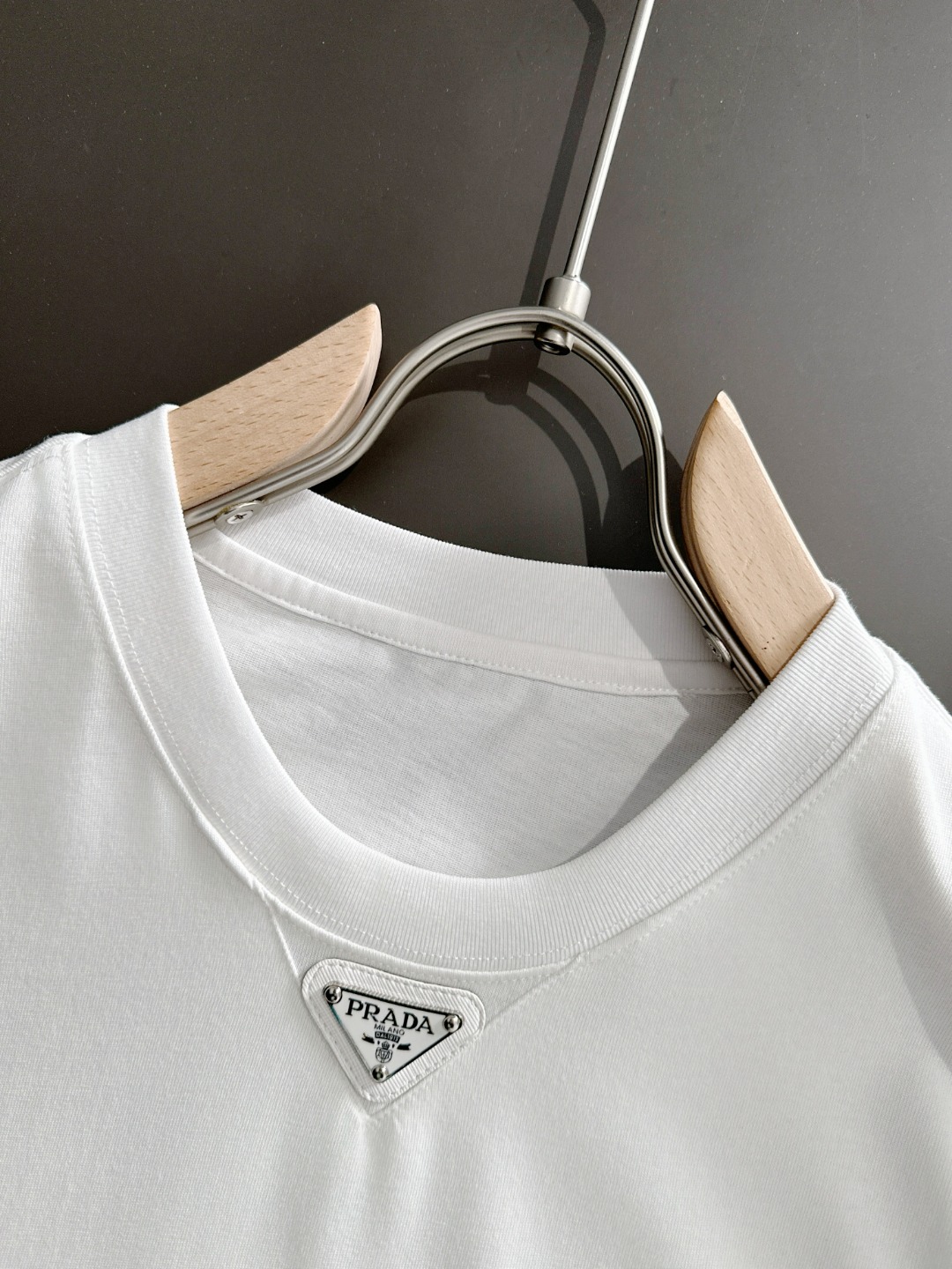 这款衣服是AAAAA 1:1 质量 (非常棒). 使用了和原版一模一样的材料. 商标部分也保持了和普拉达/Prada一样. 图片拍摄是实物衣服拍摄, 您所收到的实物保证和我们图片一模一样.