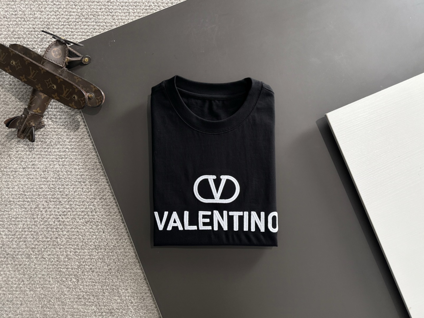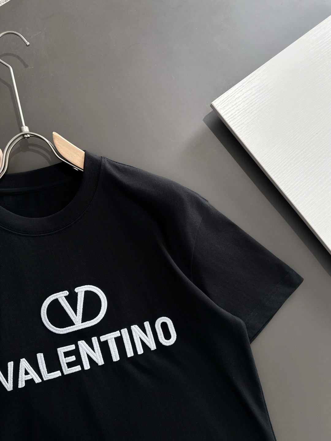 这款衣服是AAAAA 1:1 质量 (非常棒). 使用了和原版一模一样的材料. 商标部分也保持了和华伦天奴/Valentino一样. 图片拍摄是实物衣服拍摄, 您所收到的实物保证和我们图片一模一样.