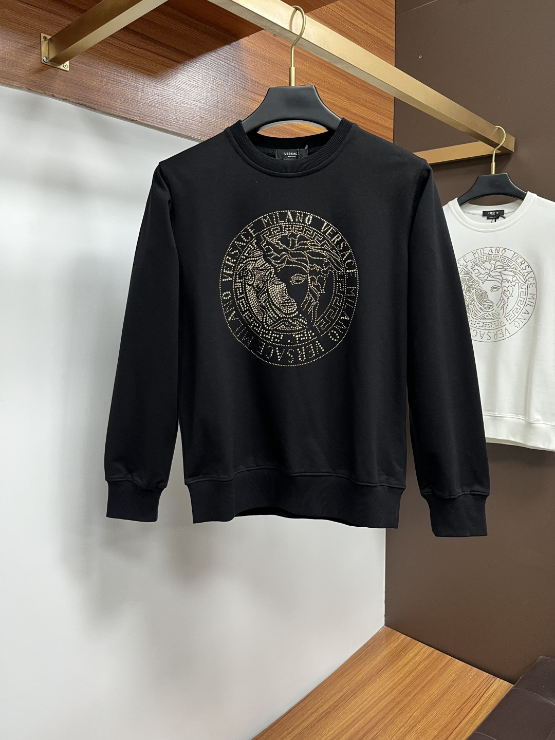 这款衣服是AAAAA 1:1 质量 (非常棒). 使用了和原版一模一样的材料. 商标部分也保持了和范思哲/Versace一样. 图片拍摄是实物衣服拍摄, 您所收到的实物保证和我们图片一模一样.