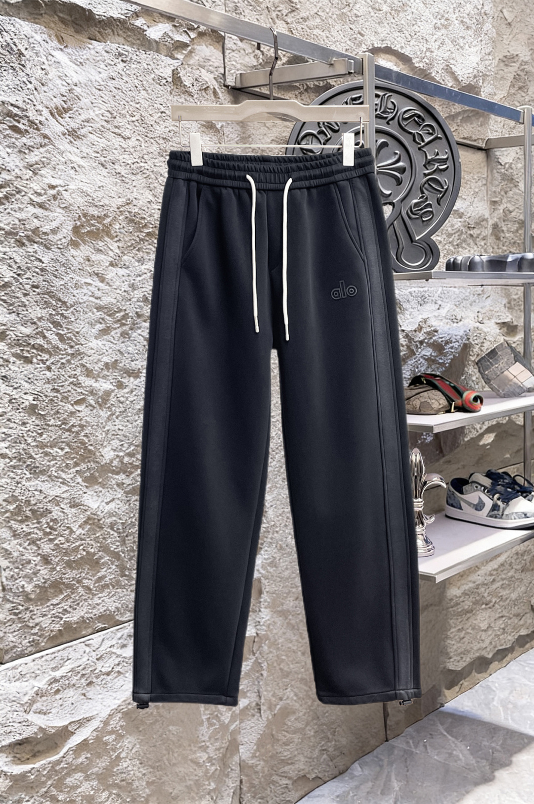 这款衣服是AAAAA 1:1 质量 (非常棒). 使用了和原版一模一样的材料. 商标部分也保持了和Alo Yoga一样. 图片拍摄是实物衣服拍摄, 您所收到的实物保证和我们图片一模一样.