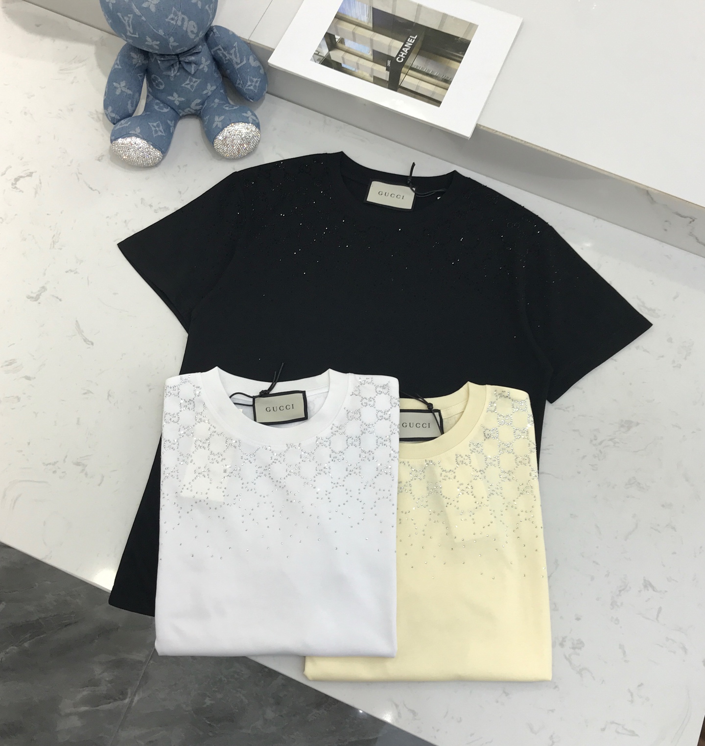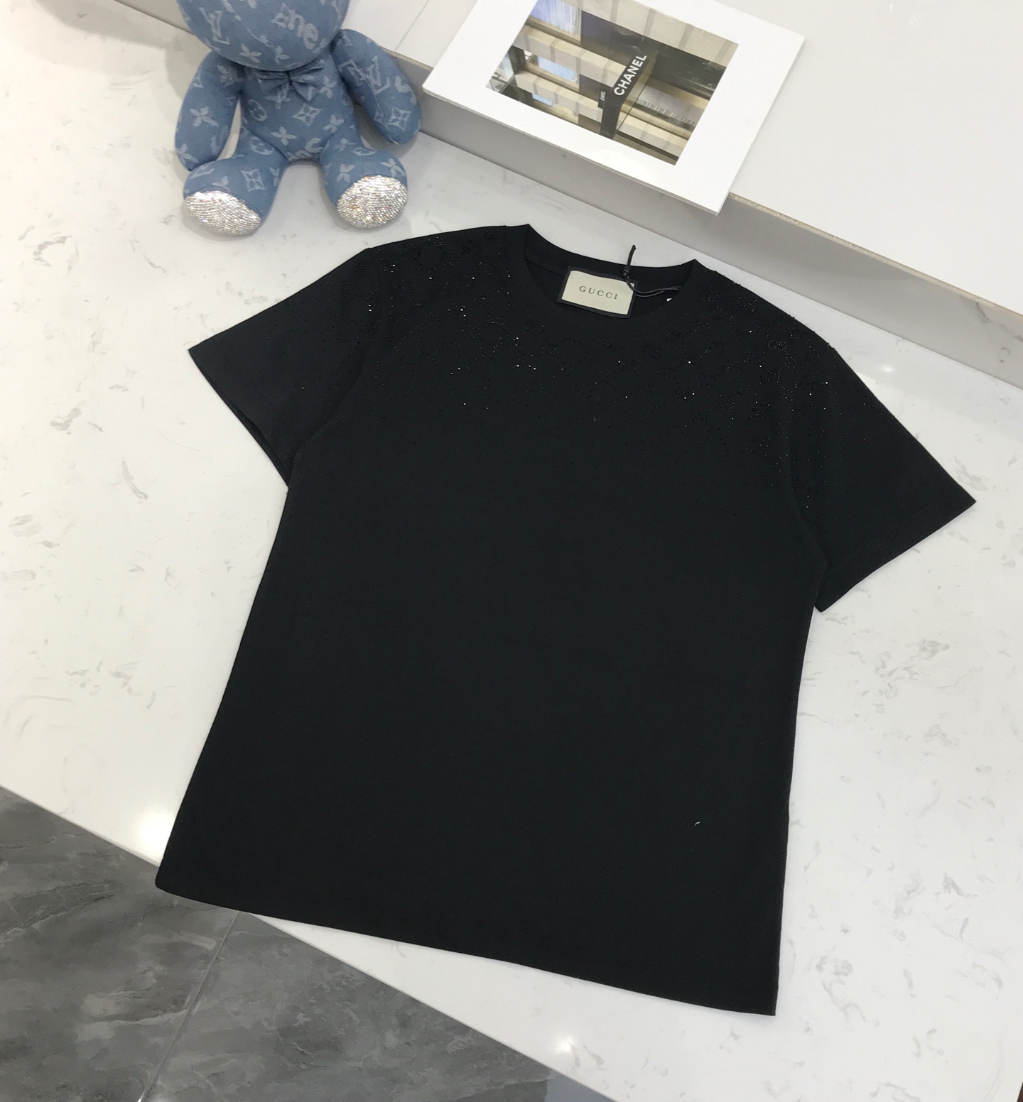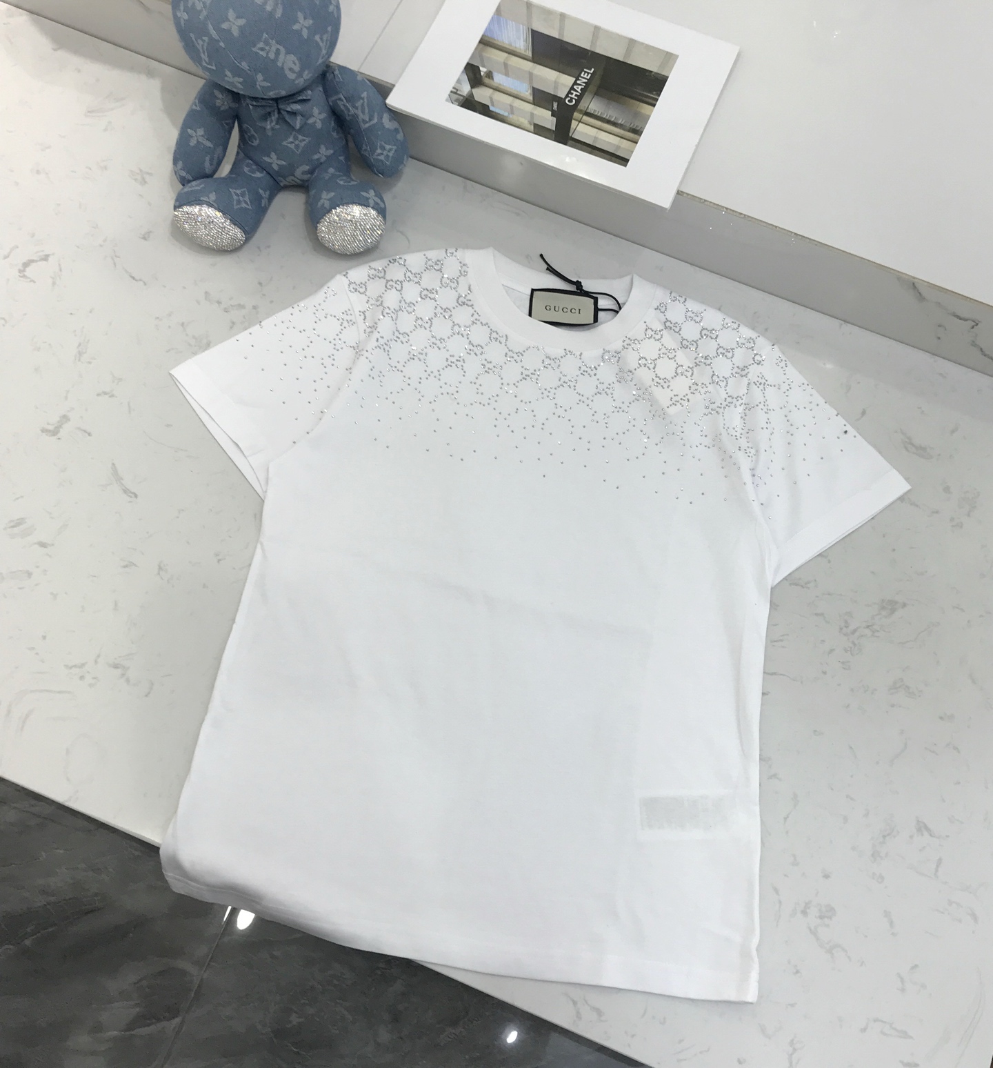 这款衣服是AAAAA 1:1 质量 (非常棒). 使用了和原版一模一样的材料. 商标部分也保持了和古奇/Gucci一样. 图片拍摄是实物衣服拍摄, 您所收到的实物保证和我们图片一模一样.