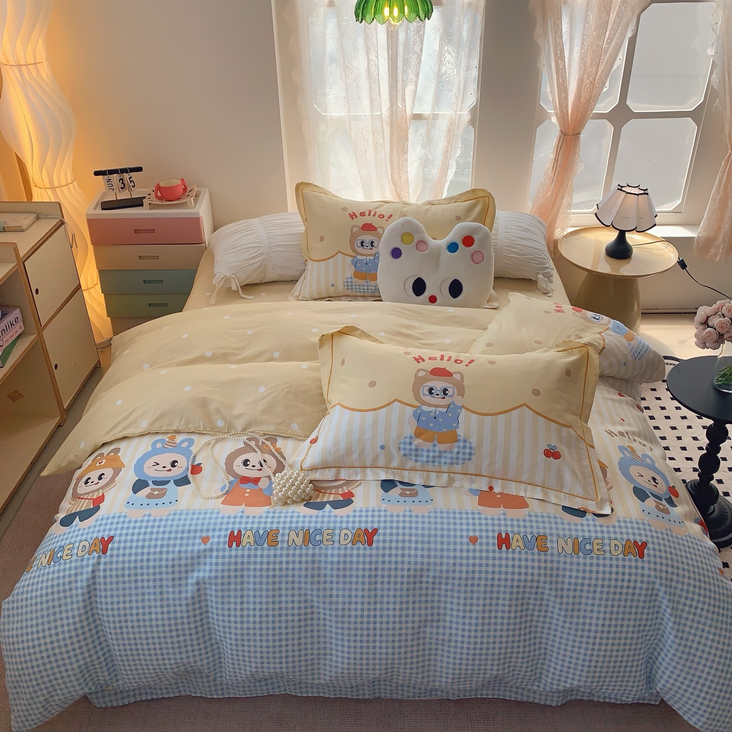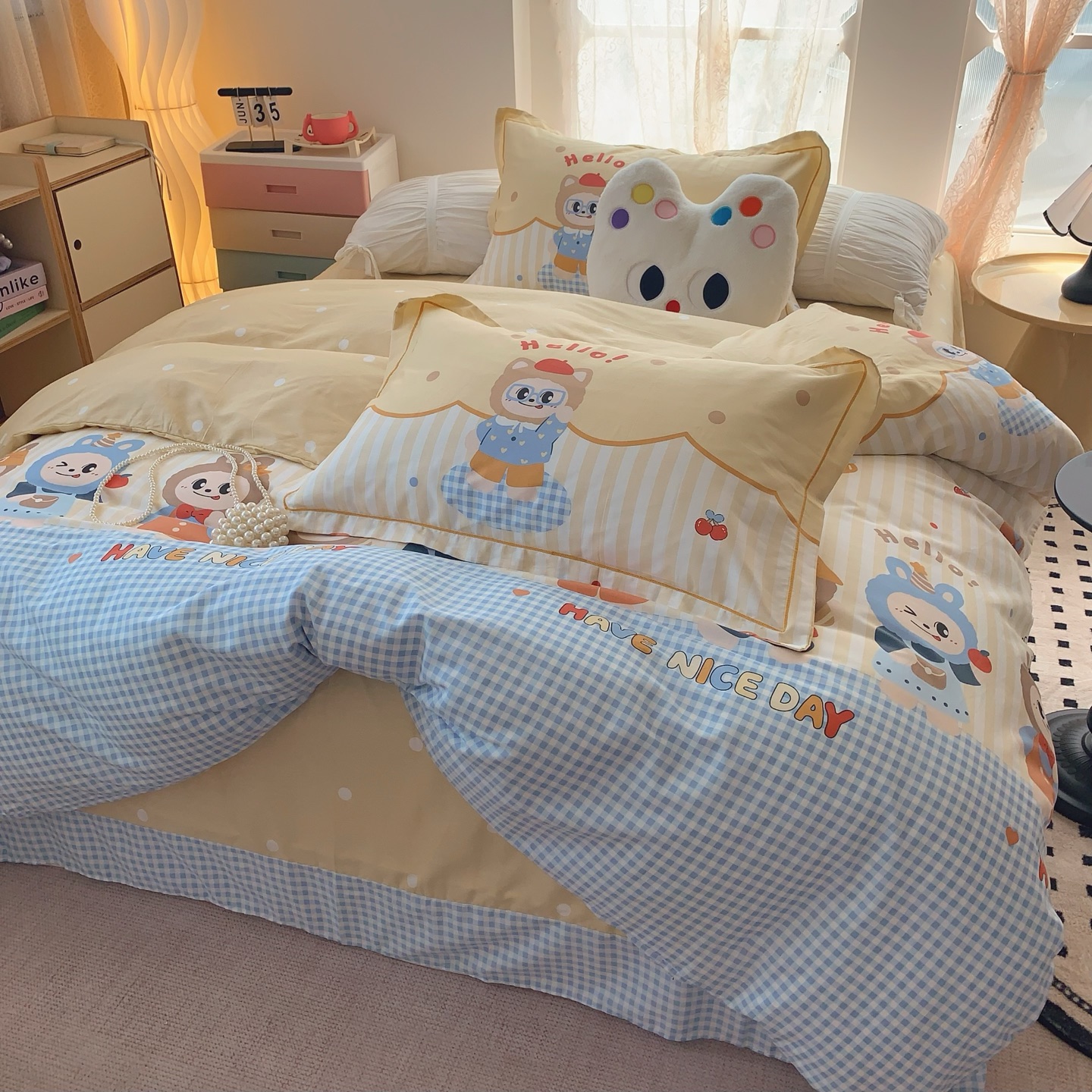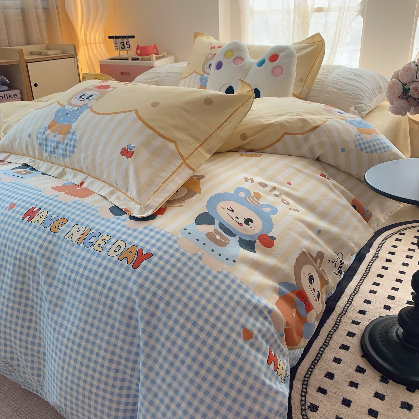 这款床上四件套是AAAAA 1:1 质量 (非常棒). 使用了和原版一模一样的材料. 商标部分也保持了和一样. 图片拍摄是实物床上四件套拍摄, 您所收到的实物保证和我们图片一模一样.