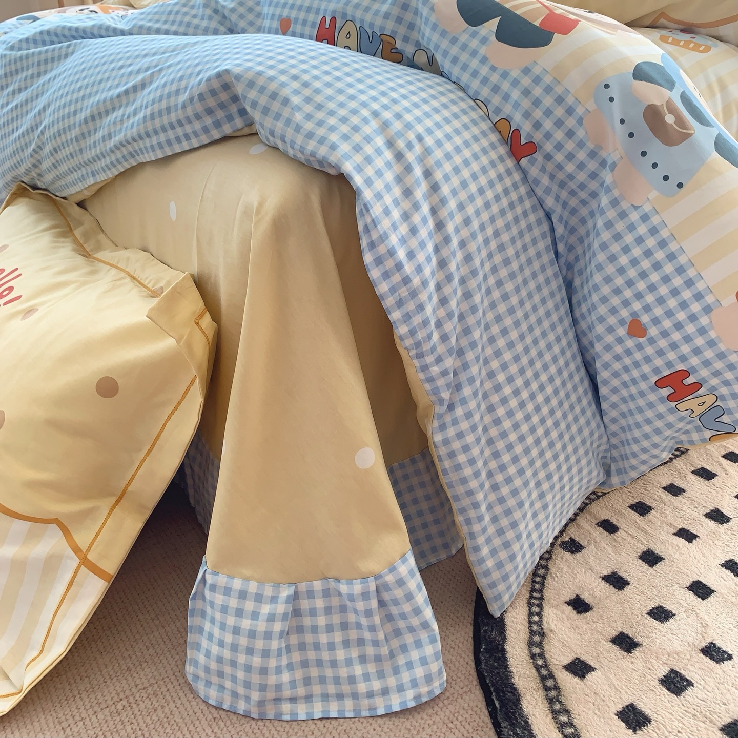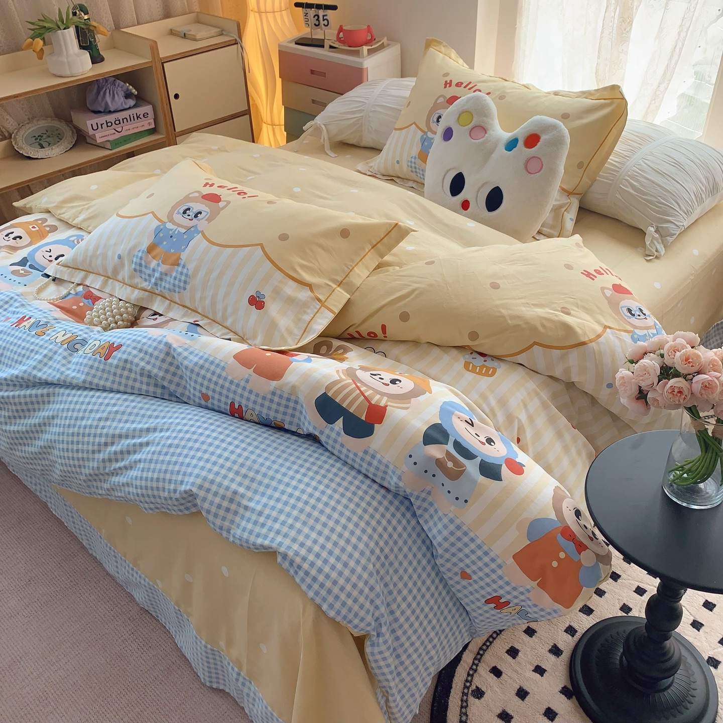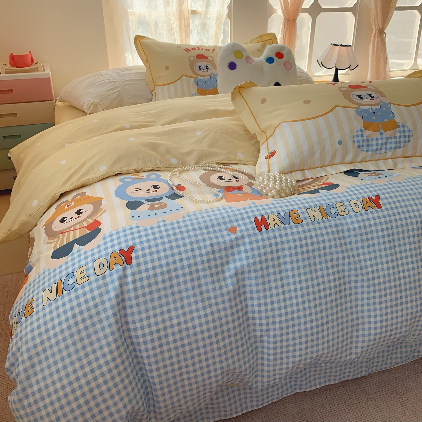 这款床上四件套是AAAAA 1:1 质量 (非常棒). 使用了和原版一模一样的材料. 商标部分也保持了和一样. 图片拍摄是实物床上四件套拍摄, 您所收到的实物保证和我们图片一模一样.