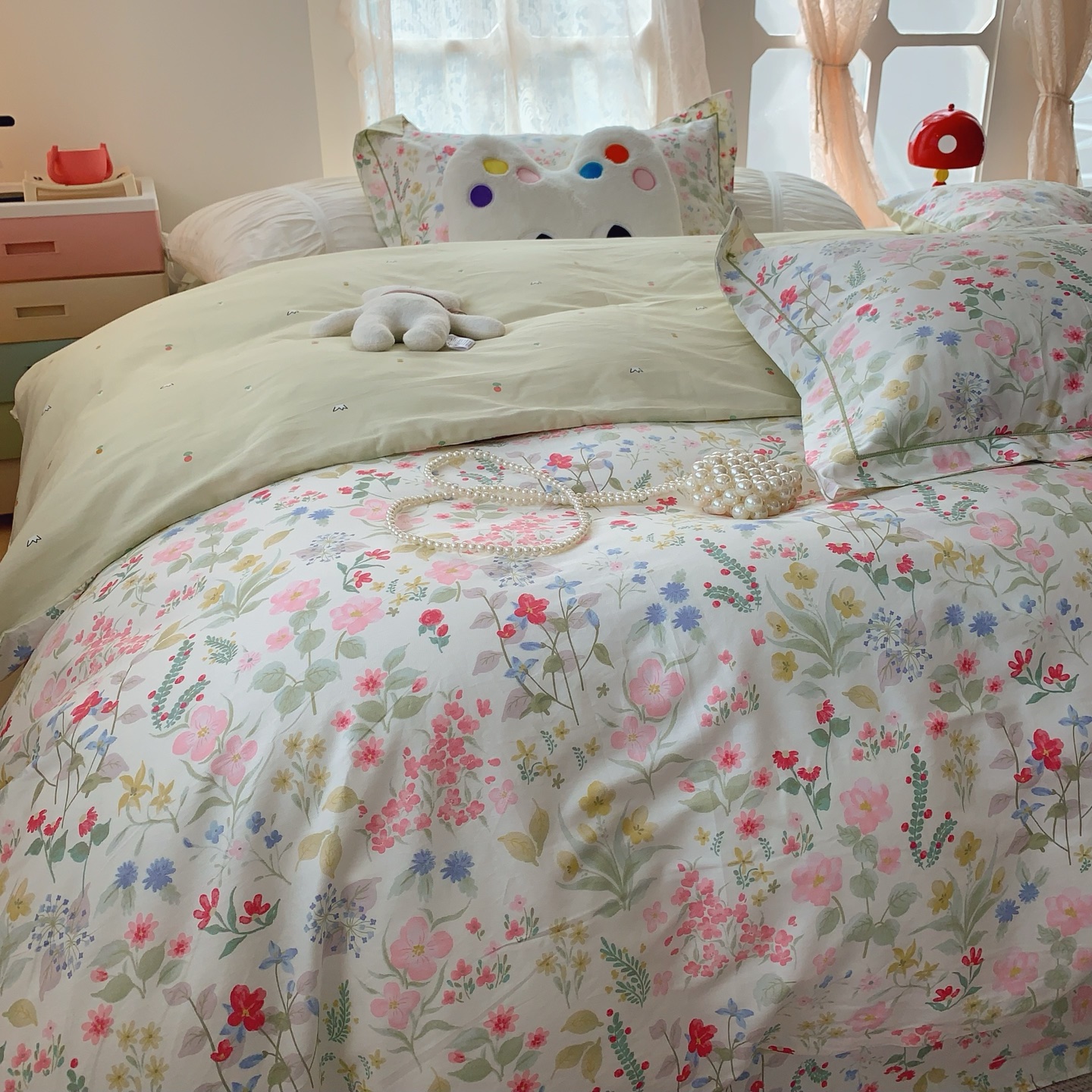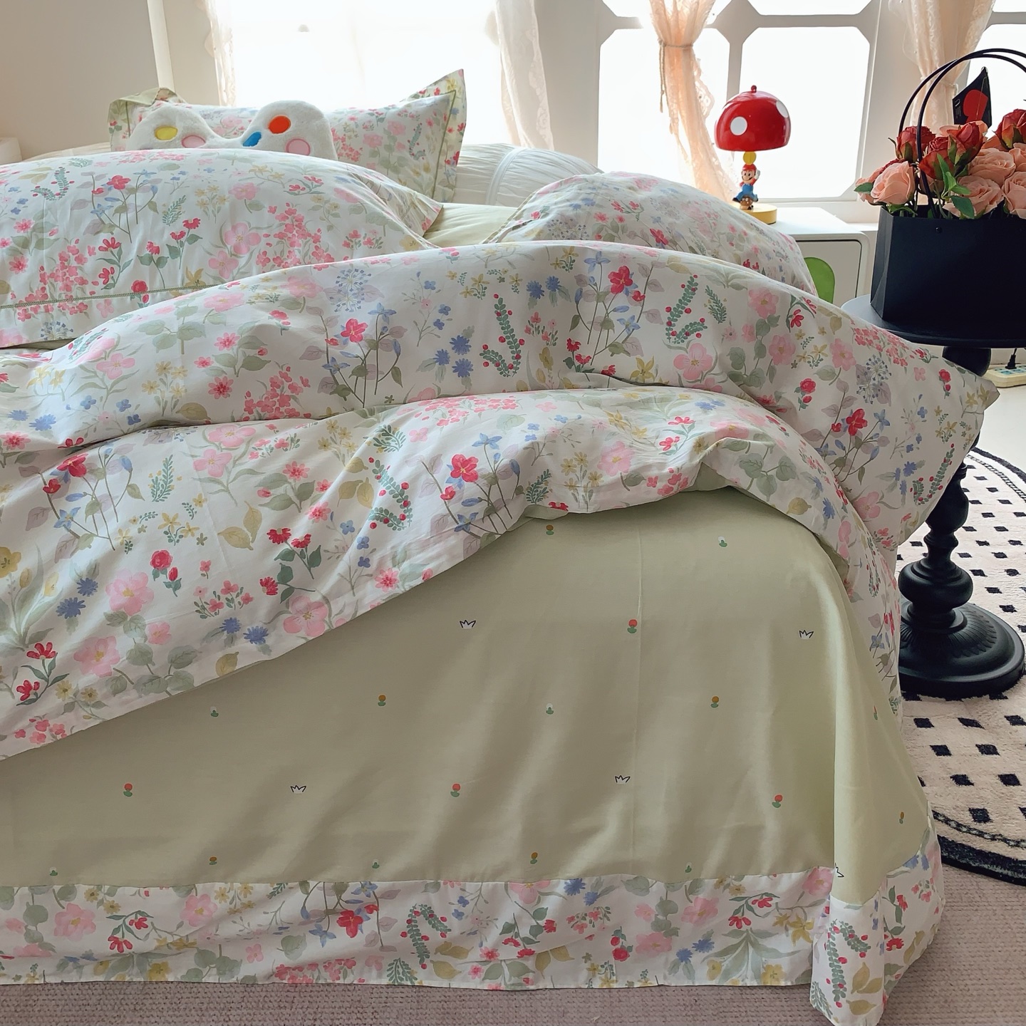 这款床上四件套是AAAAA 1:1 质量 (非常棒). 使用了和原版一模一样的材料. 商标部分也保持了和一样. 图片拍摄是实物床上四件套拍摄, 您所收到的实物保证和我们图片一模一样.