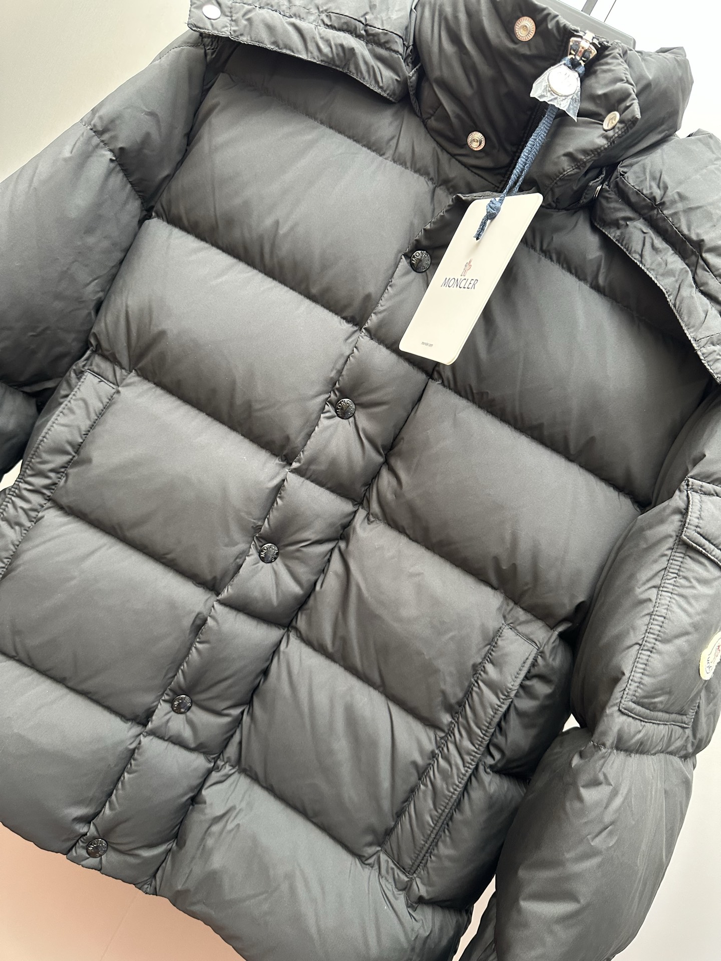 这款衣服是AAAAA 1:1 质量 (非常棒). 使用了和原版一模一样的材料. 商标部分也保持了和盟可睐/moncler一样. 图片拍摄是实物衣服拍摄, 您所收到的实物保证和我们图片一模一样.