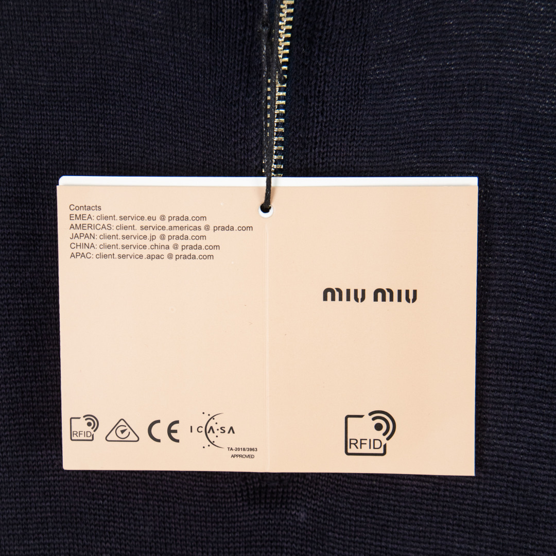这款衣服是AAAAA 1:1 质量 (非常棒). 使用了和原版一模一样的材料. 商标部分也保持了和缪缪/Miu Miu一样. 图片拍摄是实物衣服拍摄, 您所收到的实物保证和我们图片一模一样.