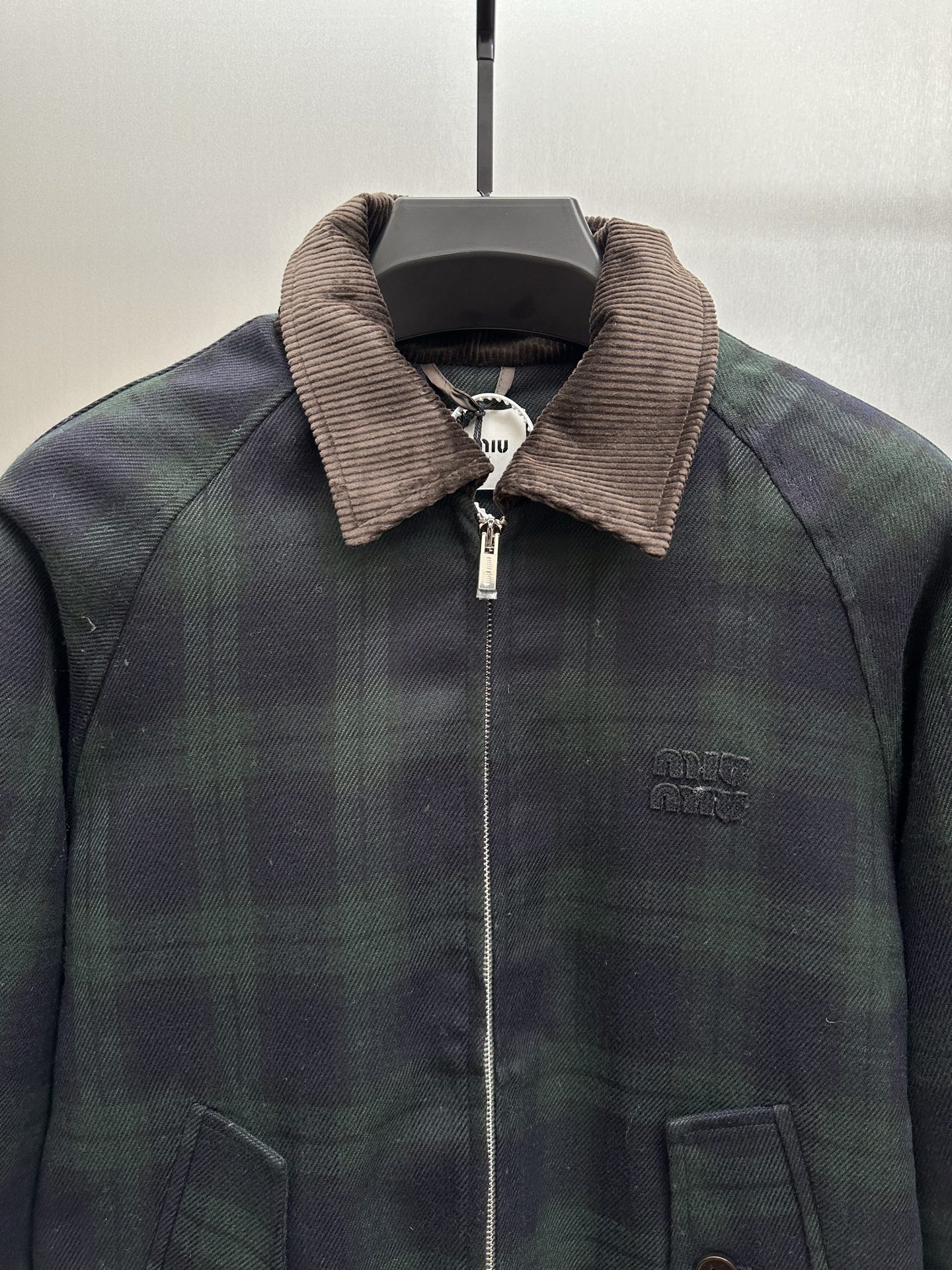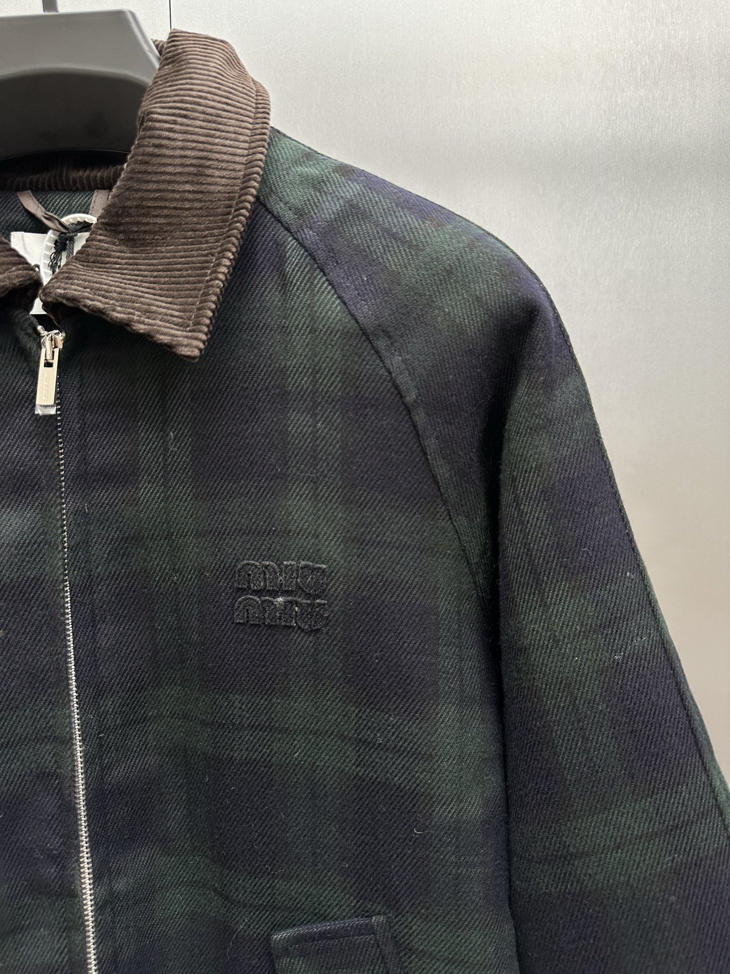 这款衣服是AAAAA 1:1 质量 (非常棒). 使用了和原版一模一样的材料. 商标部分也保持了和缪缪/Miu Miu一样. 图片拍摄是实物衣服拍摄, 您所收到的实物保证和我们图片一模一样.