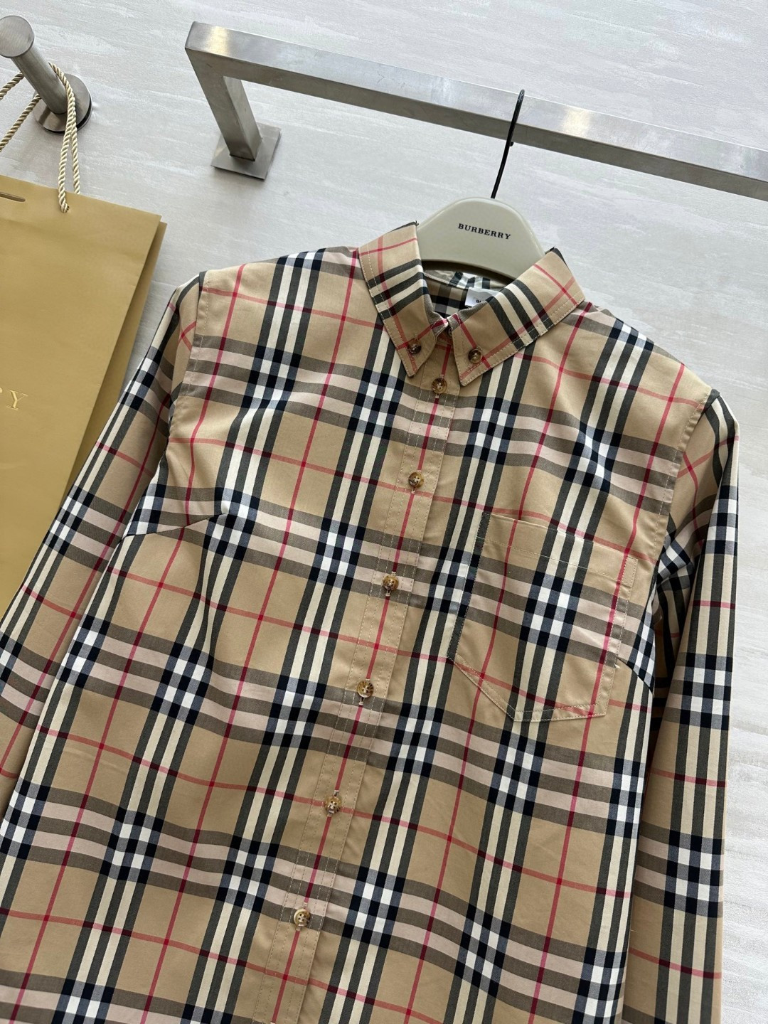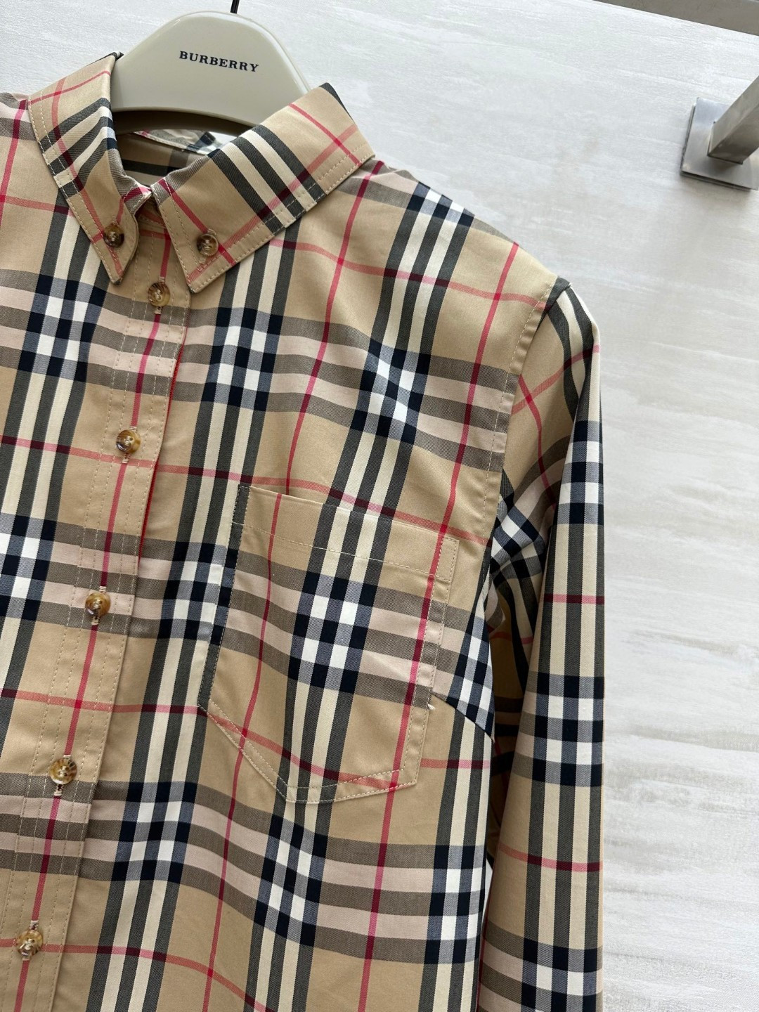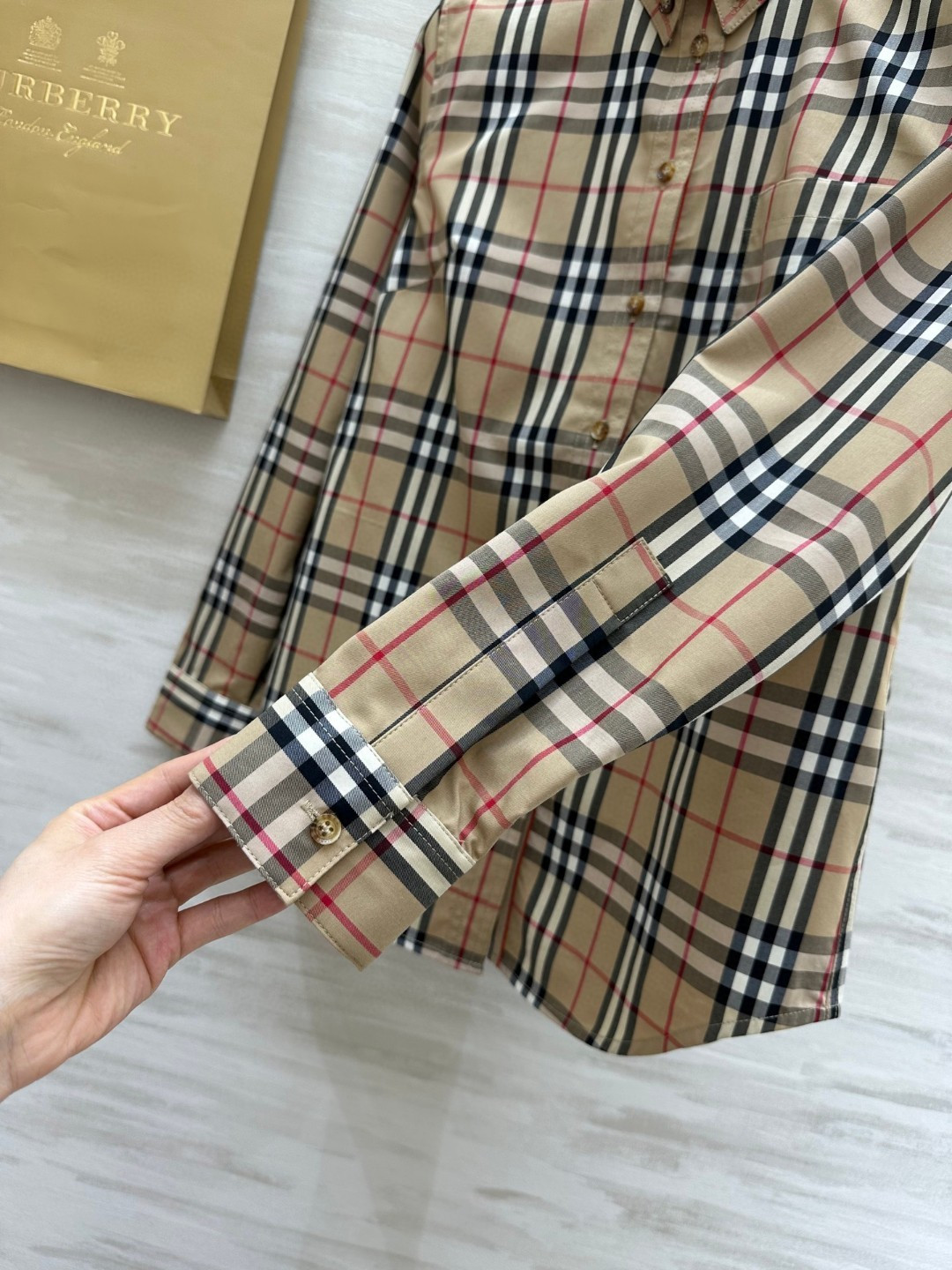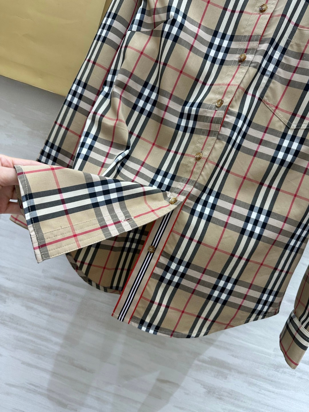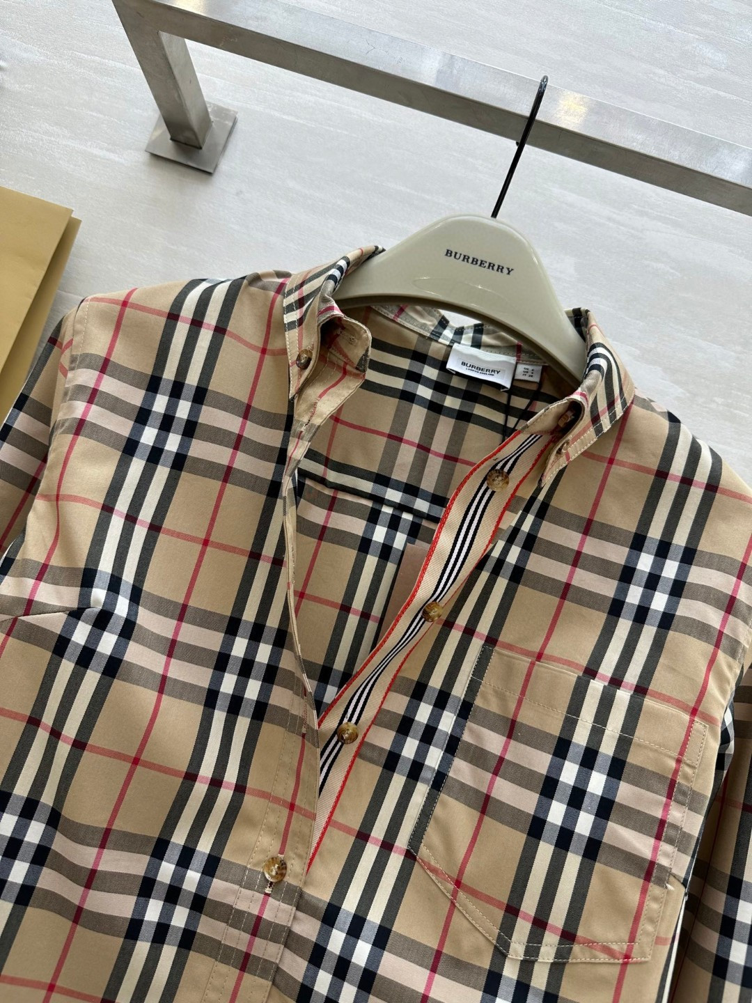 这款衣服是AAAAA 1:1 质量 (非常棒). 使用了和原版一模一样的材料. 商标部分也保持了和巴宝莉/Burberry一样. 图片拍摄是实物衣服拍摄, 您所收到的实物保证和我们图片一模一样.
