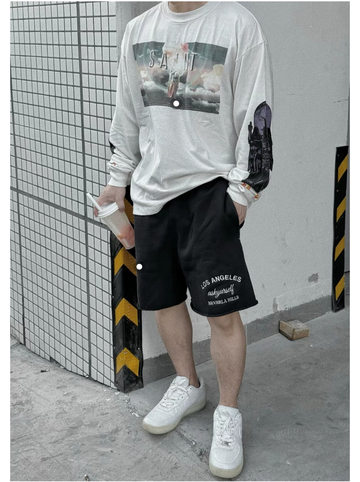 这款衣服是AAAAA 1:1 质量 (非常棒). 使用了和原版一模一样的材料. 商标部分也保持了和圣罗兰/Saint Laurent一样. 图片拍摄是实物衣服拍摄, 您所收到的实物保证和我们图片一模一样.