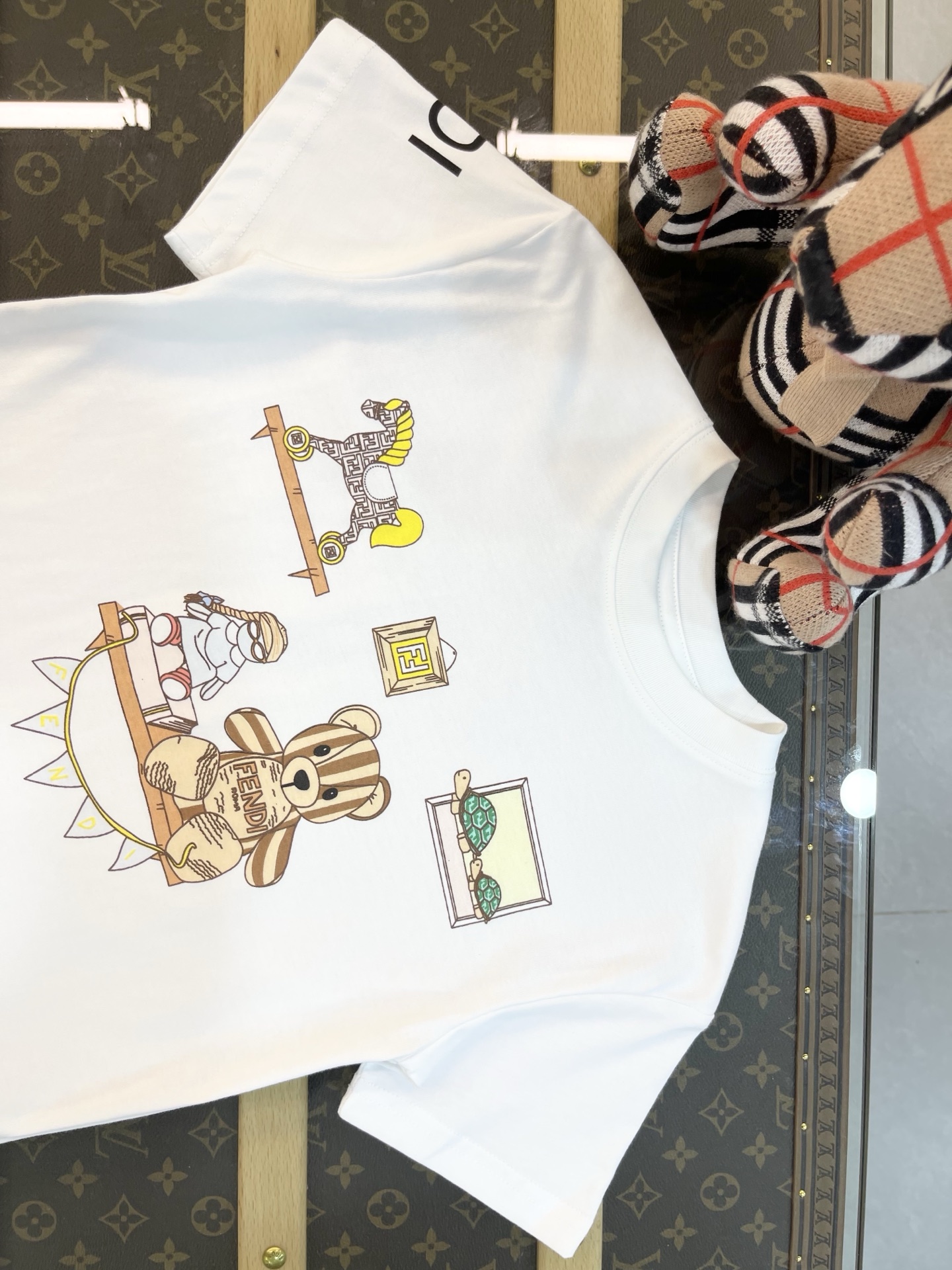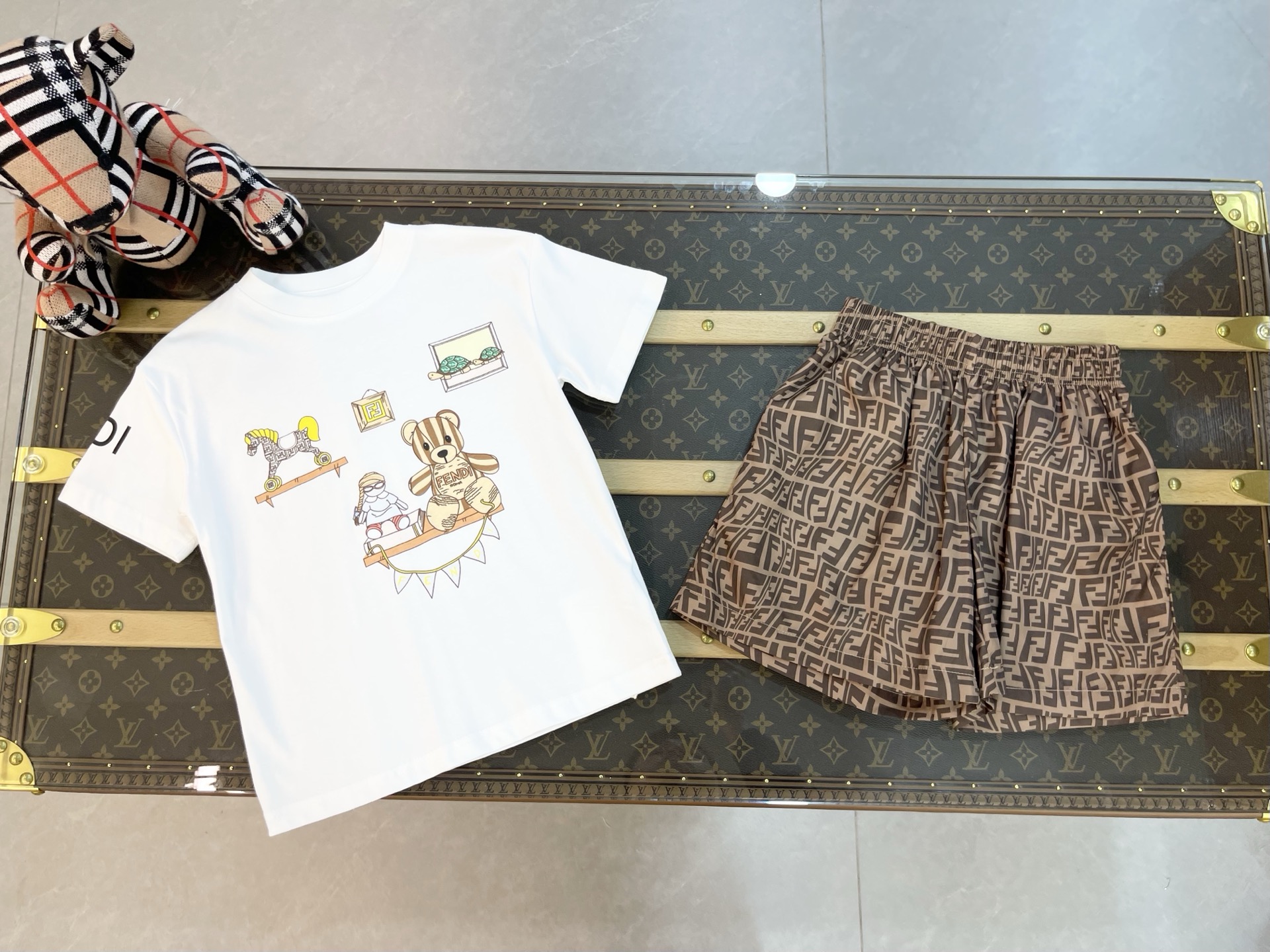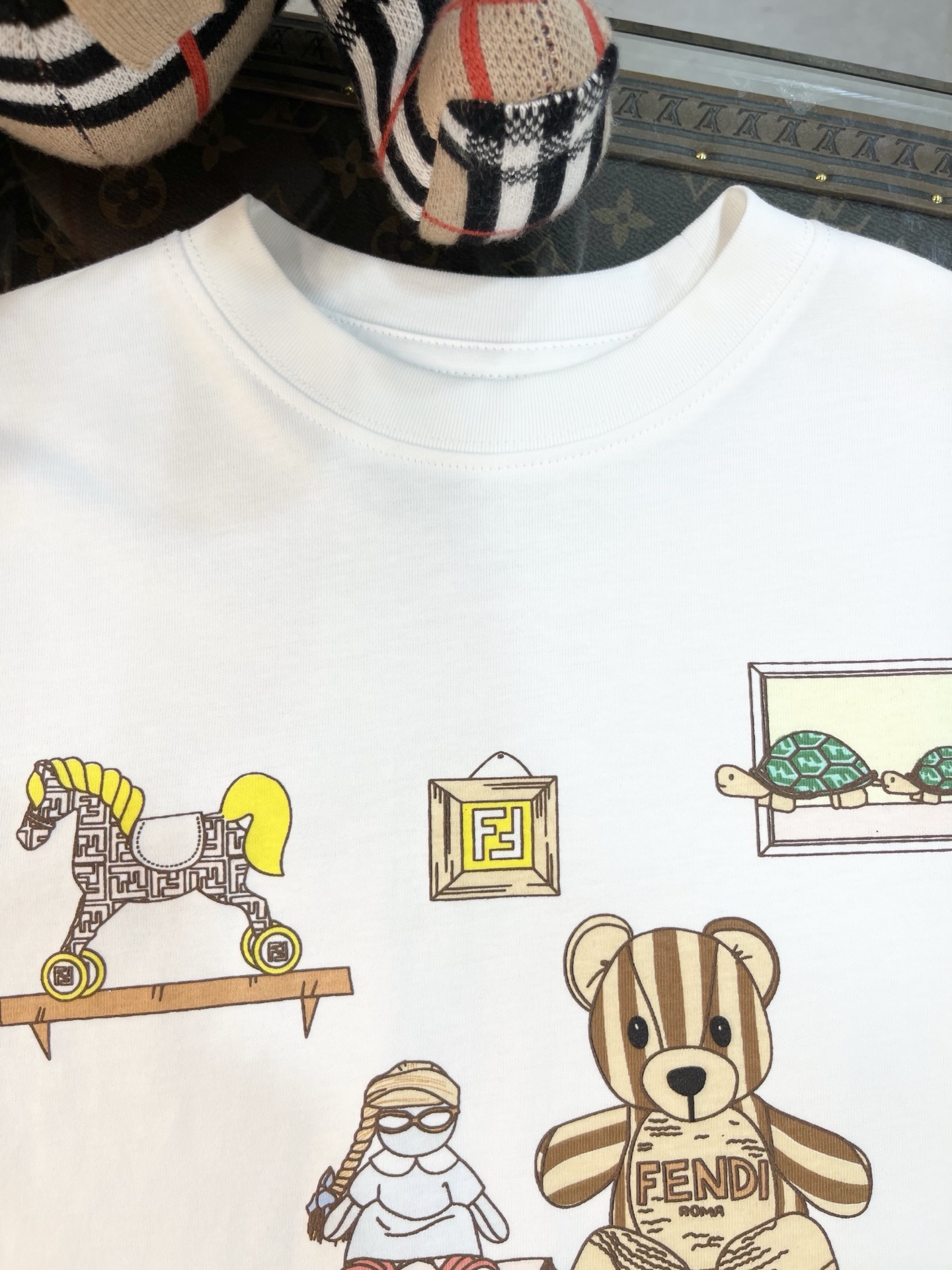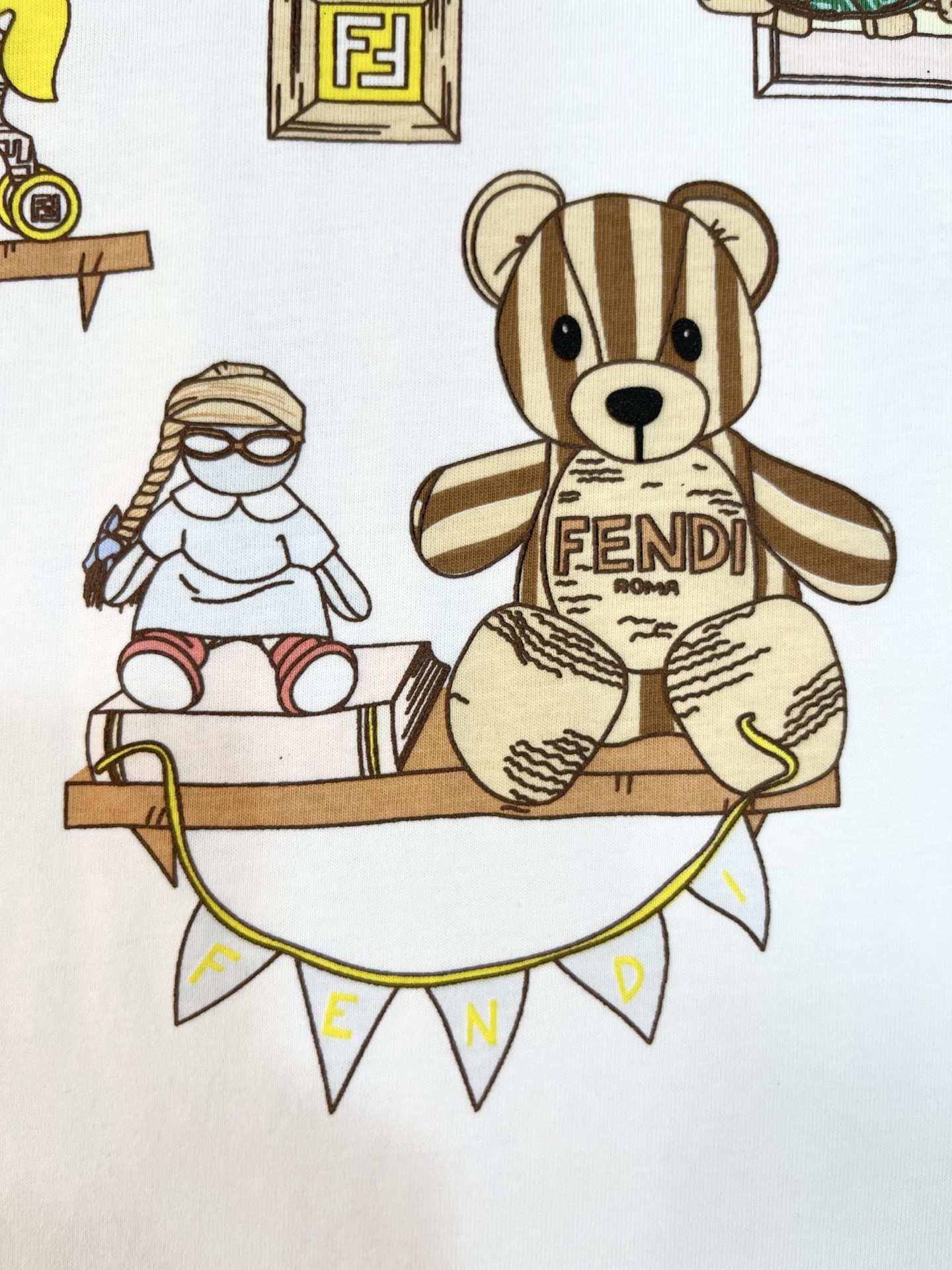 这款children's clothes是AAAAA 1:1 质量 (非常棒). 使用了和原版一模一样的材料. 商标部分也保持了和芬迪/Fendi一样. 图片拍摄是实物children's clothes拍摄, 您所收到的实物保证和我们图片一模一样.