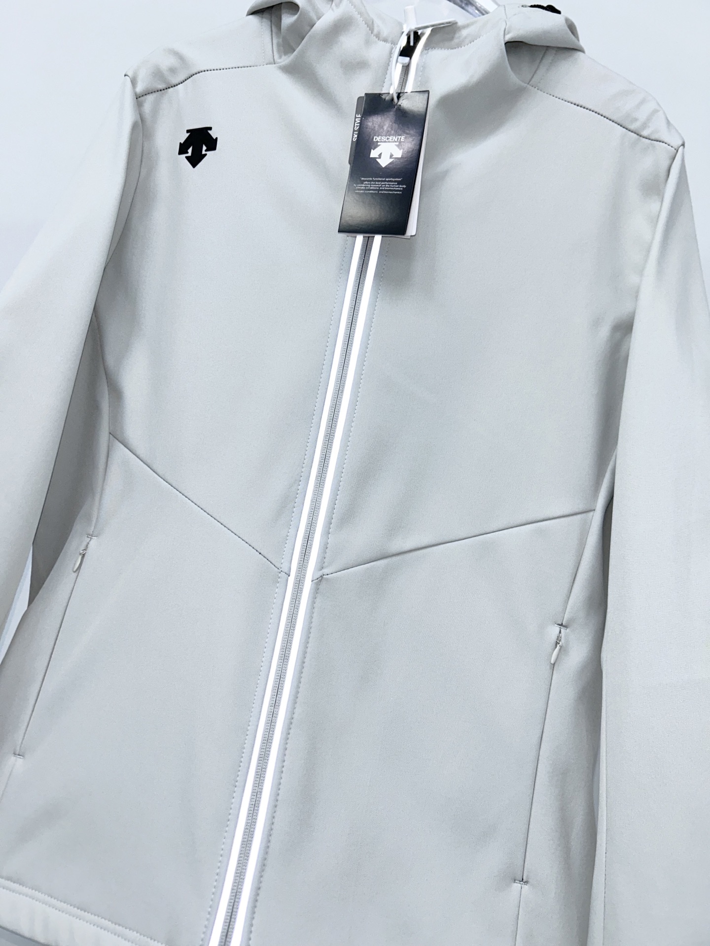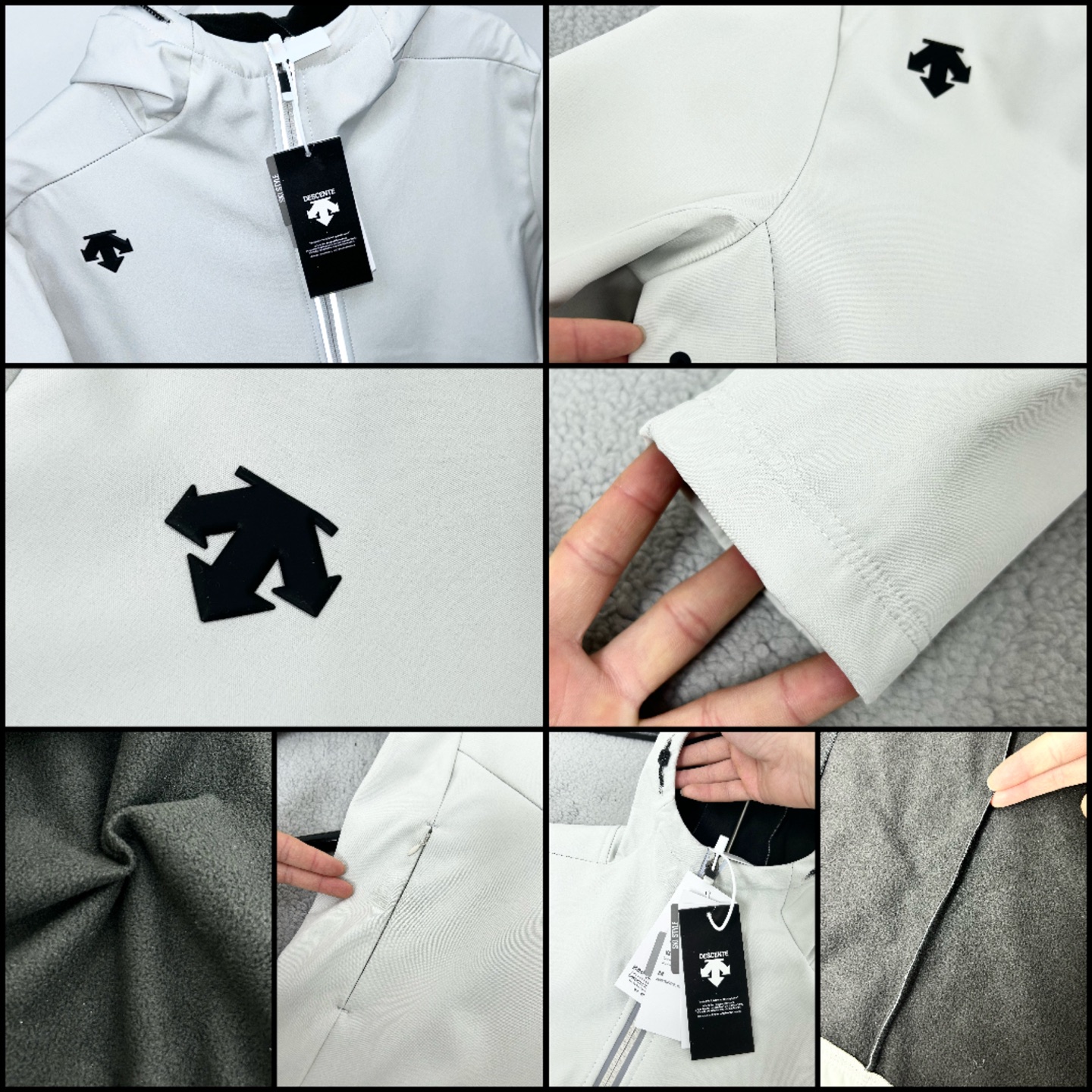 这款衣服是AAAAA 1:1 质量 (非常棒). 使用了和原版一模一样的材料. 商标部分也保持了和Descente一样. 图片拍摄是实物衣服拍摄, 您所收到的实物保证和我们图片一模一样.