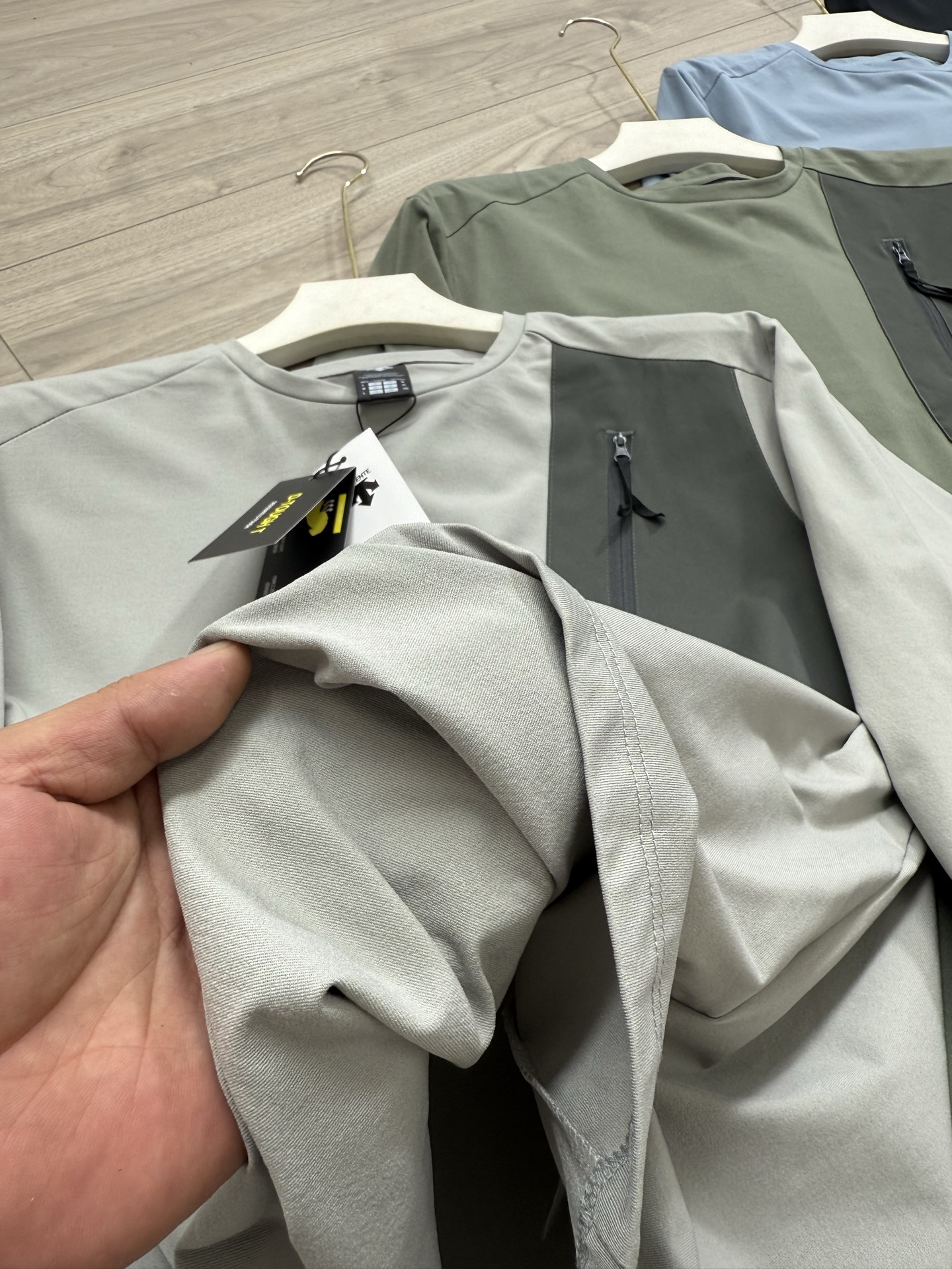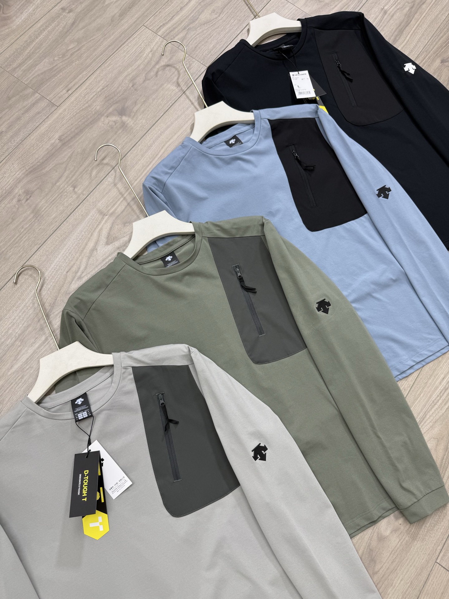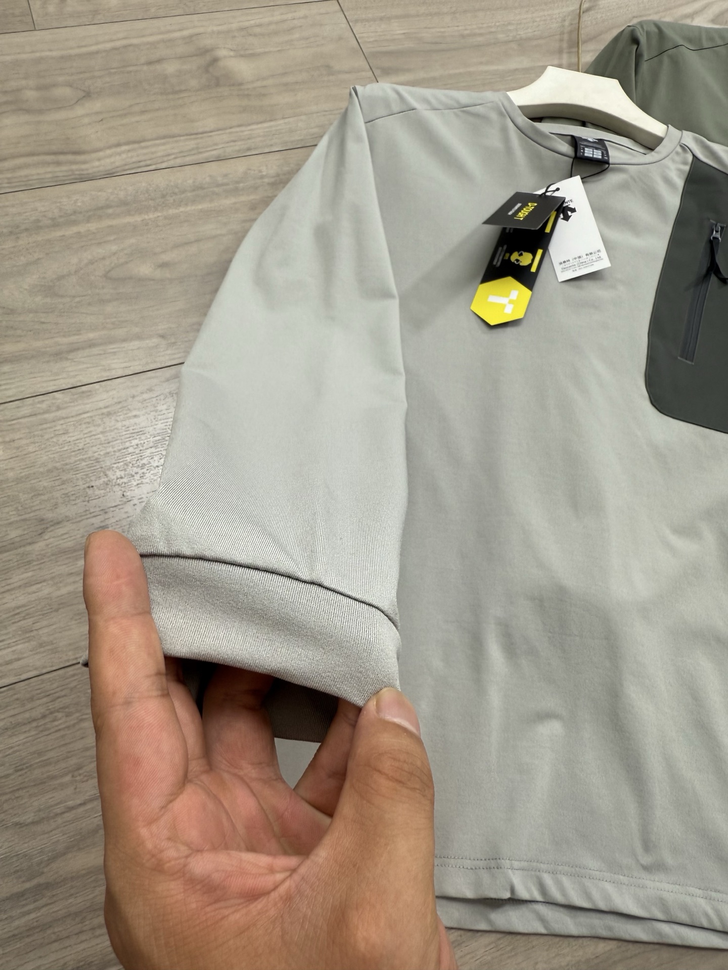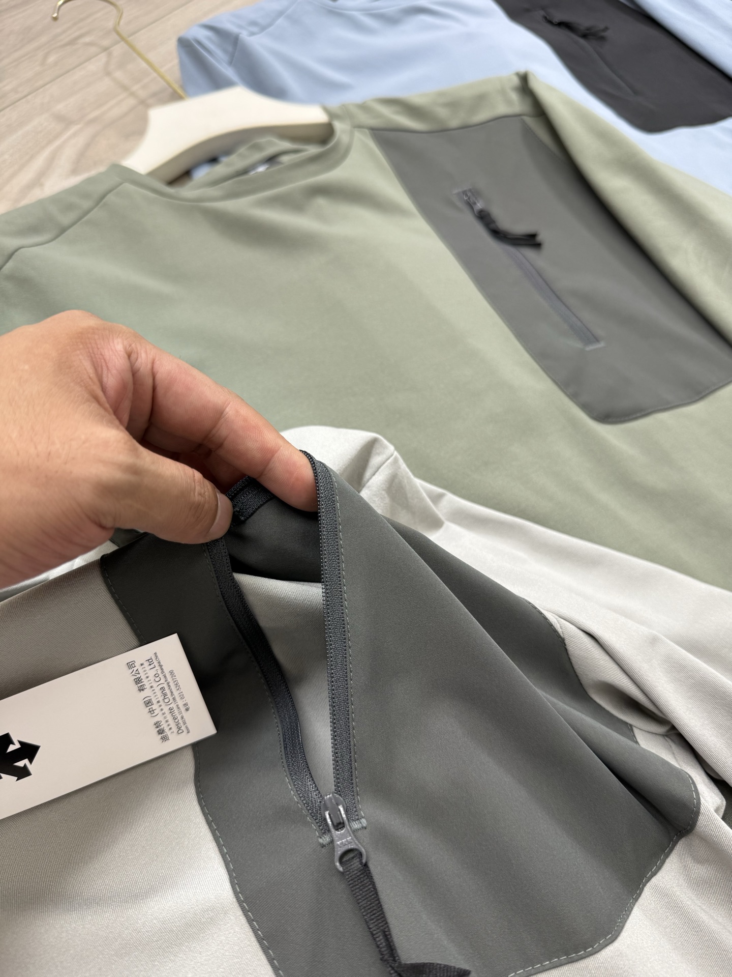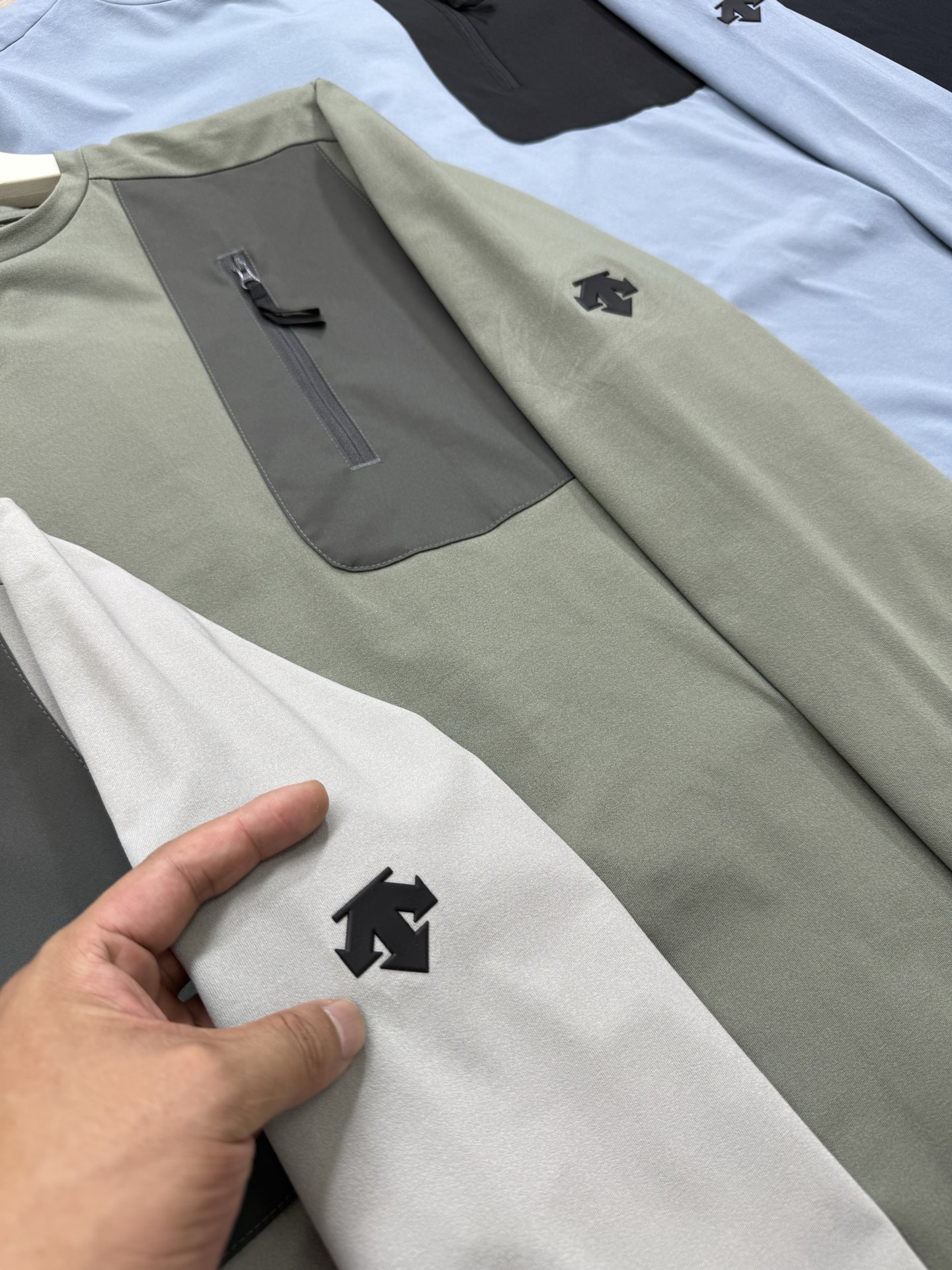 这款衣服是AAAAA 1:1 质量 (非常棒). 使用了和原版一模一样的材料. 商标部分也保持了和Descente一样. 图片拍摄是实物衣服拍摄, 您所收到的实物保证和我们图片一模一样.