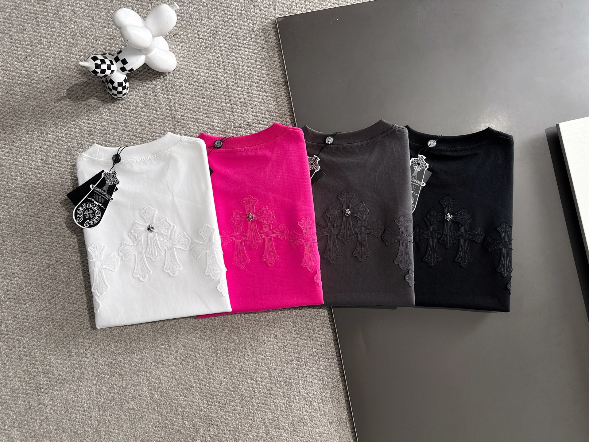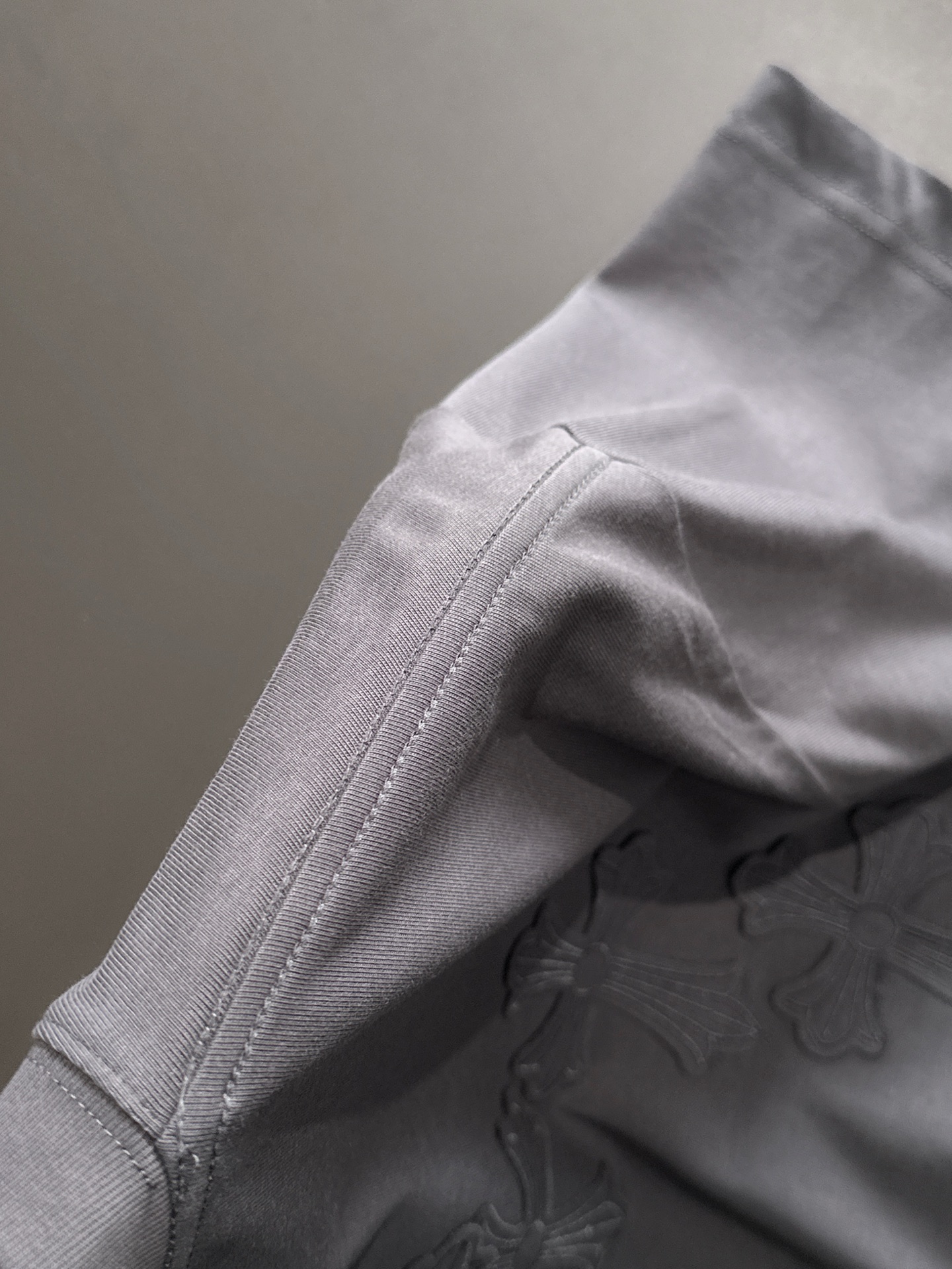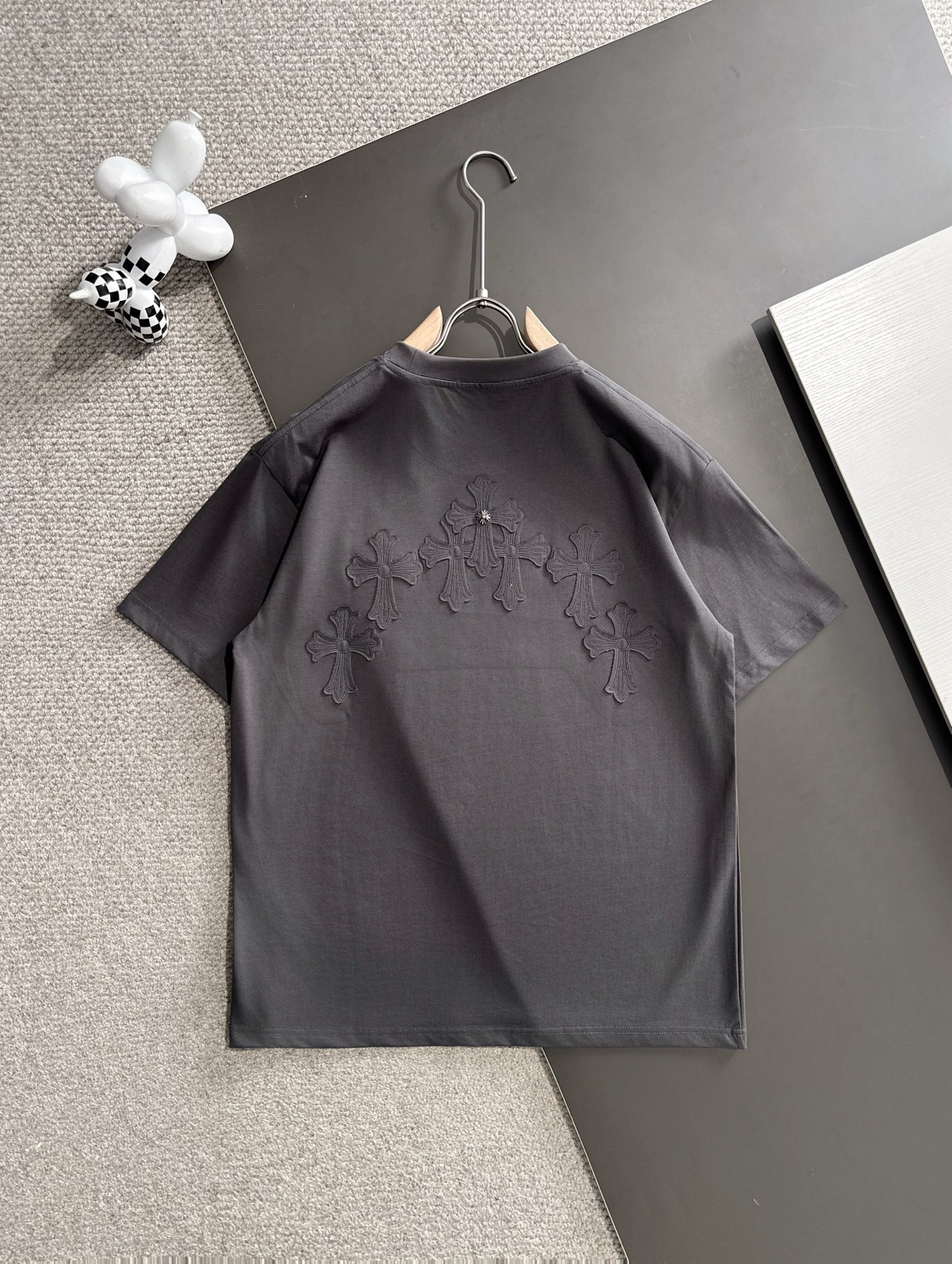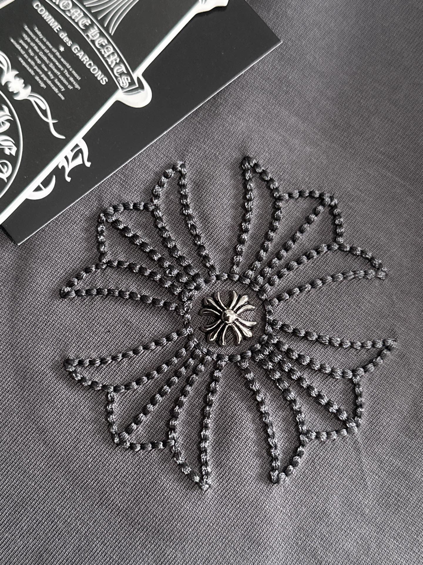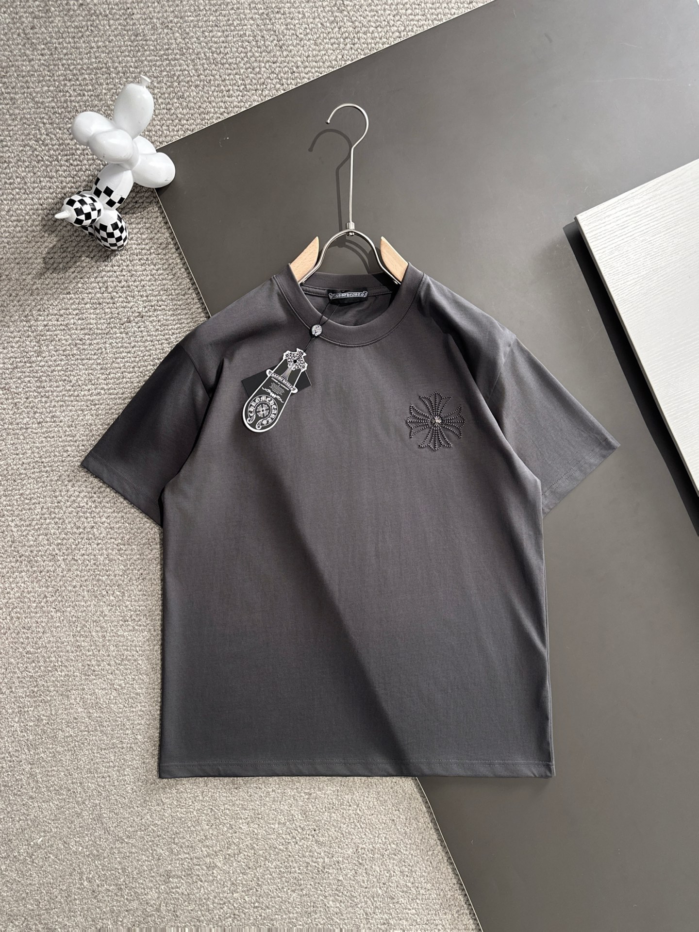 这款衣服是AAAAA 1:1 质量 (非常棒). 使用了和原版一模一样的材料. 商标部分也保持了和克罗心/Chrome Hearts一样. 图片拍摄是实物衣服拍摄, 您所收到的实物保证和我们图片一模一样.