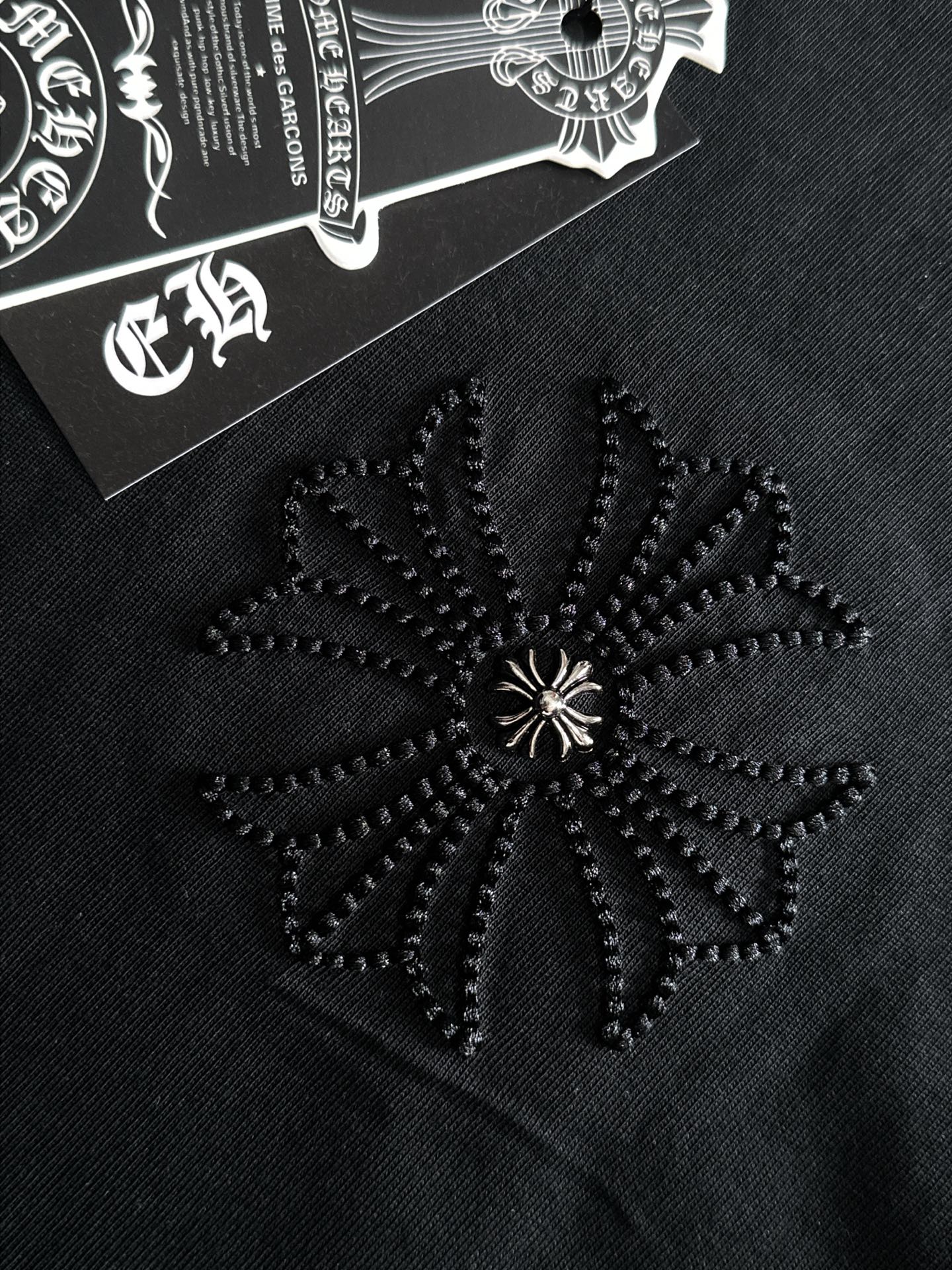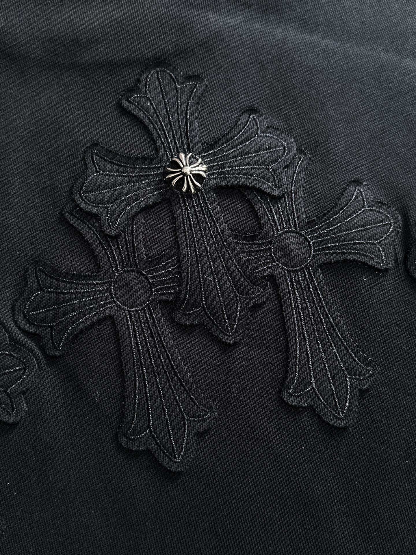这款衣服是AAAAA 1:1 质量 (非常棒). 使用了和原版一模一样的材料. 商标部分也保持了和克罗心/Chrome Hearts一样. 图片拍摄是实物衣服拍摄, 您所收到的实物保证和我们图片一模一样.