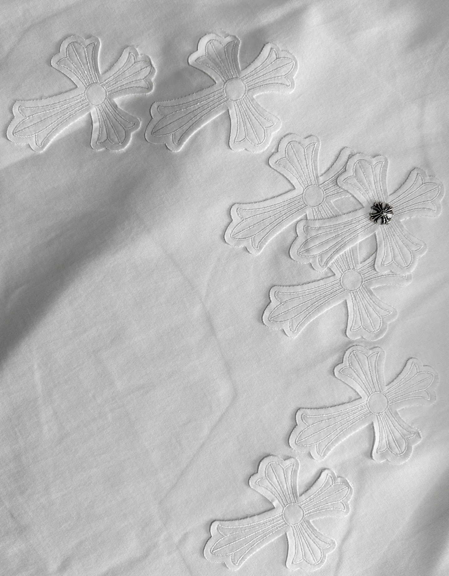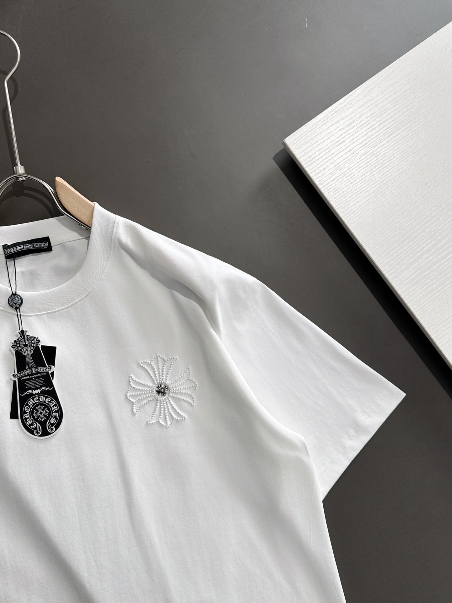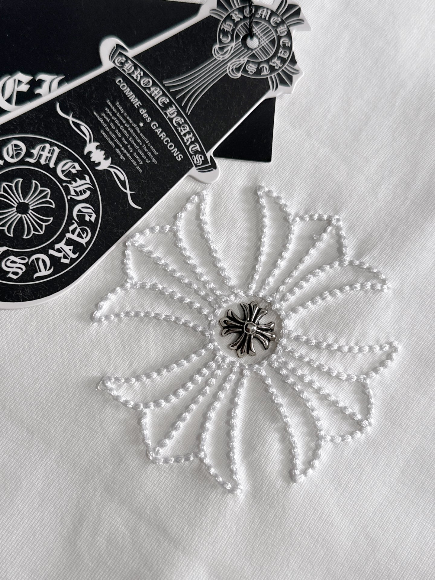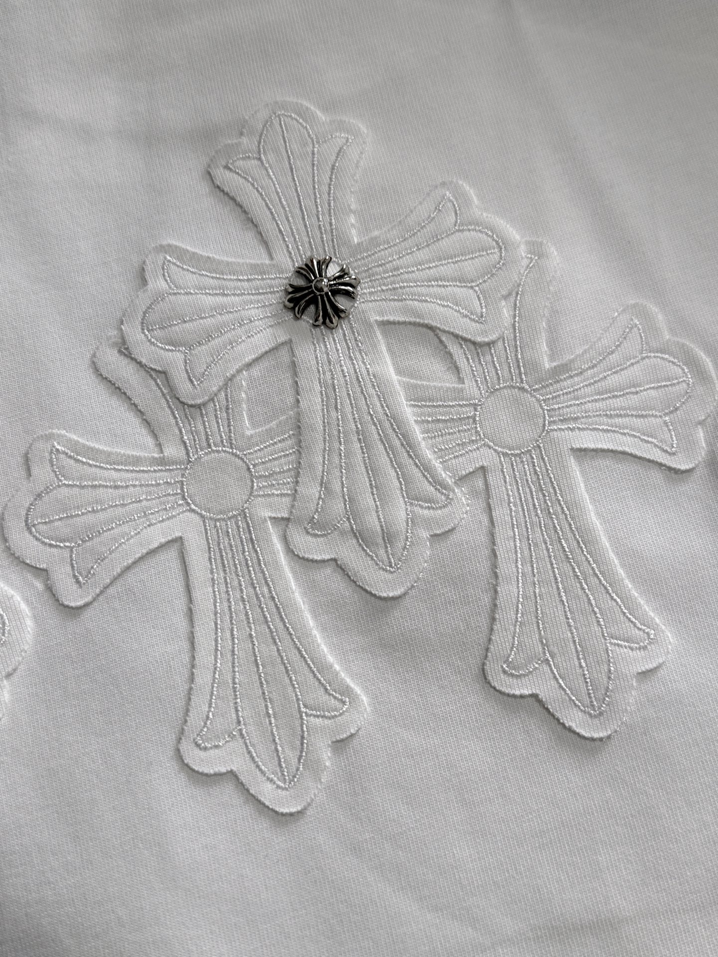 这款衣服是AAAAA 1:1 质量 (非常棒). 使用了和原版一模一样的材料. 商标部分也保持了和克罗心/Chrome Hearts一样. 图片拍摄是实物衣服拍摄, 您所收到的实物保证和我们图片一模一样.