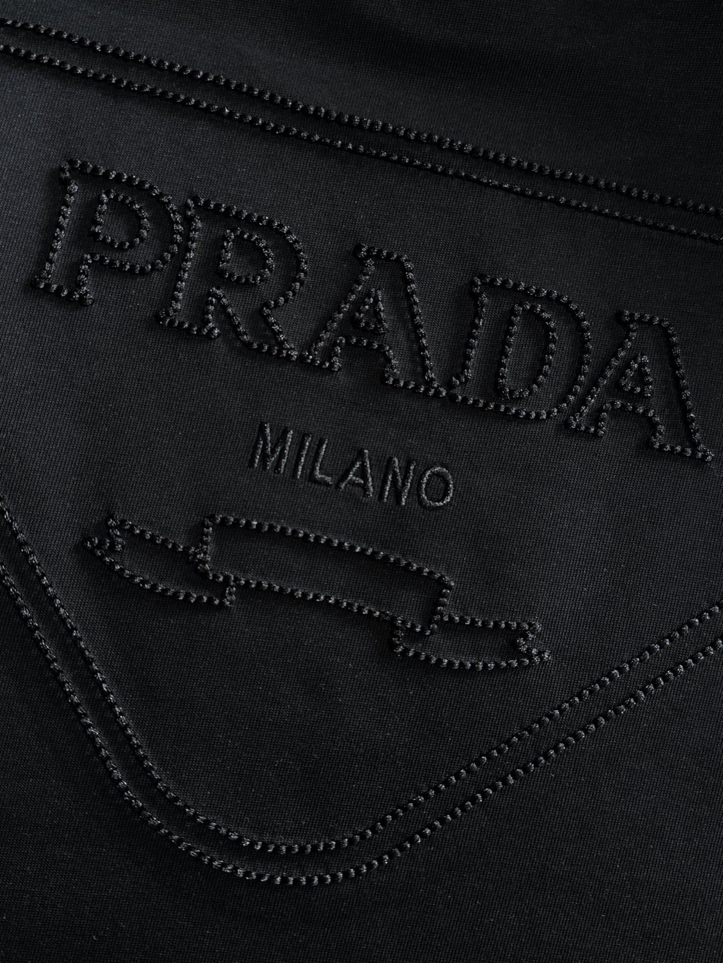 这款衣服是AAAAA 1:1 质量 (非常棒). 使用了和原版一模一样的材料. 商标部分也保持了和普拉达/Prada一样. 图片拍摄是实物衣服拍摄, 您所收到的实物保证和我们图片一模一样.
