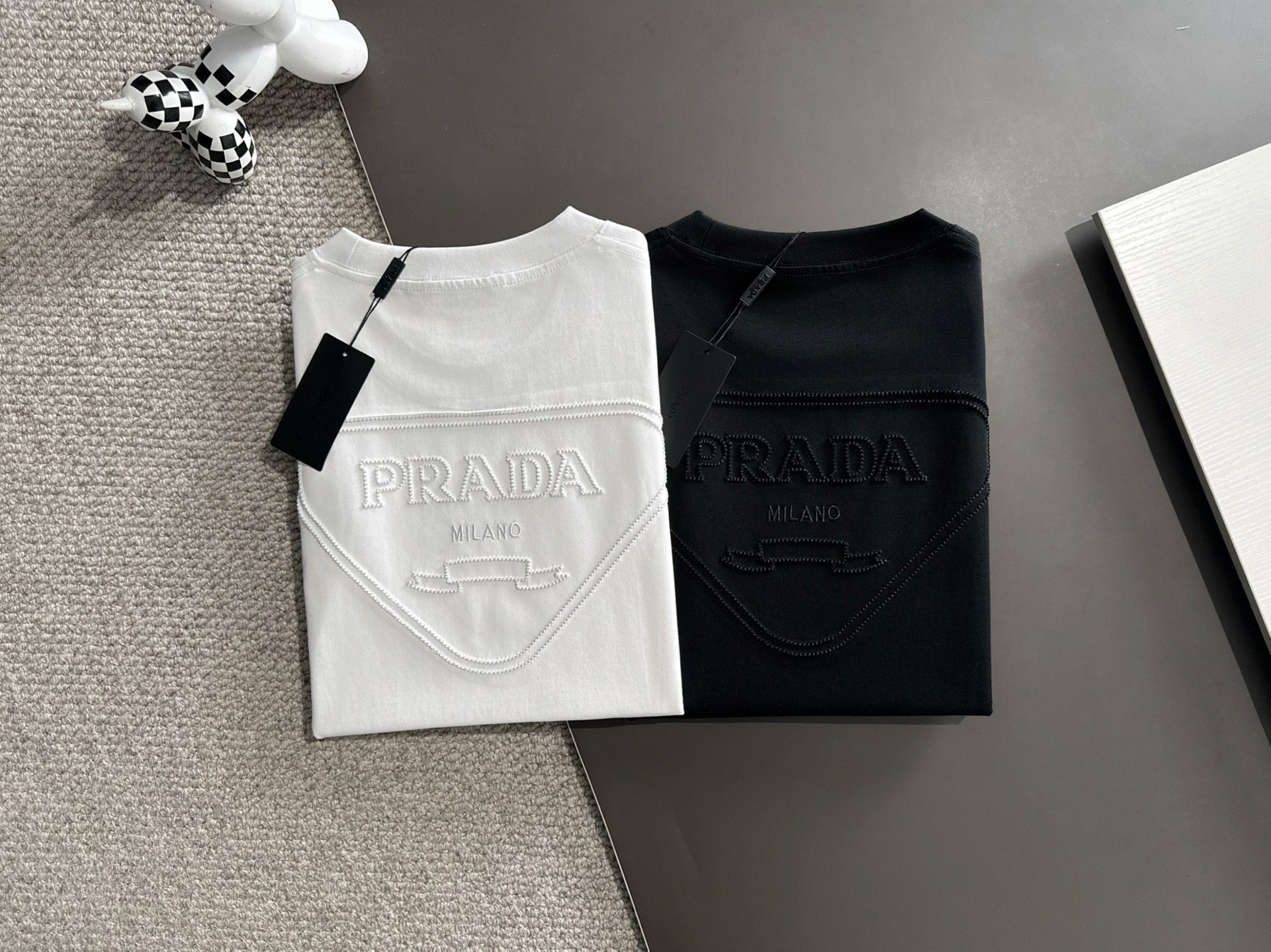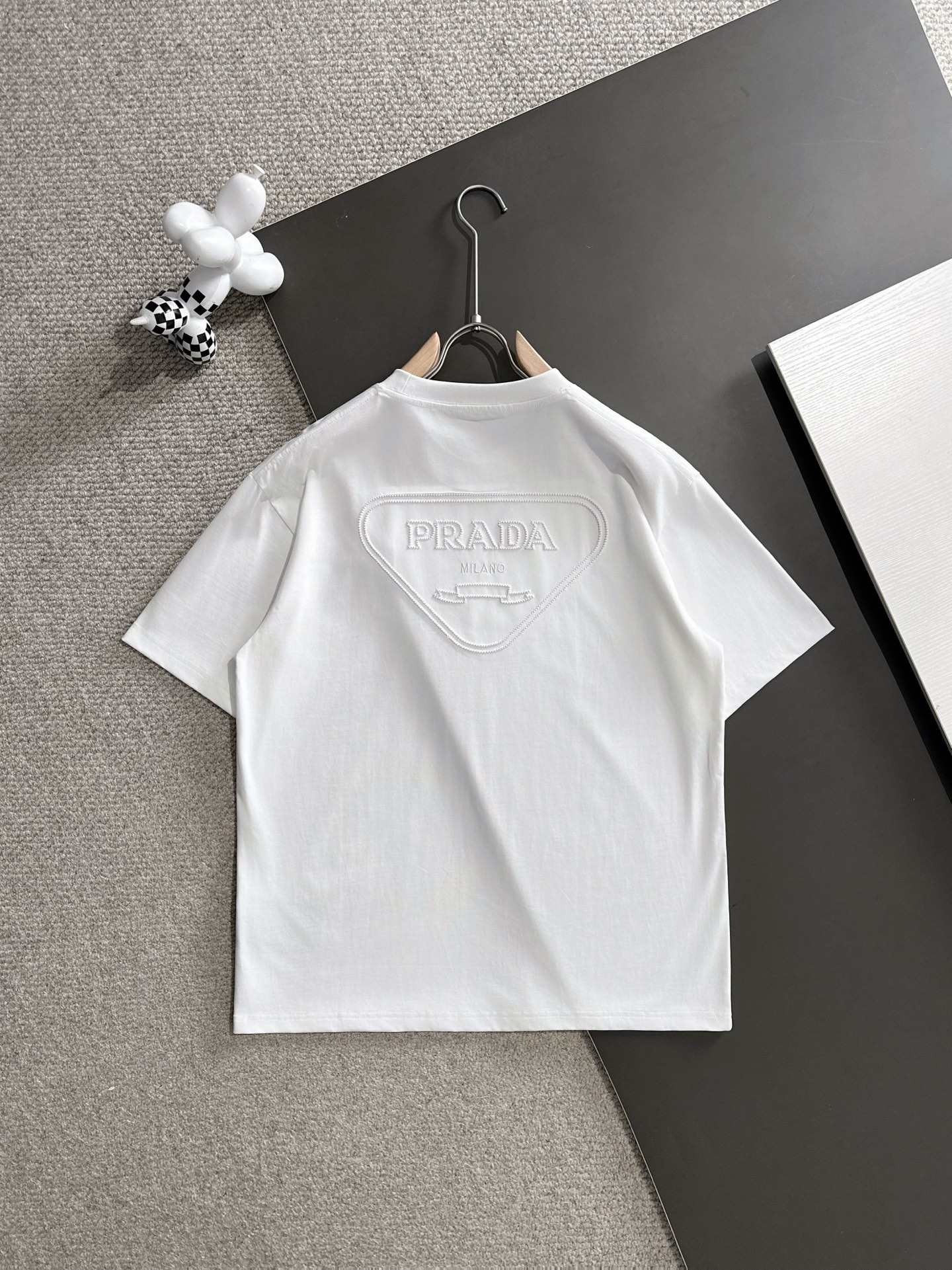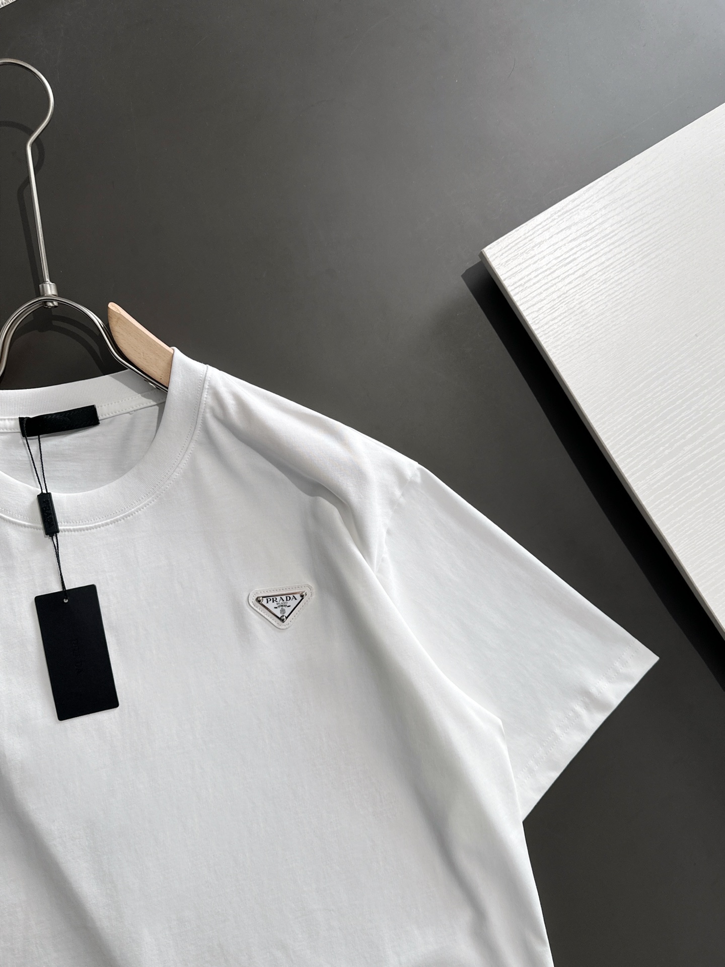 这款衣服是AAAAA 1:1 质量 (非常棒). 使用了和原版一模一样的材料. 商标部分也保持了和普拉达/Prada一样. 图片拍摄是实物衣服拍摄, 您所收到的实物保证和我们图片一模一样.