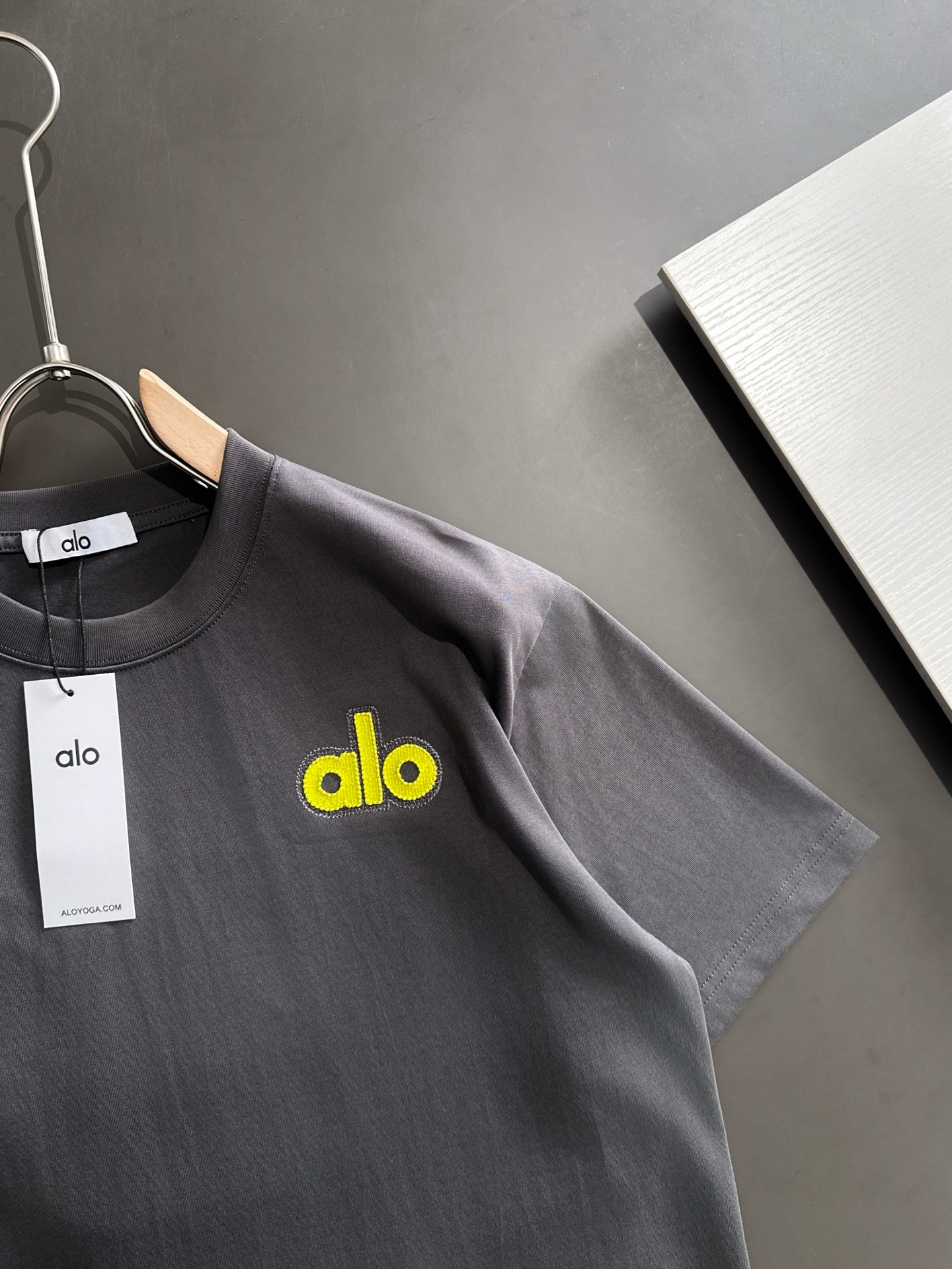 这款衣服是AAAAA 1:1 质量 (非常棒). 使用了和原版一模一样的材料. 商标部分也保持了和Alo Yoga一样. 图片拍摄是实物衣服拍摄, 您所收到的实物保证和我们图片一模一样.