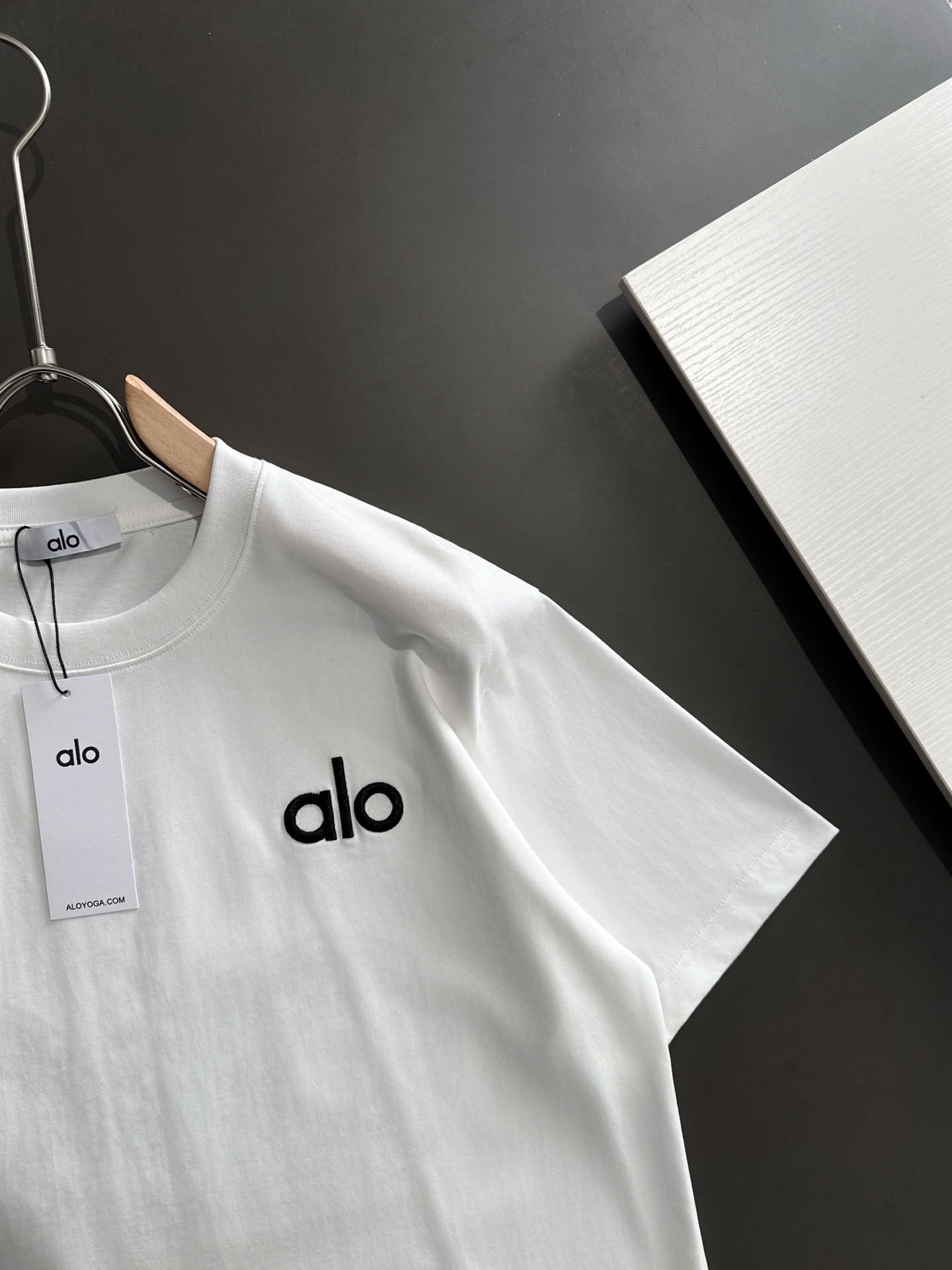 这款衣服是AAAAA 1:1 质量 (非常棒). 使用了和原版一模一样的材料. 商标部分也保持了和Alo Yoga一样. 图片拍摄是实物衣服拍摄, 您所收到的实物保证和我们图片一模一样.