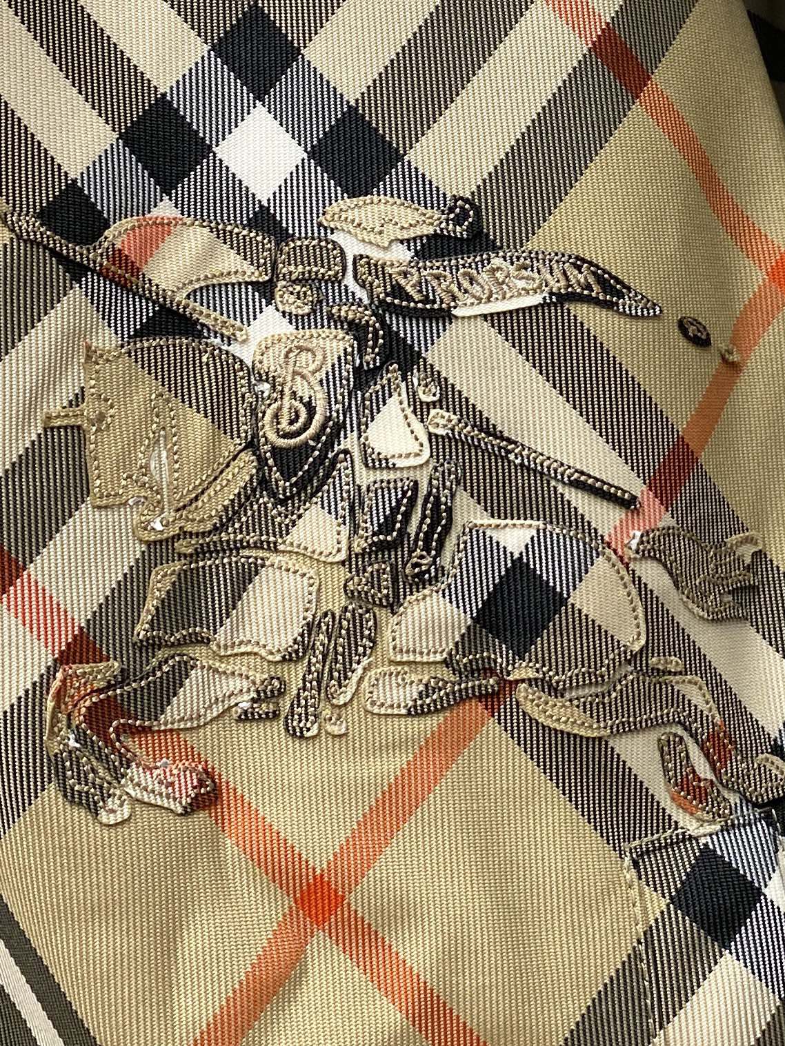 这款衣服是AAAAA 1:1 质量 (非常棒). 使用了和原版一模一样的材料. 商标部分也保持了和巴宝莉/Burberry一样. 图片拍摄是实物衣服拍摄, 您所收到的实物保证和我们图片一模一样.