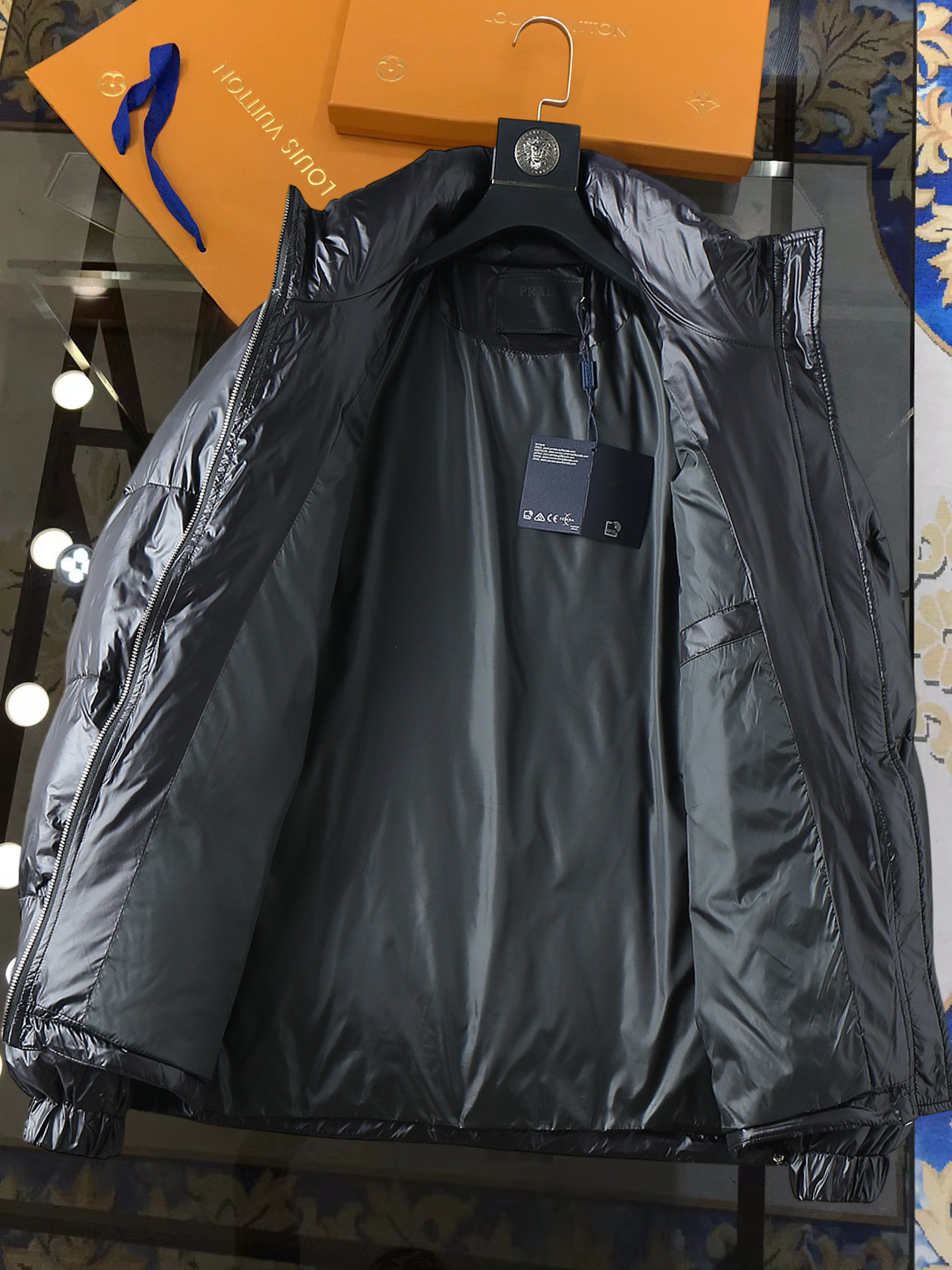 这款衣服是AAAAA 1:1 质量 (非常棒). 使用了和原版一模一样的材料. 商标部分也保持了和普拉达/Prada一样. 图片拍摄是实物衣服拍摄, 您所收到的实物保证和我们图片一模一样.