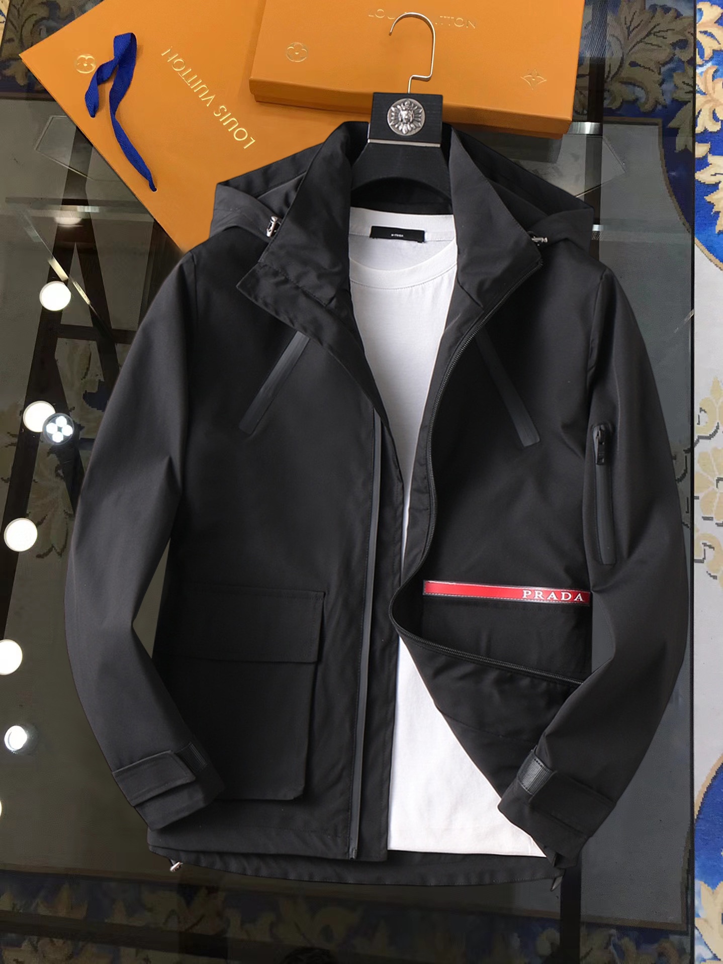 这款衣服是AAAAA 1:1 质量 (非常棒). 使用了和原版一模一样的材料. 商标部分也保持了和普拉达/Prada一样. 图片拍摄是实物衣服拍摄, 您所收到的实物保证和我们图片一模一样.
