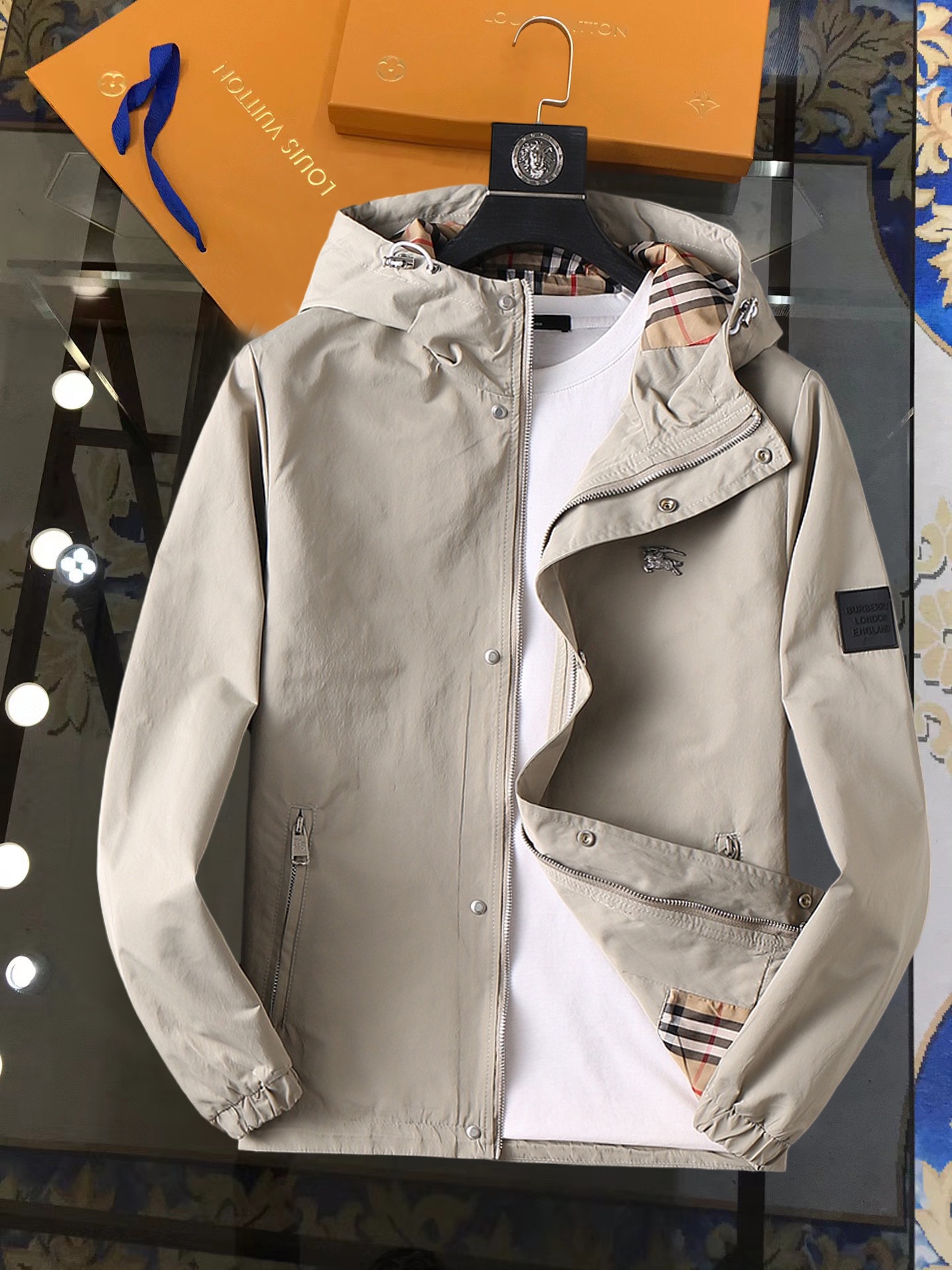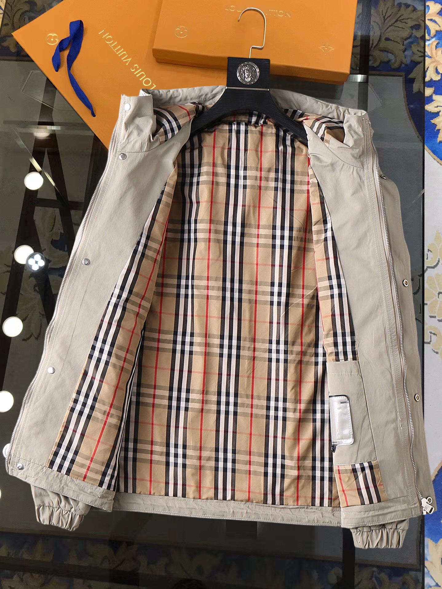 这款衣服是AAAAA 1:1 质量 (非常棒). 使用了和原版一模一样的材料. 商标部分也保持了和巴宝莉/Burberry一样. 图片拍摄是实物衣服拍摄, 您所收到的实物保证和我们图片一模一样.