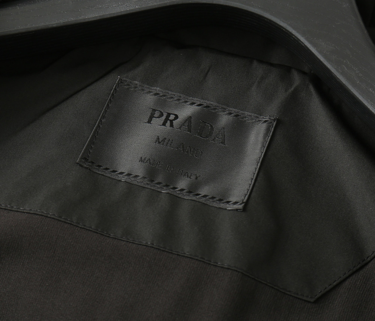 这款衣服是AAAAA 1:1 质量 (非常棒). 使用了和原版一模一样的材料. 商标部分也保持了和普拉达/Prada一样. 图片拍摄是实物衣服拍摄, 您所收到的实物保证和我们图片一模一样.