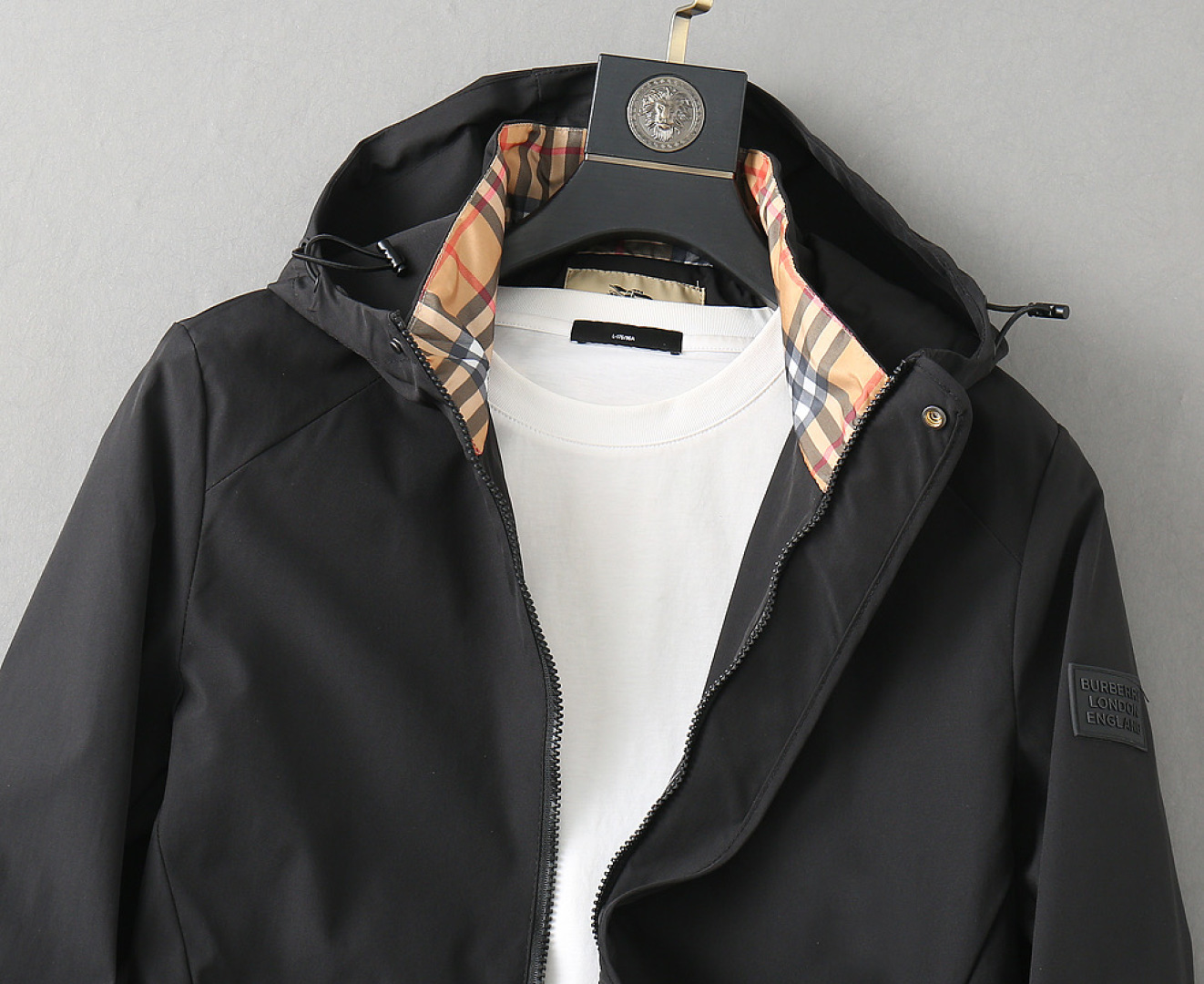 这款衣服是AAAAA 1:1 质量 (非常棒). 使用了和原版一模一样的材料. 商标部分也保持了和巴宝莉/Burberry一样. 图片拍摄是实物衣服拍摄, 您所收到的实物保证和我们图片一模一样.