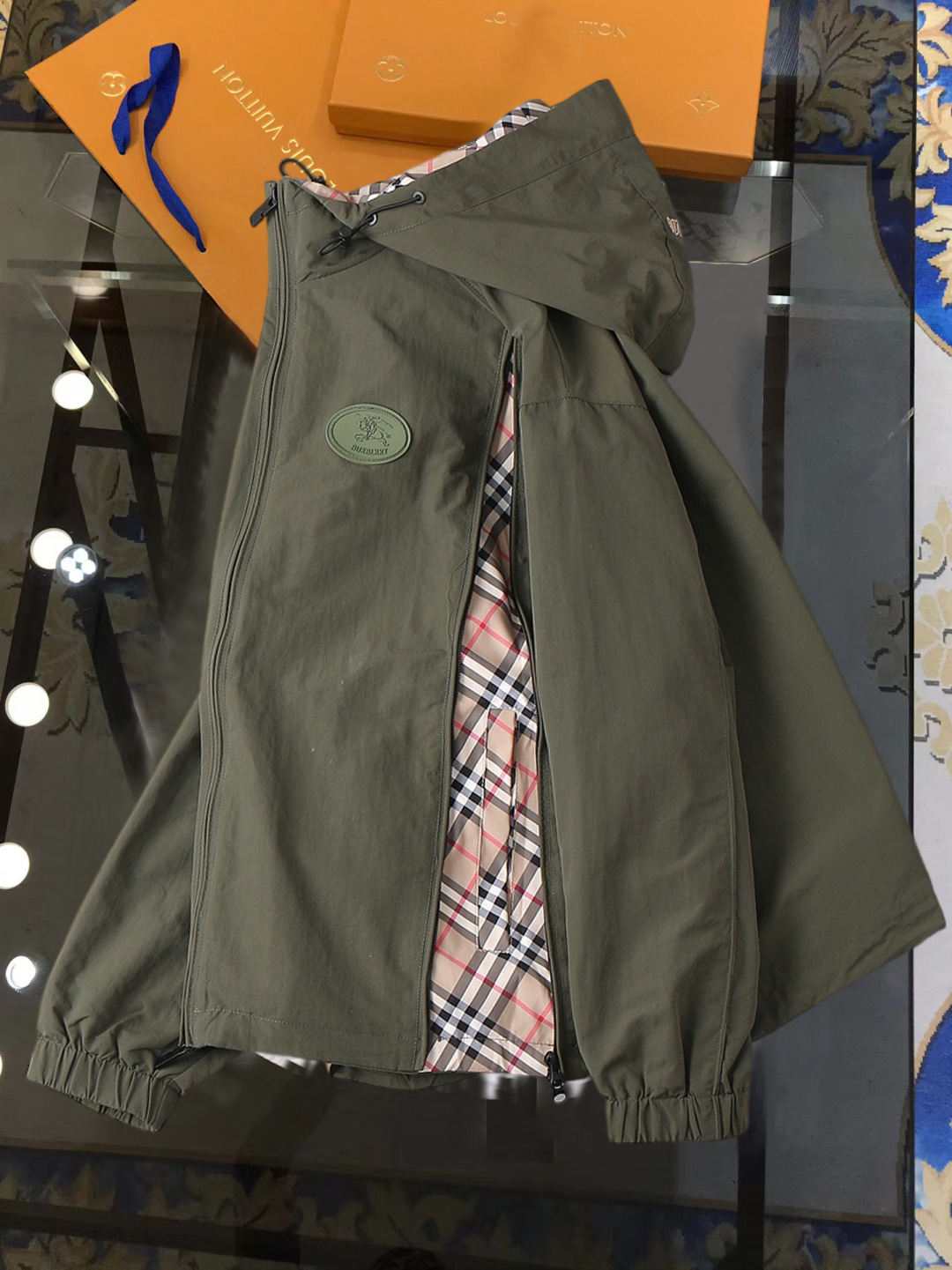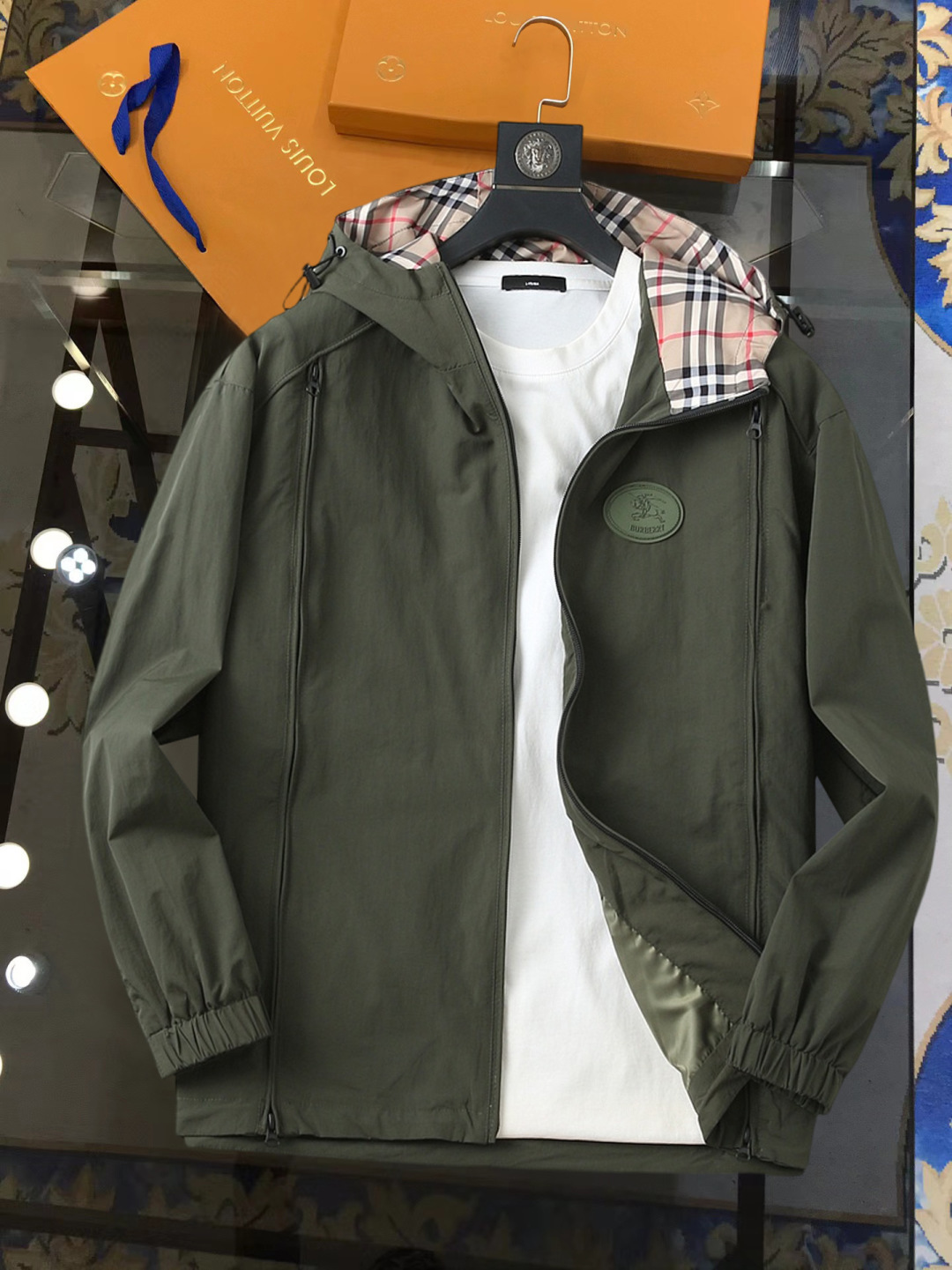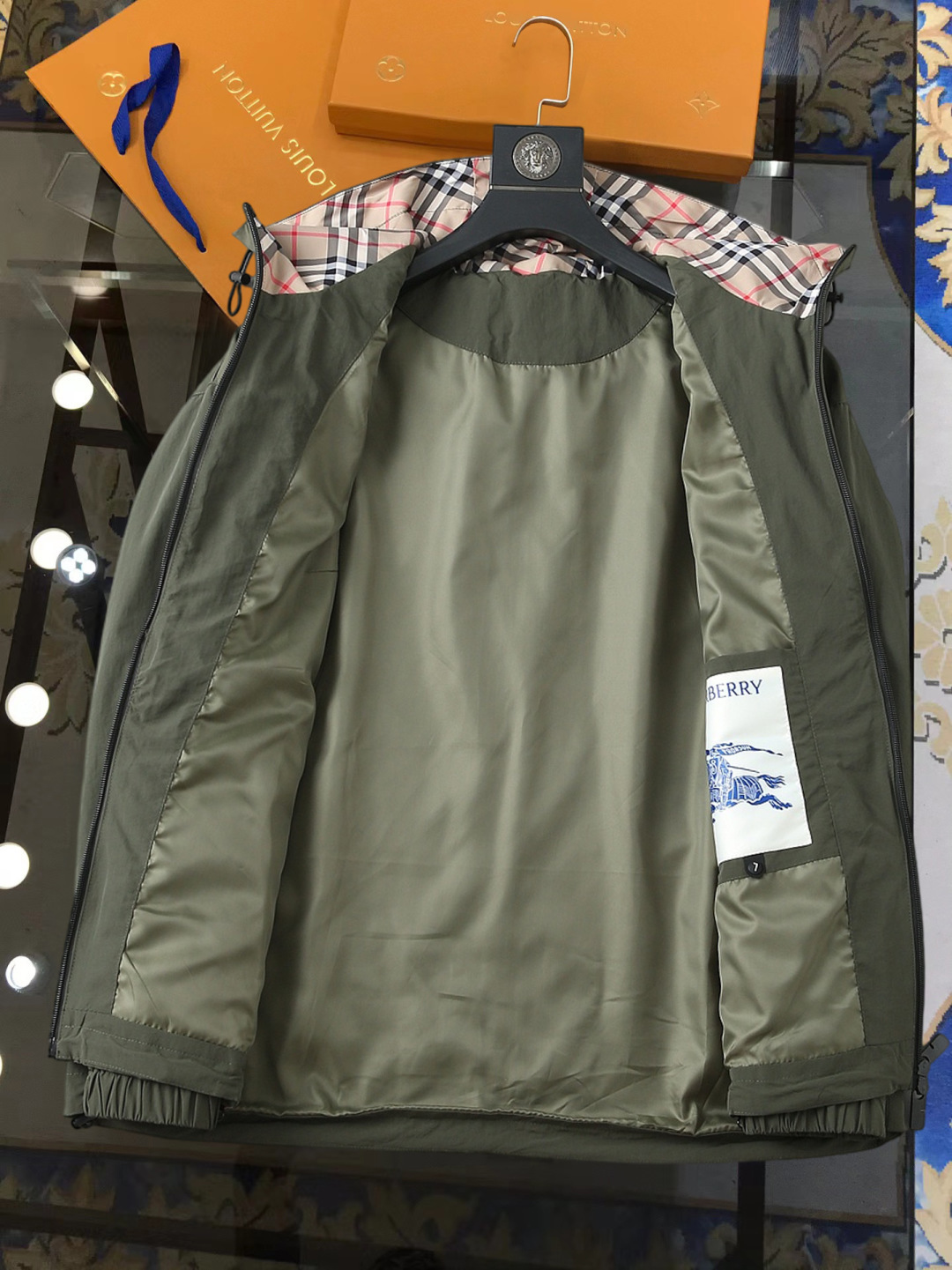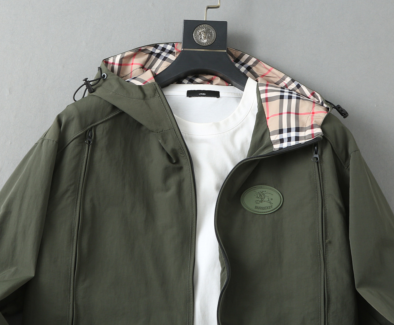 这款衣服是AAAAA 1:1 质量 (非常棒). 使用了和原版一模一样的材料. 商标部分也保持了和巴宝莉/Burberry一样. 图片拍摄是实物衣服拍摄, 您所收到的实物保证和我们图片一模一样.