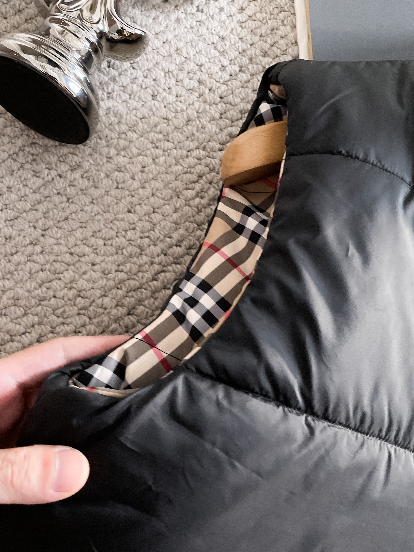 这款衣服是AAAAA 1:1 质量 (非常棒). 使用了和原版一模一样的材料. 商标部分也保持了和巴宝莉/Burberry一样. 图片拍摄是实物衣服拍摄, 您所收到的实物保证和我们图片一模一样.