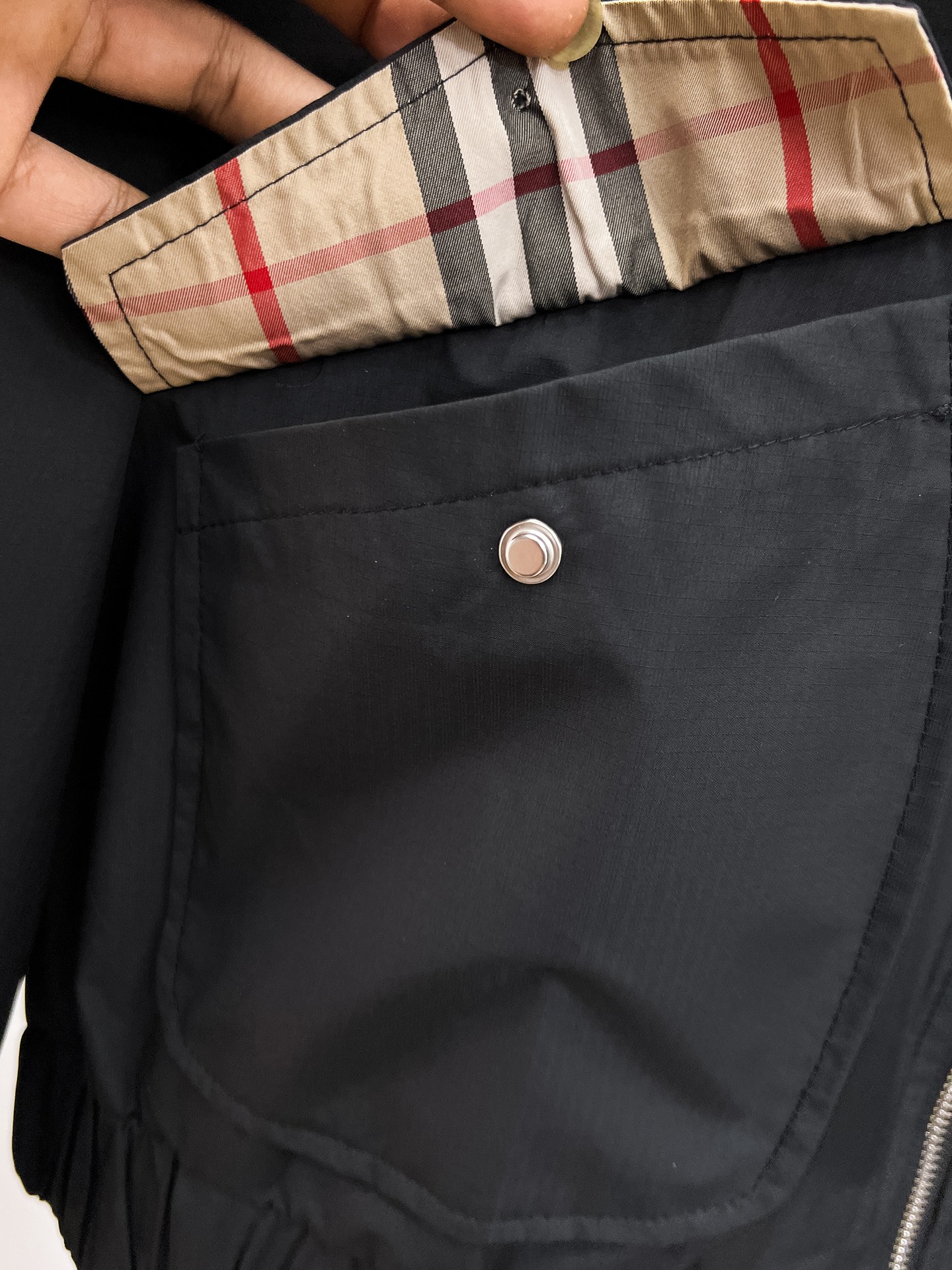 这款衣服是AAAAA 1:1 质量 (非常棒). 使用了和原版一模一样的材料. 商标部分也保持了和巴宝莉/Burberry一样. 图片拍摄是实物衣服拍摄, 您所收到的实物保证和我们图片一模一样.