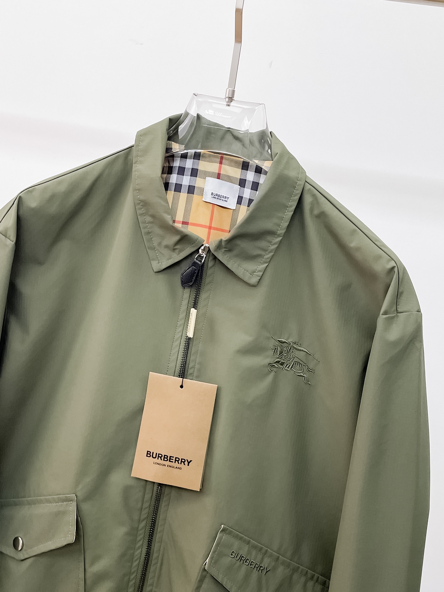 这款衣服是AAAAA 1:1 质量 (非常棒). 使用了和原版一模一样的材料. 商标部分也保持了和巴宝莉/Burberry一样. 图片拍摄是实物衣服拍摄, 您所收到的实物保证和我们图片一模一样.