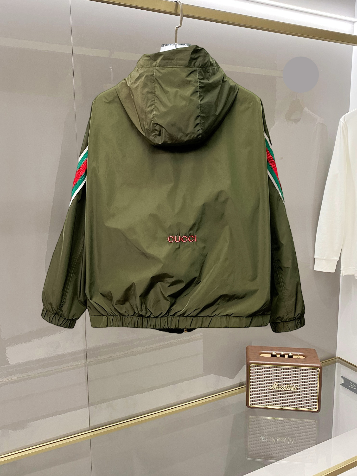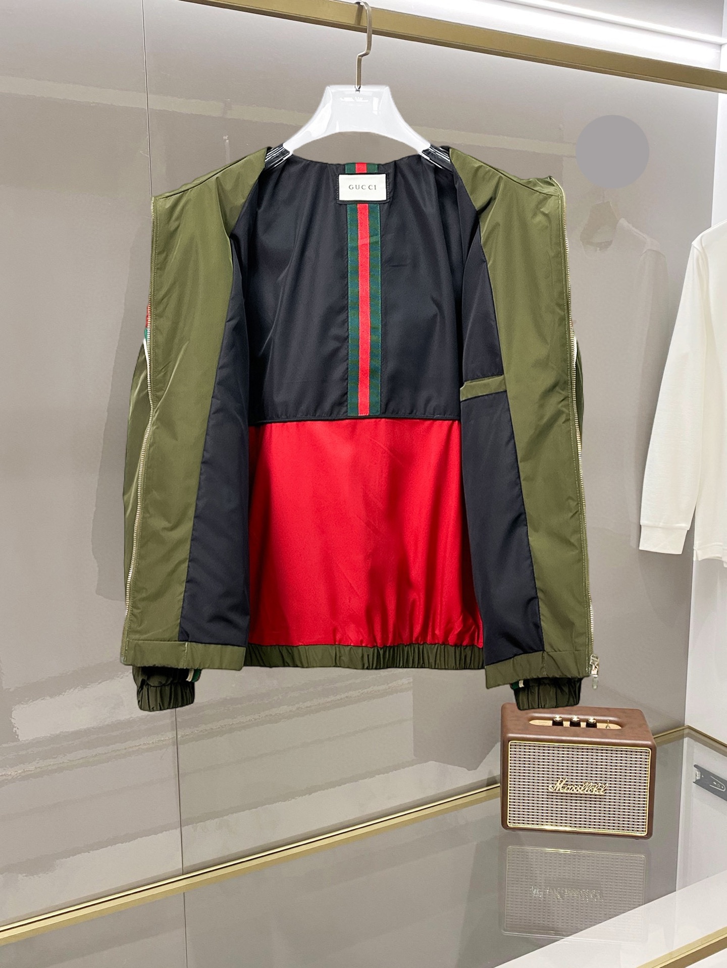 这款衣服是AAAAA 1:1 质量 (非常棒). 使用了和原版一模一样的材料. 商标部分也保持了和古奇/Gucci一样. 图片拍摄是实物衣服拍摄, 您所收到的实物保证和我们图片一模一样.