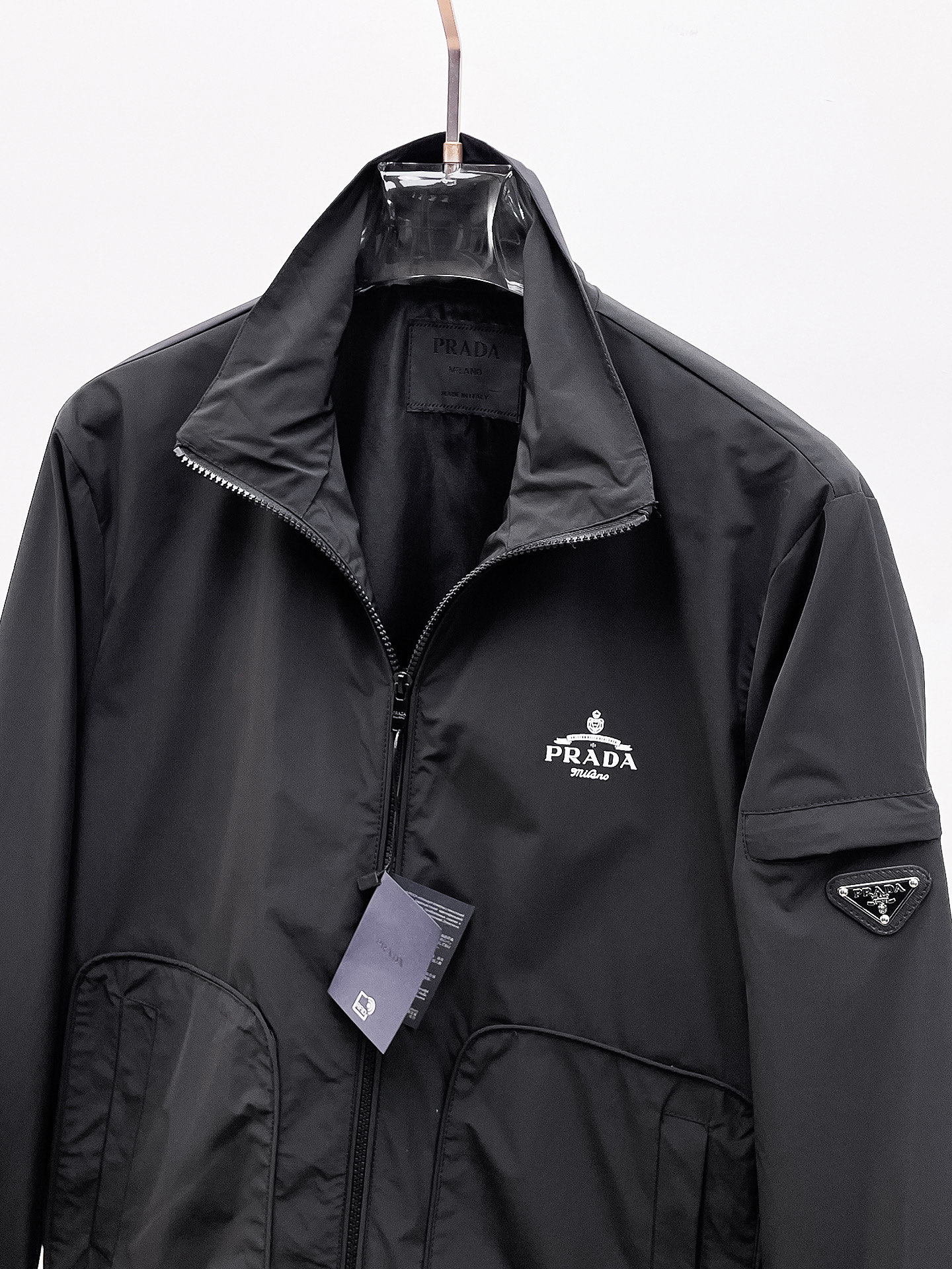 这款衣服是AAAAA 1:1 质量 (非常棒). 使用了和原版一模一样的材料. 商标部分也保持了和普拉达/Prada一样. 图片拍摄是实物衣服拍摄, 您所收到的实物保证和我们图片一模一样.