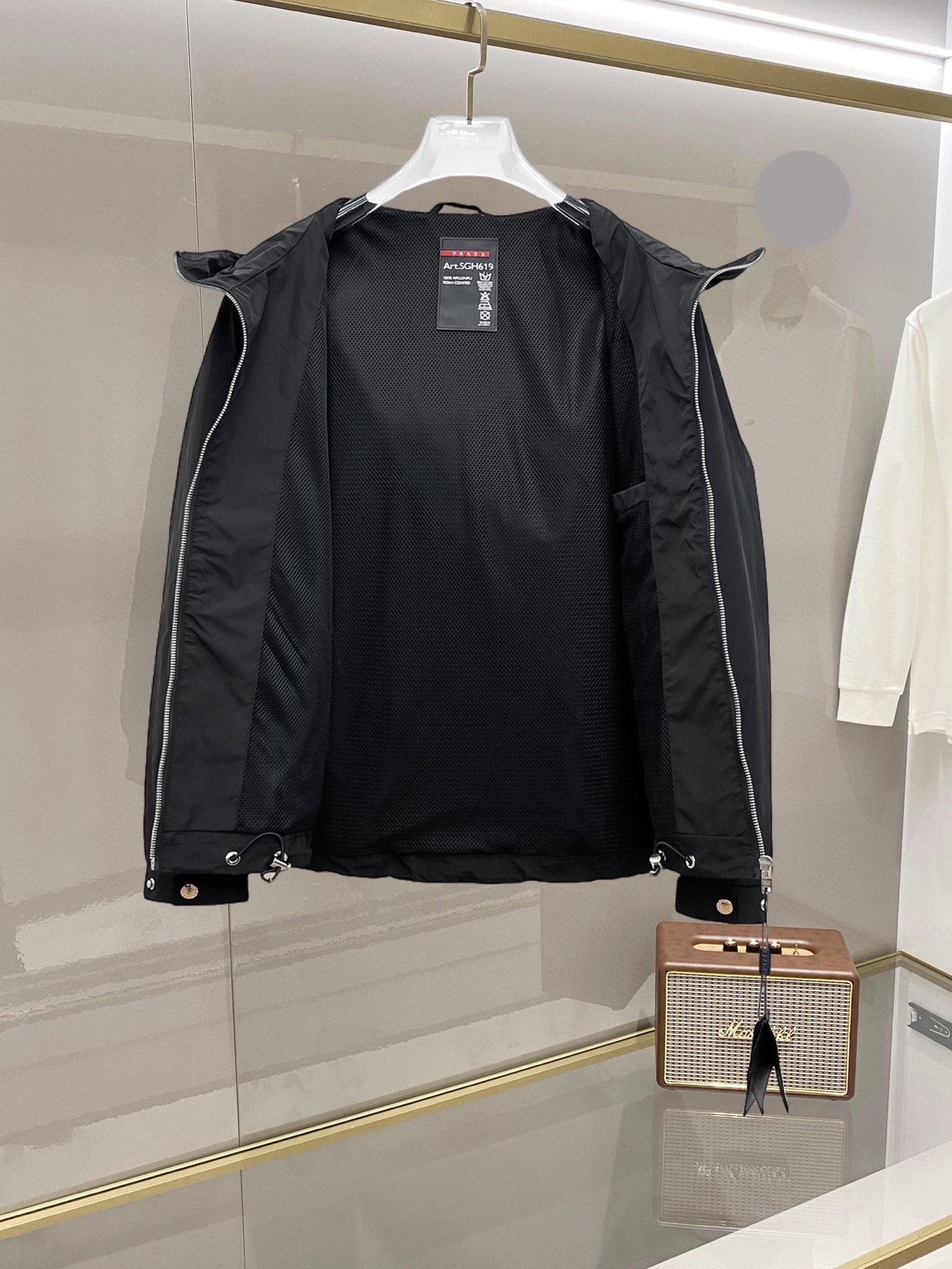 这款衣服是AAAAA 1:1 质量 (非常棒). 使用了和原版一模一样的材料. 商标部分也保持了和普拉达/Prada一样. 图片拍摄是实物衣服拍摄, 您所收到的实物保证和我们图片一模一样.
