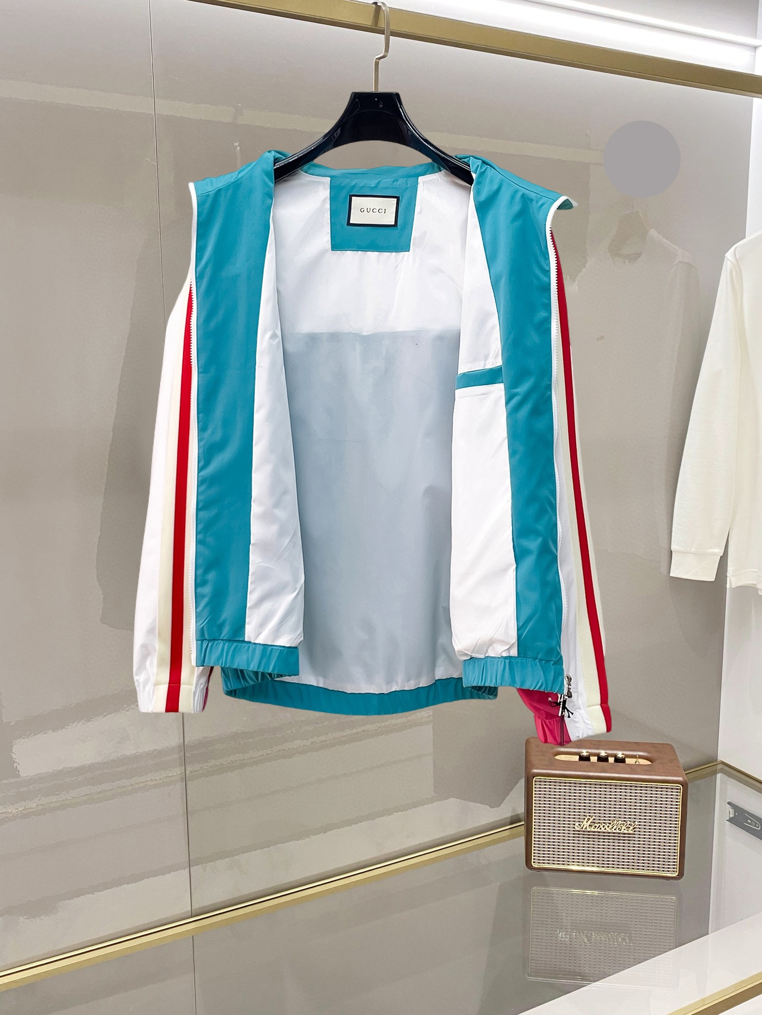 这款衣服是AAAAA 1:1 质量 (非常棒). 使用了和原版一模一样的材料. 商标部分也保持了和古奇/Gucci一样. 图片拍摄是实物衣服拍摄, 您所收到的实物保证和我们图片一模一样.