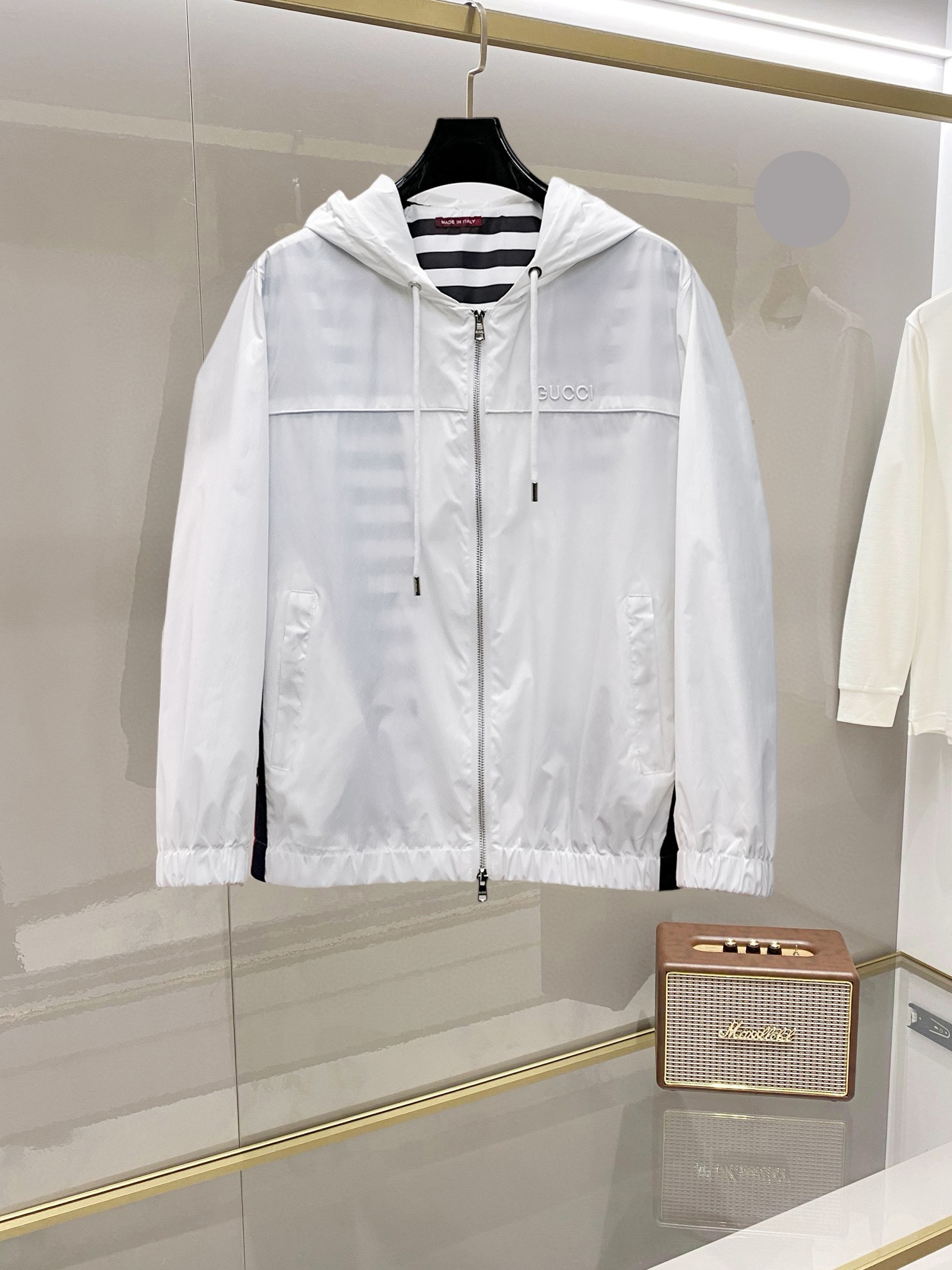 这款衣服是AAAAA 1:1 质量 (非常棒). 使用了和原版一模一样的材料. 商标部分也保持了和古奇/Gucci一样. 图片拍摄是实物衣服拍摄, 您所收到的实物保证和我们图片一模一样.
