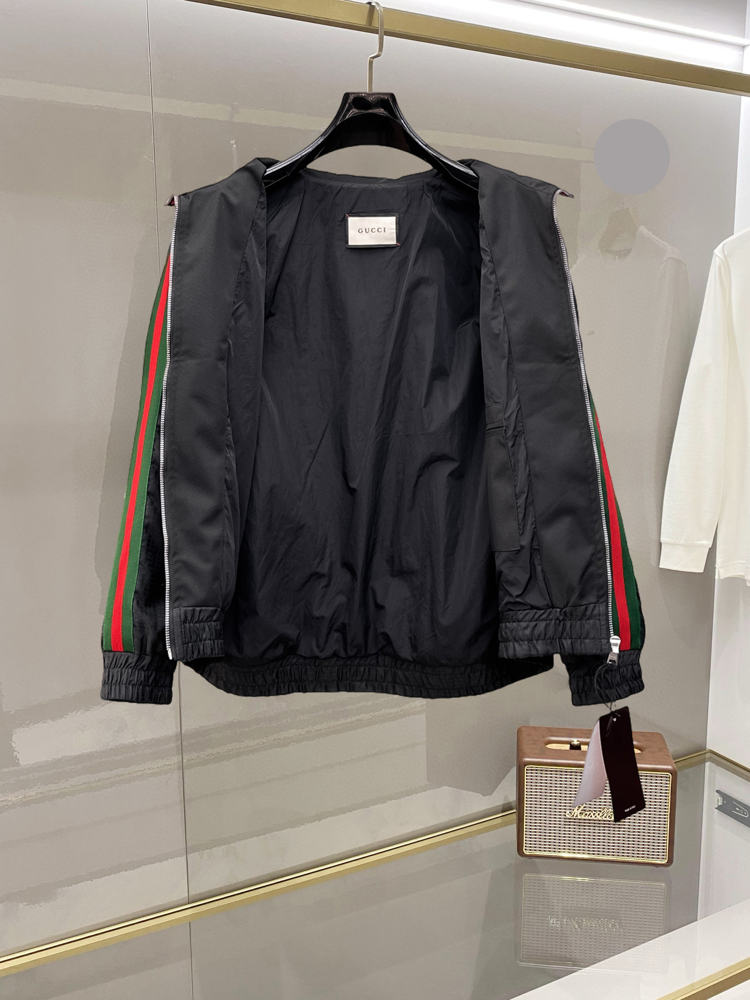 这款衣服是AAAAA 1:1 质量 (非常棒). 使用了和原版一模一样的材料. 商标部分也保持了和古奇/Gucci一样. 图片拍摄是实物衣服拍摄, 您所收到的实物保证和我们图片一模一样.