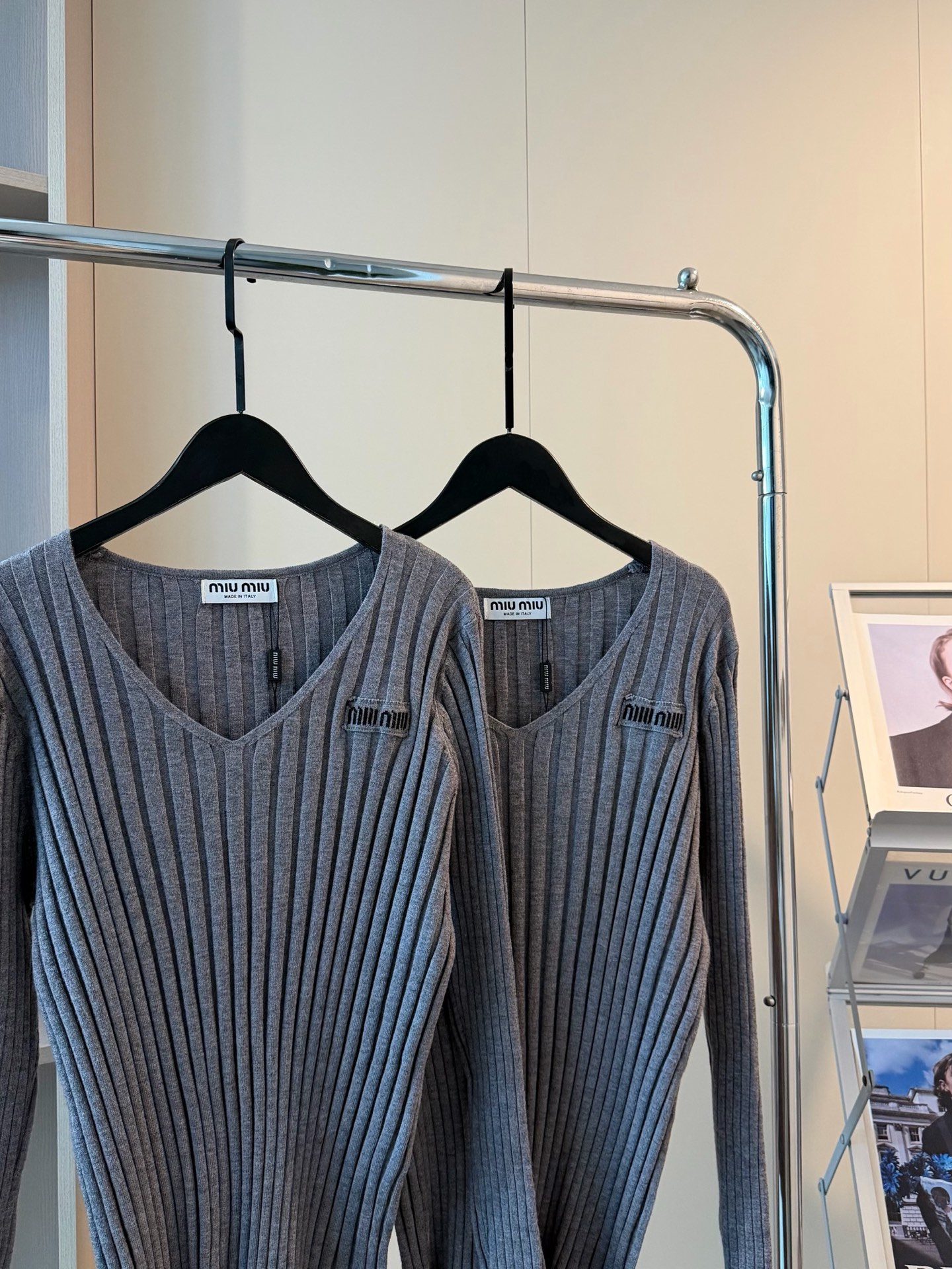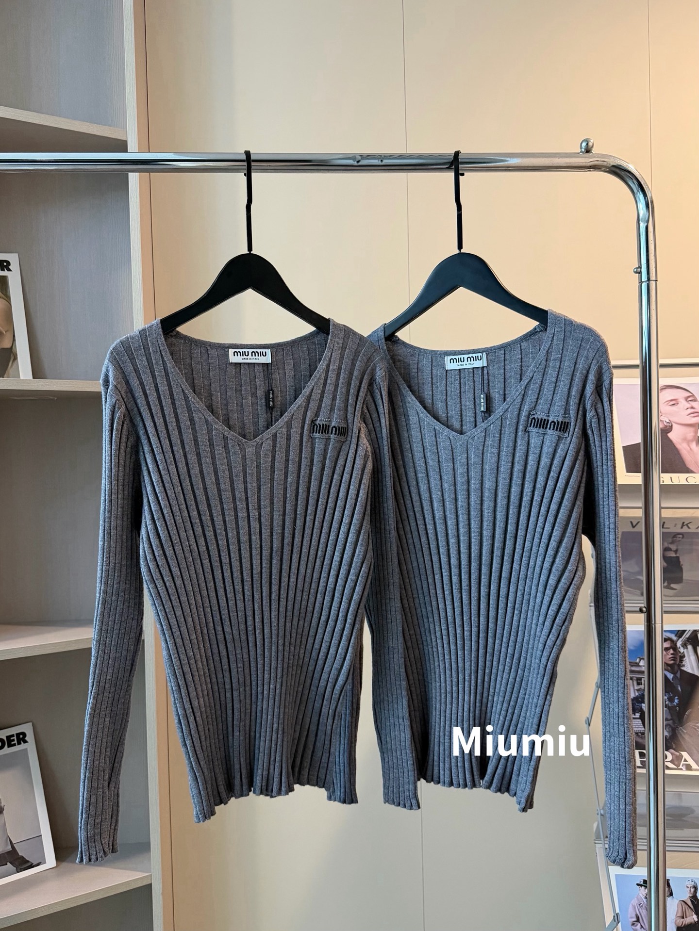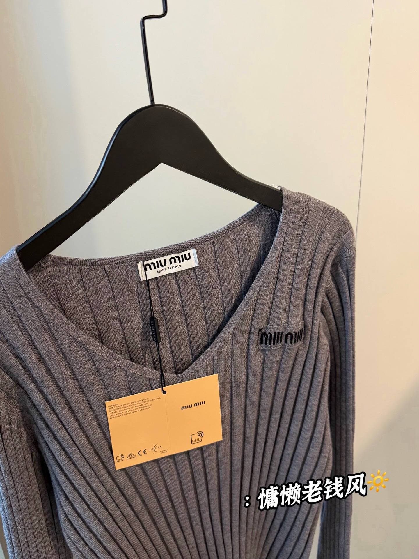 这款衣服是AAAAA 1:1 质量 (非常棒). 使用了和原版一模一样的材料. 商标部分也保持了和缪缪/Miu Miu一样. 图片拍摄是实物衣服拍摄, 您所收到的实物保证和我们图片一模一样.