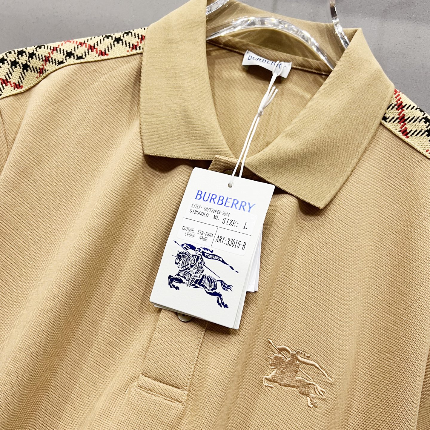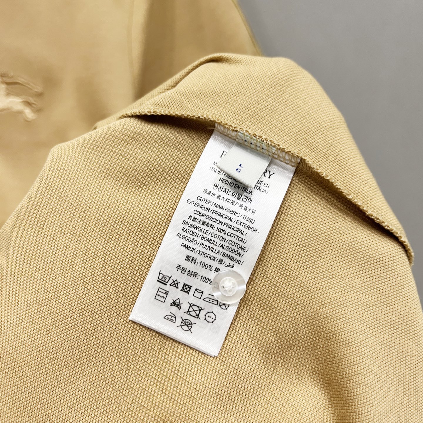 这款衣服是AAAAA 1:1 质量 (非常棒). 使用了和原版一模一样的材料. 商标部分也保持了和巴宝莉/Burberry一样. 图片拍摄是实物衣服拍摄, 您所收到的实物保证和我们图片一模一样.