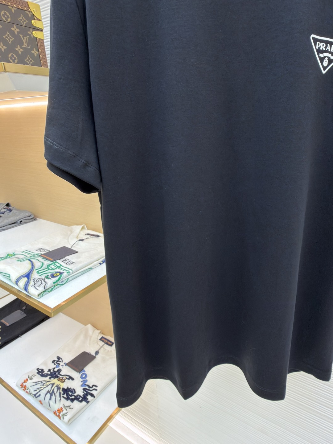 这款衣服是AAAAA 1:1 质量 (非常棒). 使用了和原版一模一样的材料. 商标部分也保持了和普拉达/Prada一样. 图片拍摄是实物衣服拍摄, 您所收到的实物保证和我们图片一模一样.