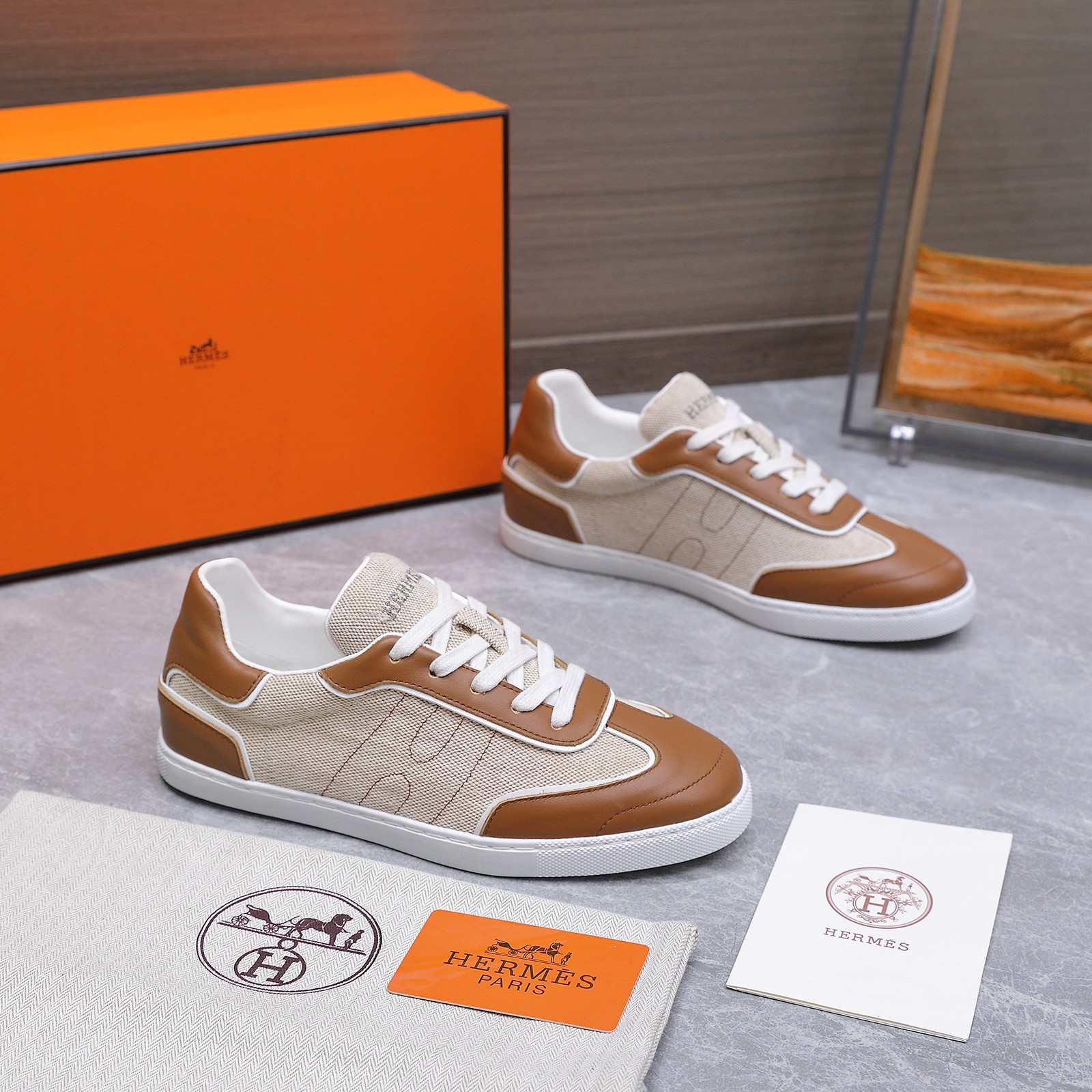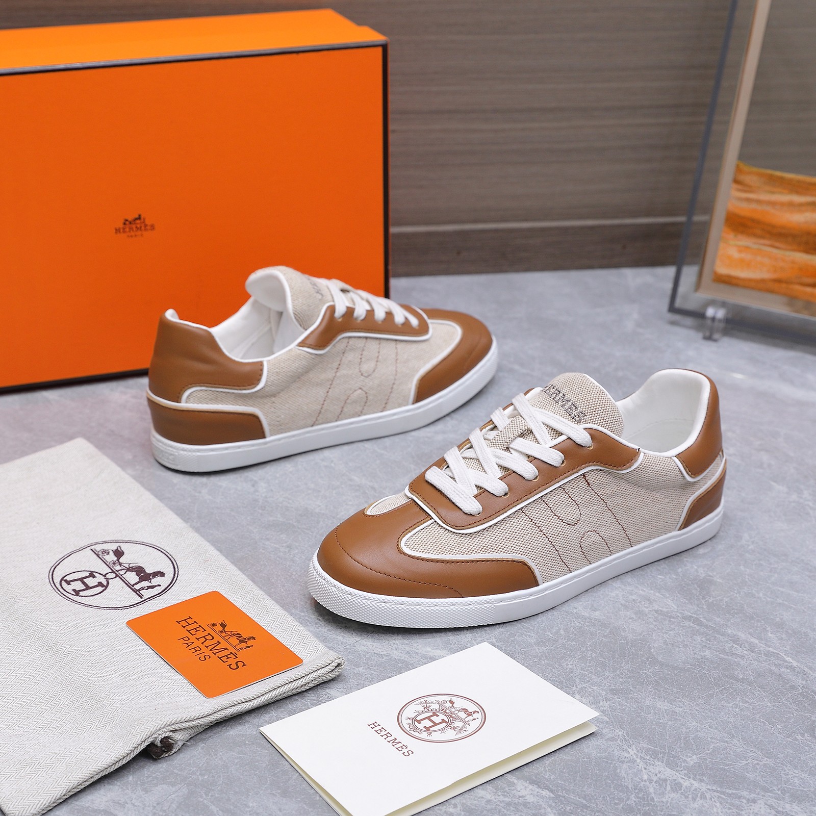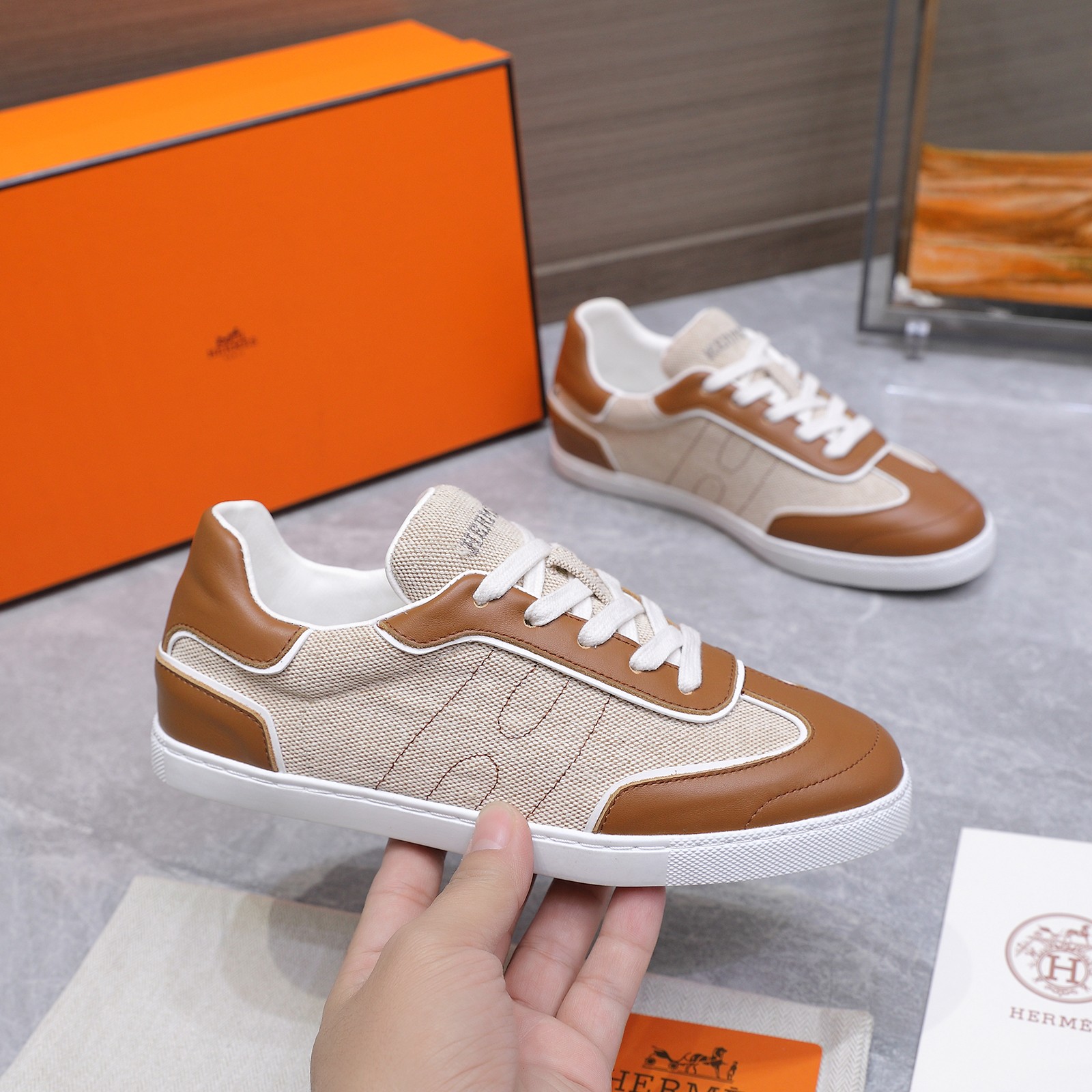 这款鞋子是AAAAA 1:1 质量 (非常棒). 使用了和原版一模一样的材料. 商标部分也保持了和爱马仕/Hermes一样. 图片拍摄是实物鞋子拍摄, 您所收到的实物保证和我们图片一模一样.