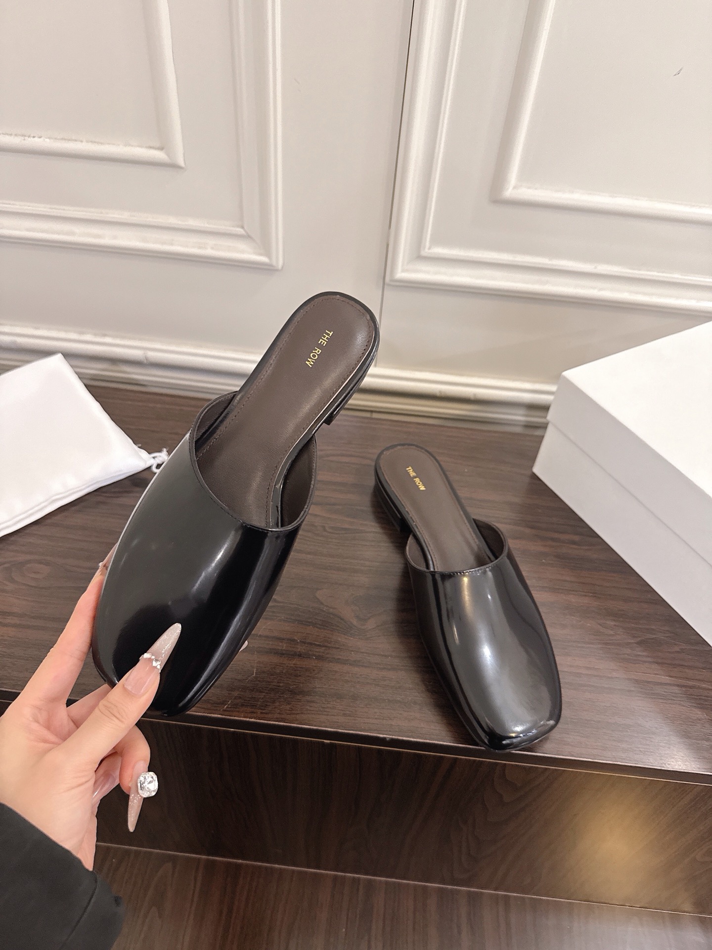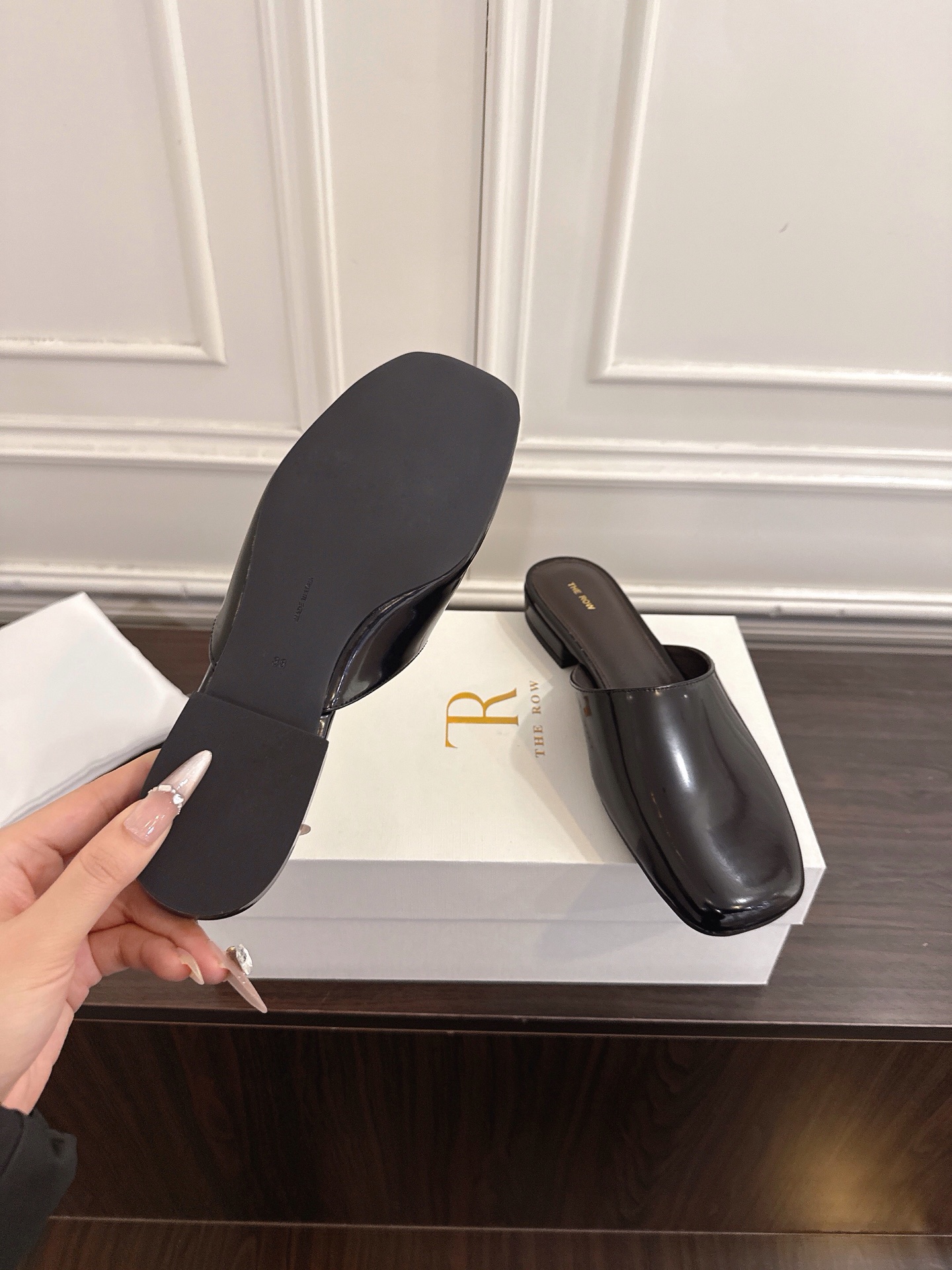 这款鞋子是AAAAA 1:1 质量 (非常棒). 使用了和原版一模一样的材料. 商标部分也保持了和The Row一样. 图片拍摄是实物鞋子拍摄, 您所收到的实物保证和我们图片一模一样.