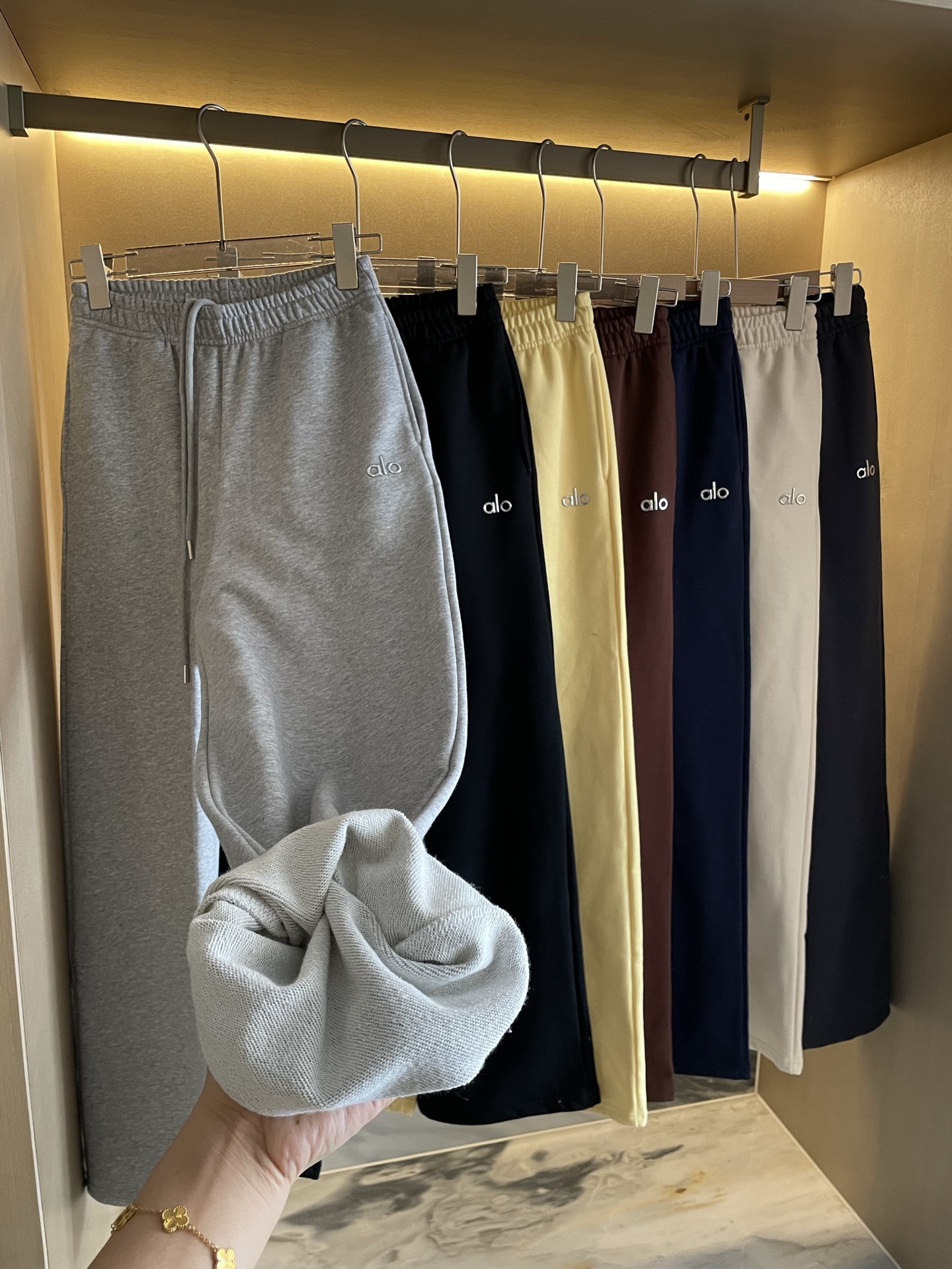 这款衣服是AAAAA 1:1 质量 (非常棒). 使用了和原版一模一样的材料. 商标部分也保持了和Alo Yoga一样. 图片拍摄是实物衣服拍摄, 您所收到的实物保证和我们图片一模一样.