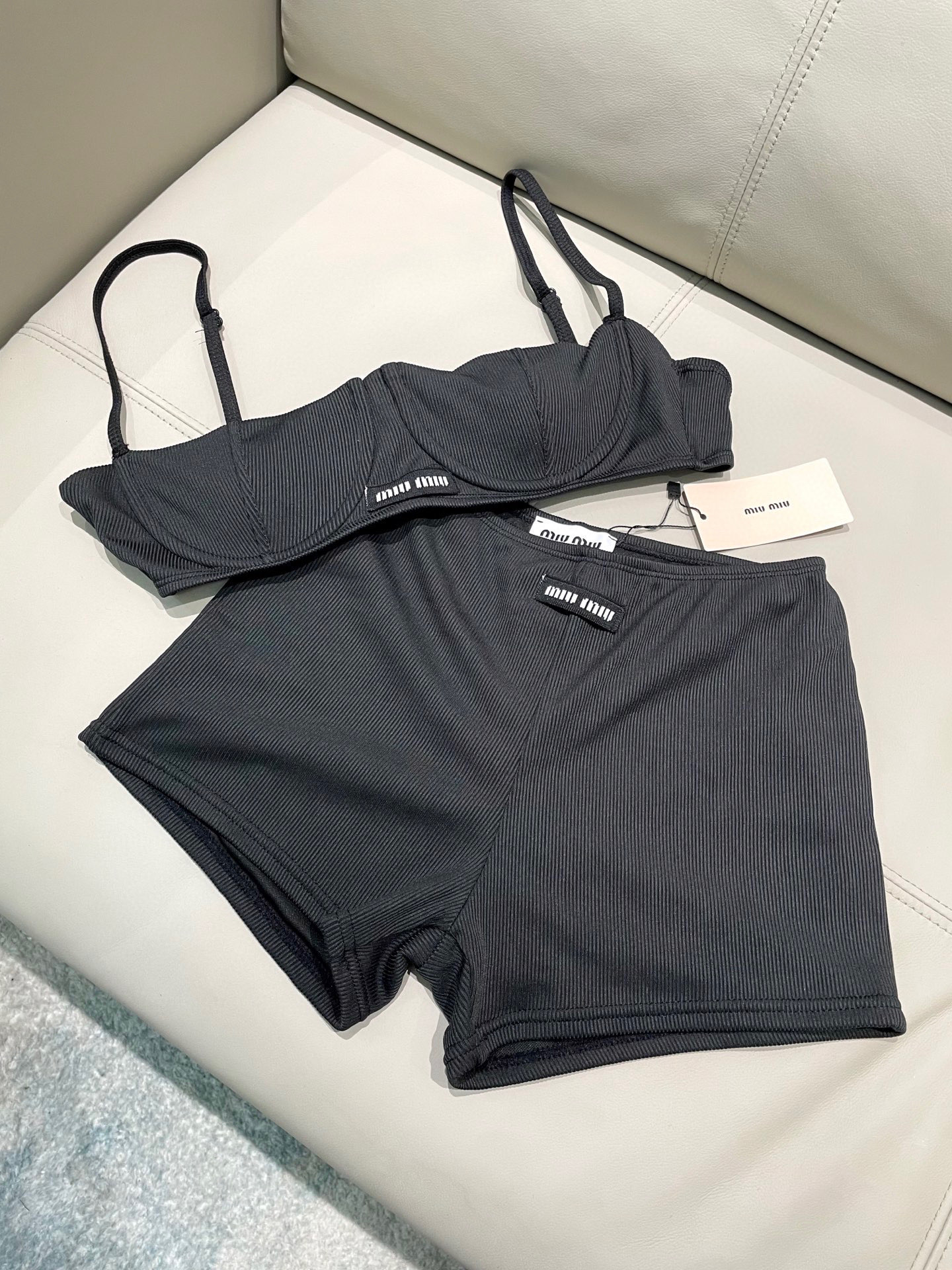 这款衣服是AAAAA 1:1 质量 (非常棒). 使用了和原版一模一样的材料. 商标部分也保持了和缪缪/Miu Miu一样. 图片拍摄是实物衣服拍摄, 您所收到的实物保证和我们图片一模一样.