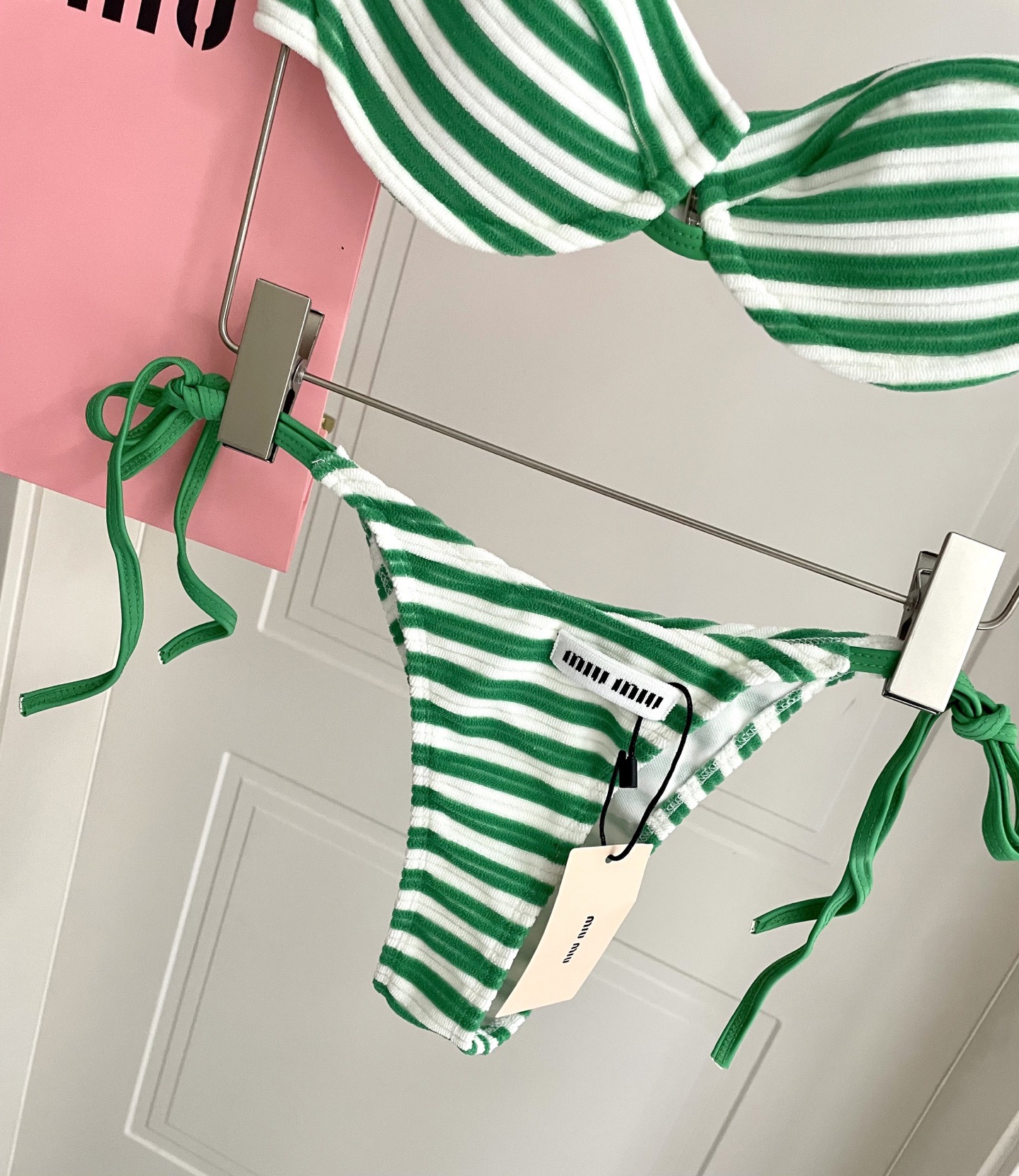 这款衣服是AAAAA 1:1 质量 (非常棒). 使用了和原版一模一样的材料. 商标部分也保持了和缪缪/Miu Miu一样. 图片拍摄是实物衣服拍摄, 您所收到的实物保证和我们图片一模一样.